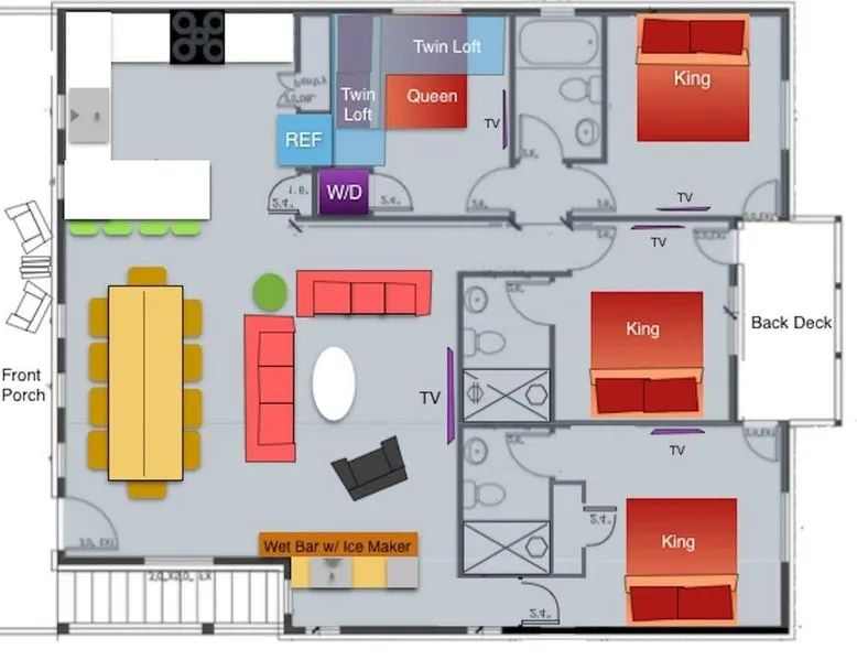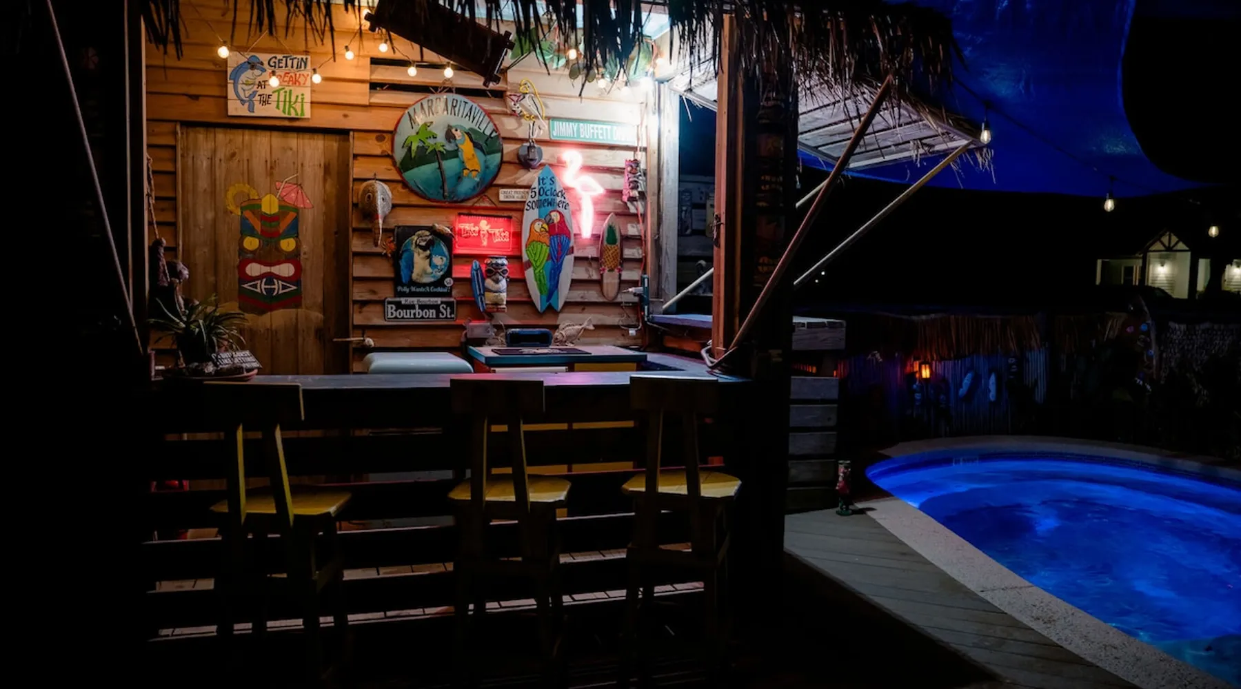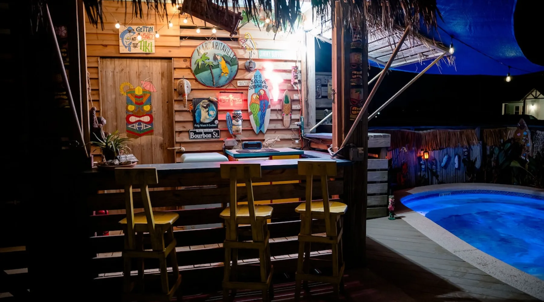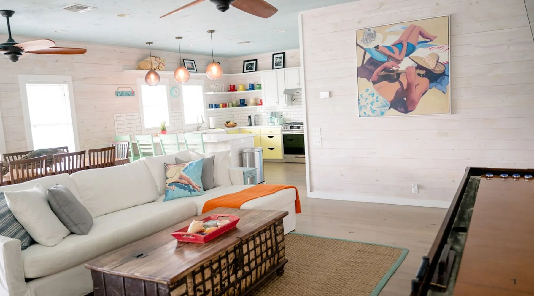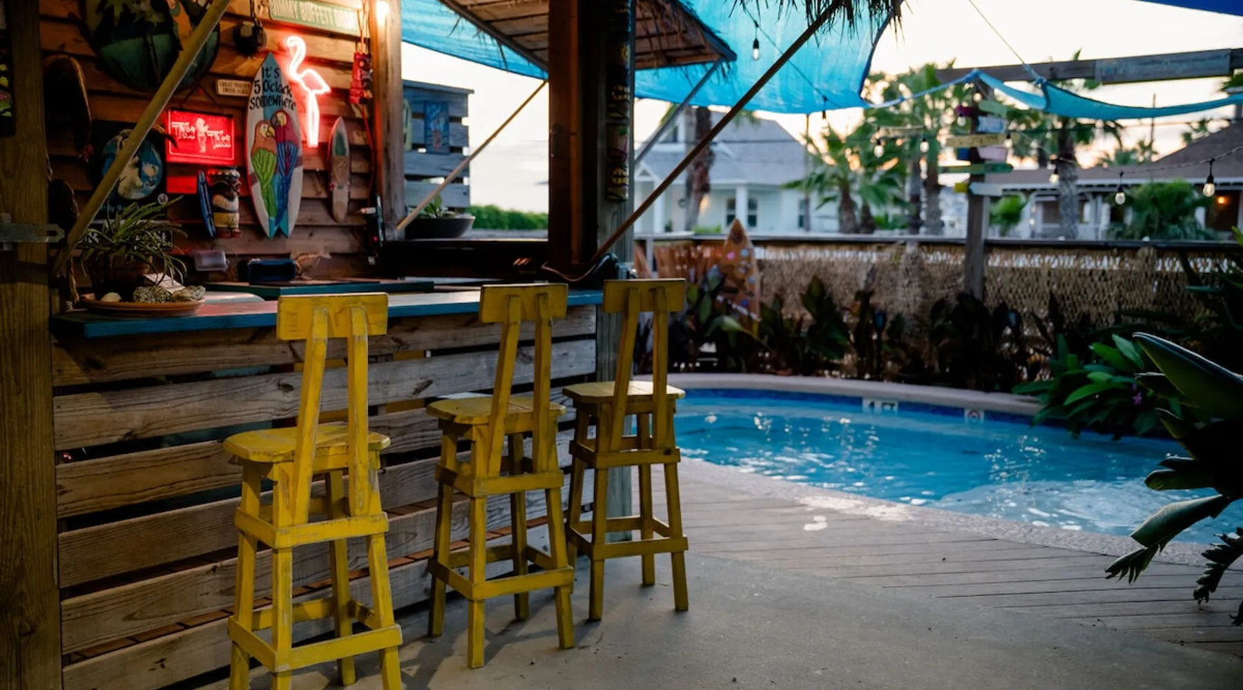 OV1: Havana Daydreamin' 4BD, 3.5BA, Private Heated Pool, Golf Cart Included, Shared Pool, Shuffleboard Table, Parking for 3 Welcome to Havana Daydreamin', your perfect coastal getaway just minutes from the beach and the vibrant downtown of Port Aransas! This charming stilted home, nestled in the desirable Ocean Village community, offers an idyllic blend of relaxation and entertainment. The space Step inside to discover an open-concept layout that seamlessly combines style and functionality. The spacious, well-equipped kitchen is a chef's dream, featuring a breakfast bar, farmhouse sink, and high-end appliances, including a 5-burner gas stove and Big Chill refrigerator. With essential cooking tools at your fingertips, including a microwave, toaster oven, blender, Instapot, and waffle maker, you’ll have everything you need to prepare delicious meals for family and friends. Gather around the custom-built formal dining table that comfortably seats 10 for unforgettable dinners. After a delightful meal, unleash your inner mixologist at the wet bar, complete with a margarita machine and barware for your favorite frozen cocktails! The home's inviting ambiance is enhanced by white-washed wood floors and walls, along with abundant windows that fill the spacious living room with natural light—perfect for cozy gatherings or quiet evenings. When it’s time to unwind, choose from multiple outdoor spaces. Sip your morning coffee while soaking in the sunrise on the expansive 35-foot front deck or head to your private heated pool for a refreshing dip. Enjoy the Tiki bar complete with an ice maker, there's also a fire-pit, a smoker/grill and an outdoor table to enjoy dining outside. With a shuffleboard for fun-filled afternoons and a 6-passenger golf cart included for easy beach access, you'll never run out of ways to enjoy your time here. With 4 beautifully appointed bedrooms and 3.5 bathrooms, there’s ample space for everyone to relax and recharge. Havana Daydreamin' is not just a home; it's the ultimate vacation retreat. Don’t miss your chance to own this slice of paradise! Things to know: WIFI Golf Cart Included (6-Seater Golf Cart Included - Subject to a $10 Fuel Charge – Short Term Stay Only) Private Heated Pool ($50 charge per day for pool heat, and must remain on for the duration of stay) Pools are serviced weekly, upwards of twice per week during the summertime. Services may be performed while occupied. Shared Pool Charcoal grill (Please provide your own charcoal) Fully equipped Kitchen (Drip coffee maker, Keurig and Nespresso. Coffee, Pods etc. are not provided.) Margarita Machine Ninja Instant Pot High Chair Washer/Dryer (No laundry soap provided) Property comes with a starter pack of toiletries, any supplies beyond this are up to the guest to replenish. No Pets Allowed Parking for 3 vehicles Must be 25 years old to book one of our units. Strictly enforced, ID verified upon check-in. We provide WIFI to enhance your stay and keep you connected. While Port A is typically reliable, you may experience occasional outages beyond our control. Thank you for your understanding. Construction is a constant in Port Aransas. While we strive to ensure your visit is peaceful, you may encounter sights and sounds of building, projects or community improvements during your stay. We appreciate your understanding as we work towards making our community better for everyone. Bedrooms and bathrooms: BR1 King, TV, Ensuite Bath w/ walk-in shower, single vanity BR2 King, TV, Ensuite Bath w/ walk-in shower, single vanity BD3 BR2 King, TV BD4 Queen, 2 Twins in Bunk Form Hall Bath w/ tub/shower combo, single vanity Living Room Queen Sleeper Sofa Half Bath