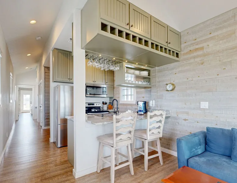 TPS804: The Boat House 1BD, 1.5BA, Boat Slip, Pet Friendly, Golf Cart Access Welcome to The Boat House, a charming townhome that perfectly captures the essence of coastal living. This delightful property, featuring 1 bedroom and 1.5 bathrooms, is designed for couples or small families seeking a serene getaway by the sea. Accommodating up to five guests, The Boat House is your ideal retreat for relaxation and adventure. The space As you step inside, you'll be greeted by a warm and inviting atmosphere. The well-equipped kitchen boasts modern stainless steel appliances, perfect for whipping up delicious meals. Enjoy casual dining at the kitchen counter, where barstools provide a cozy spot for your morning coffee or evening snacks. The living room features a comfortable sofa and a TV, creating a perfect space for unwinding after a day of exploration. A door leads you to a spacious deck that overlooks the ship channel of the Gulf of Mexico, providing stunning views and a serene setting for outdoor relaxation. The deck is furnished with ample seating and lounging furniture, making it an ideal spot for enjoying the coastal breeze. Step outside to the patio, where you'll find a charcoal grill ready for summer barbecues and alfresco dining. The Boat House is pet-friendly, ensuring your furry companions can join in on the fun. Additionally, a small boat slip is available for those looking to explore the waters. Nestled in the vibrant Old Town area, The Boat House is conveniently located within walking distance of an array of restaurants, shopping, and nightlife. Whether you're eager to embark on a deep-sea fishing adventure, hit the golf course, or simply bask in the sun, this property serves as the perfect base for your coastal escapades. Don’t miss the chance to experience the charm of The Boat House—your coastal haven awaits! Things to know: WIFI Charcoal grill (Please provide your own charcoal) Deck off the Living Room, and Master Bedroom Fully equipped Kitchen (Drip coffee maker, please bring coffee and filters) Pet Friendly ($95 Pet Fee) (Limit 1 Pet) Parking for 2 vehicles Must be 25 years old to book one of our units. Strictly enforced, ID verified upon check-in. Life in Paradise rental agreement required upon booking We provide WIFI to enhance your stay and keep you connected. While Port A is typically reliable, you may experience occasional outages beyond our control. Thank you for your understanding. Construction is a constant in Port Aransas. While we strive to ensure your visit is peaceful, you may encounter sights and sounds of building projects or community improvements during your stay. We appreciate your understanding as we work towards making our community better for everyone. Bedrooms and bathrooms: BR1 Queen, TV, Closet, Private Patio Hall Bath - Tub/Shower combo, single vanity Bunk in Hallway, Twin over Full Half Bath, on First Level