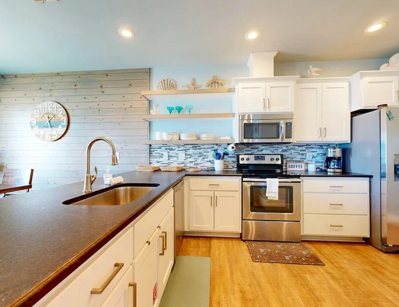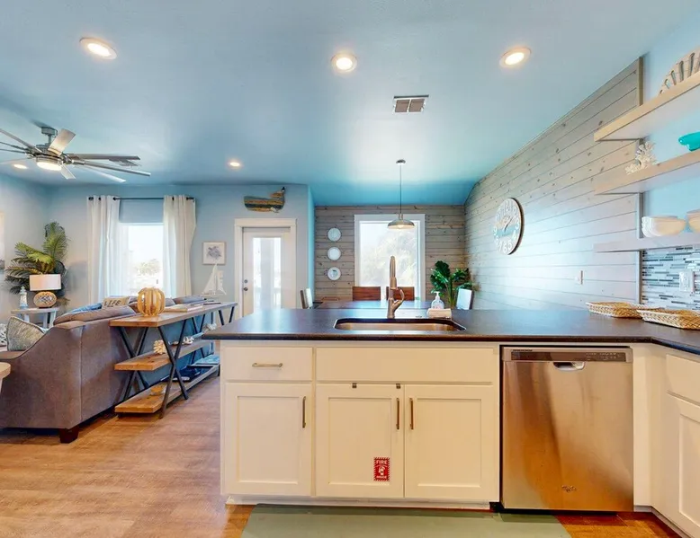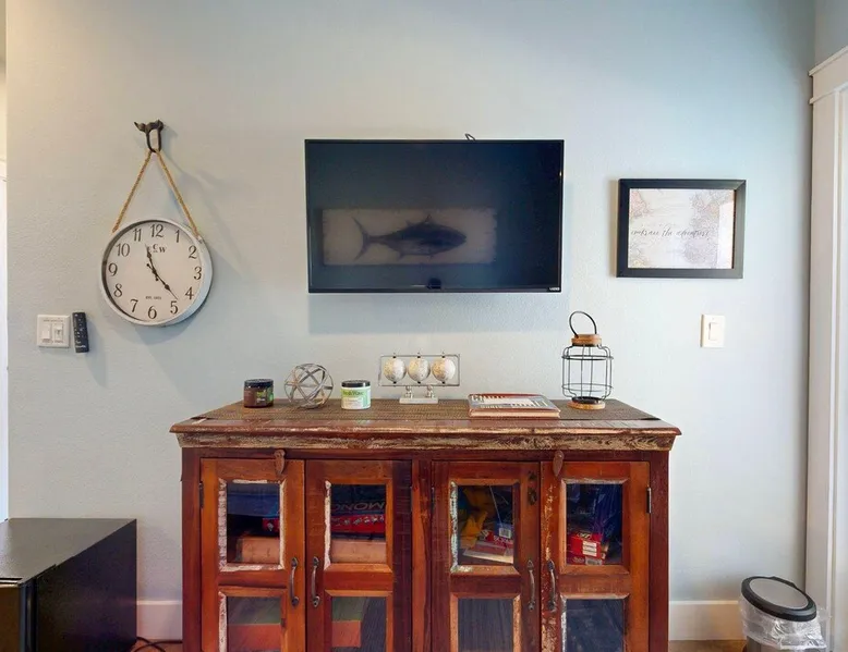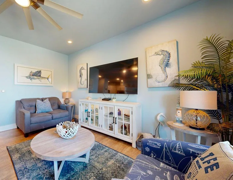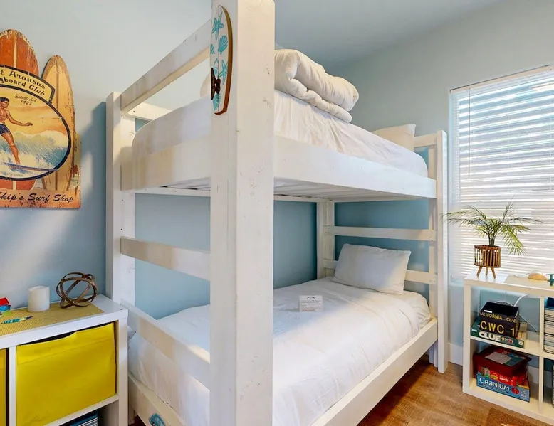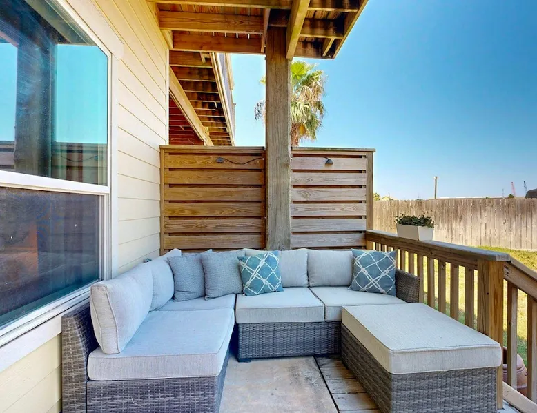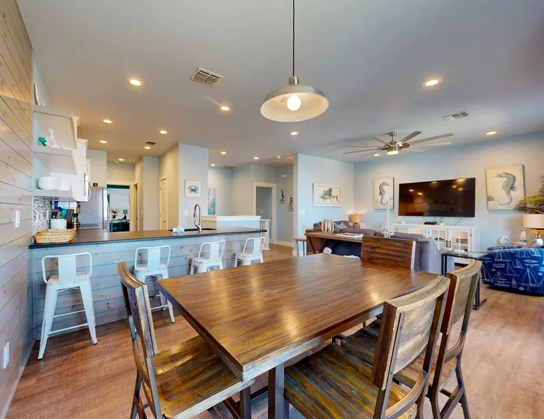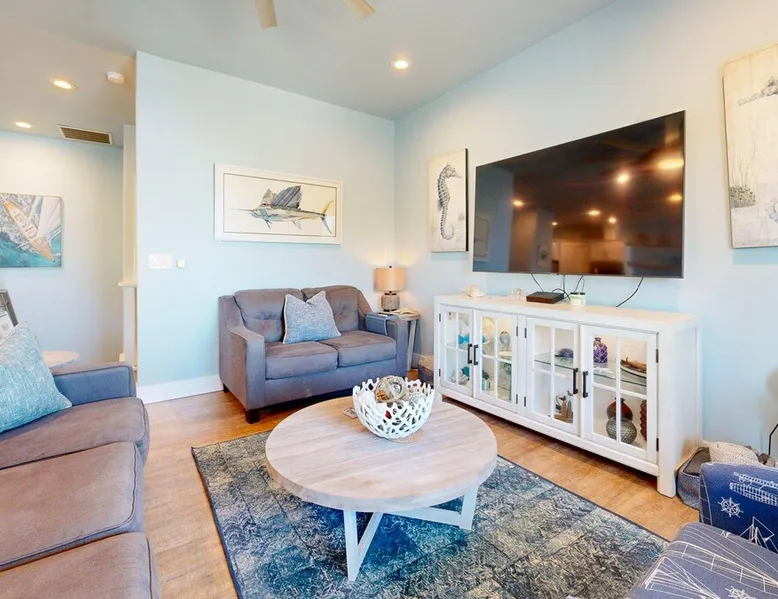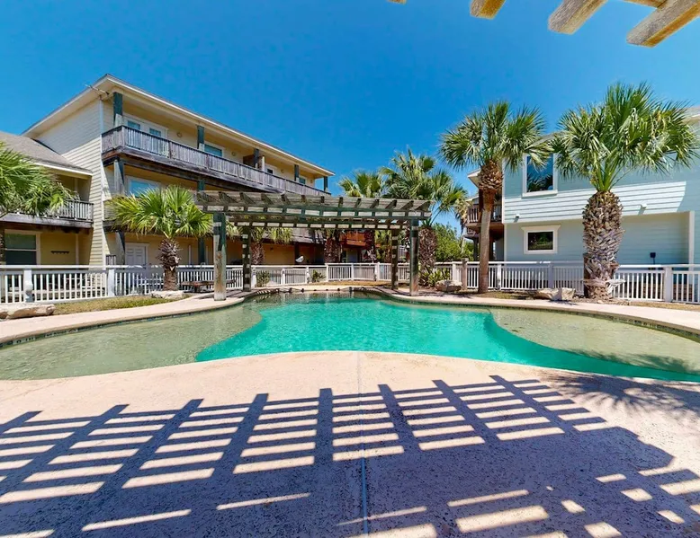 RA-1: Sunspot 3BD, 3BA, Shared Pool, Pet Friendly, Golf Cart Access, Parking for 2 Welcome to Sunspot, a charming townhome nestled in the heart of Old Town Port Aransas, where coastal charm meets modern comfort. This delightful property features 3 spacious bedrooms and 3 bathrooms, making it the perfect getaway for families or groups seeking a relaxing beach retreat. The space RA-1: Sunspot 3BD, 3BA, Shared Pool, Pet Friendly, Golf Cart Access, Parking for 2 Welcome to Sunspot, a charming townhome nestled in the heart of Old Town Port Aransas, where coastal charm meets modern comfort. This delightful property features 3 spacious bedrooms and 3 bathrooms, making it the perfect getaway for families or groups seeking a relaxing beach retreat. As you step inside, you'll be greeted by an inviting open floor plan that seamlessly connects the living, dining, and kitchen areas. The well-equipped kitchen boasts stainless steel appliances, ample counter space, and a separate coffee bar, ideal for brewing your morning pick-me-up. The dining area comfortably seats six, with additional seating for four at the bar, making it perfect for entertaining. The cozy living area offers plenty of seating and a large-screen TV, creating a welcoming space for movie nights or relaxing after a day at the beach. Each bedroom is thoughtfully designed to provide comfort and privacy, with the bathrooms featuring stylish finishes. Step outside to enjoy the neighborhood view from your private decked area, perfect for morning coffee or evening relaxation under the stars. Take advantage of the shared pool, providing a refreshing escape on warm Texas days, along with outdoor seating and a grill for those who love to cook and dine al fresco. Located just a short distance from the beach, Sunspot offers easy access to a variety of activities such as deep-sea fishing, golfing, and bird-watching. Explore the local attractions, including marinas, shopping areas, and vibrant nightlife, all within easy reach. Whether you're seeking a weekend getaway or a seasonal retreat, Sunspot is your perfect home base for experiencing the best of Port Aransas. Don’t miss the opportunity to make this charming townhome your own! Things to know: WIFI Shared Pool Charcoal grill (Please provide your own charcoal) Fully equipped Kitchen (Drip and Keurig coffee maker, please bring coffee, filters, and K-cups) Washer/Dryer (No laundry soap provided) Pet Friendly ($95 Pet fee per pet, limit 2) Parking for 2 vehicles Must be 25 years old to book one of our units. Strictly enforced, ID verified upon check-in. Life in Paradise rental agreement required upon booking We provide WIFI to enhance your stay and keep you connected. While Port A is typically reliable, you may experience occasional outages beyond our control. Thank you for your understanding. Construction is a constant in Port Aransas. While we strive to ensure your visit is peaceful, you may encounter sights and sounds of building projects or community improvements during your stay. We appreciate your understanding as we work towards making our community better for everyone. Bedrooms and bathrooms: BR1 King, TV, Closet, Ensuite Bath, w/ tub/shower combo, single vanity BR2 Queen, TV, Closet Hall Bath w/ walk-in shower combo, single vanity BD3 Bunk Room, 2 Twin over Twins, TV, Closet Hall Bath w/ tub/shower combo, single vanity