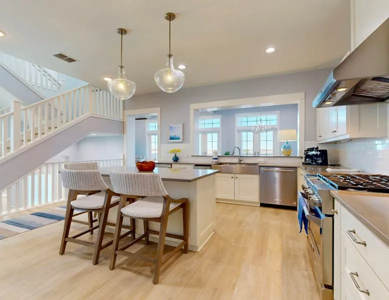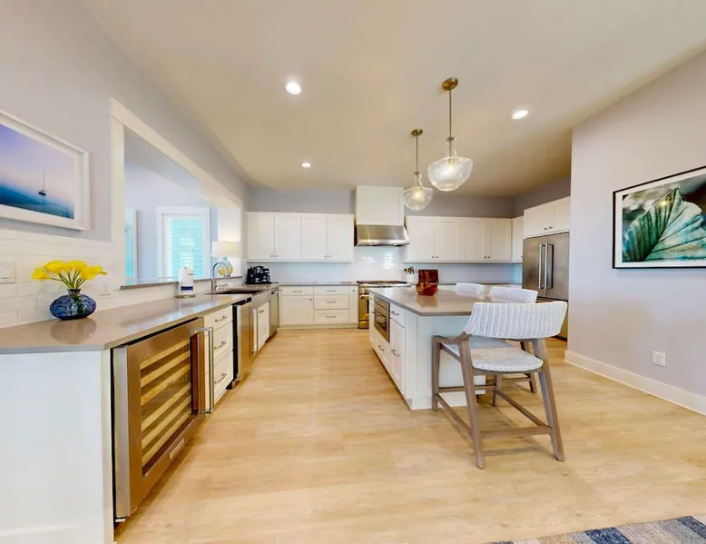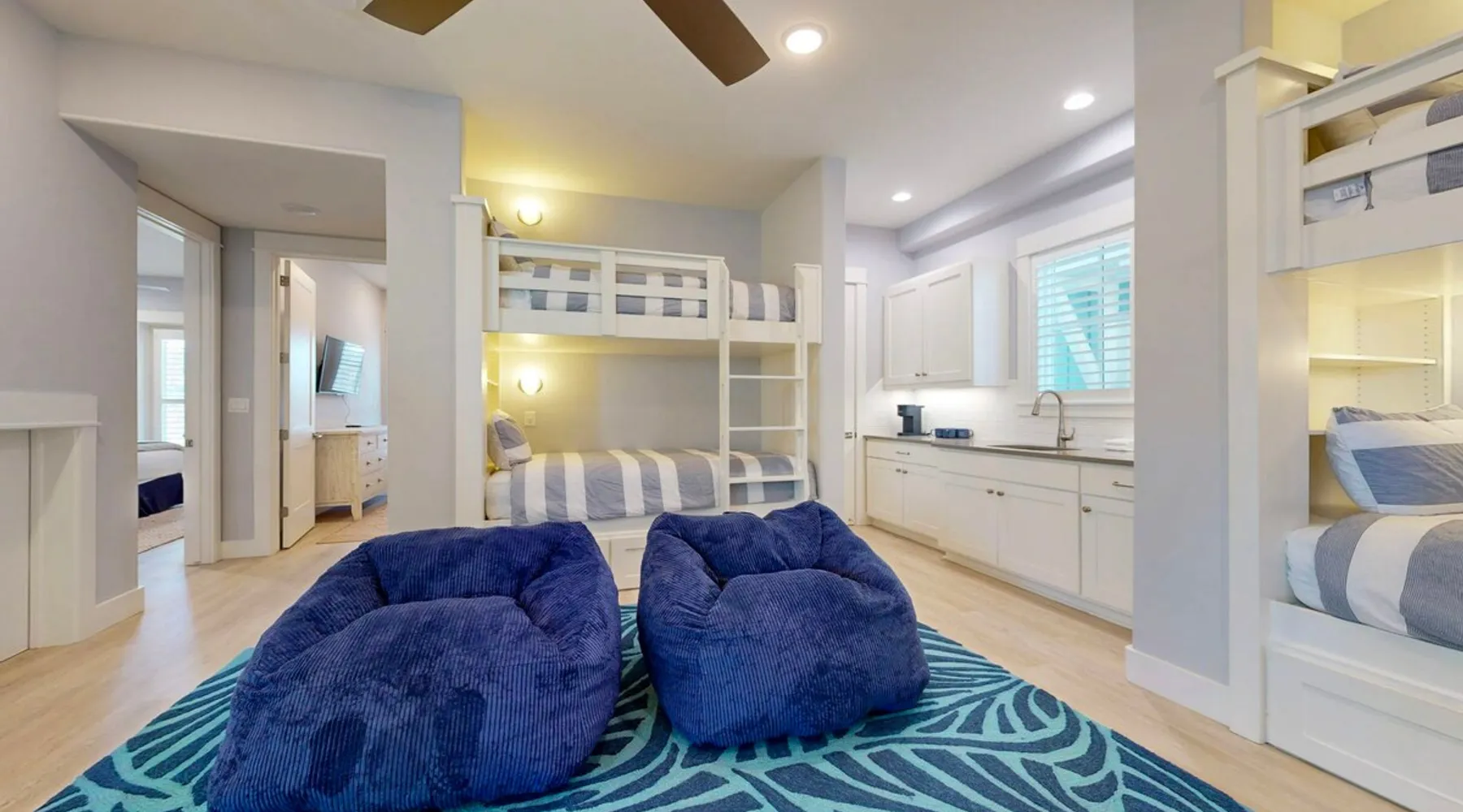 SBKC648: Sea View 5BD, 4.5BA, Shared Resort Style Pools, Boardwalk to the Beach, Two Primary King Suites, Ice Maker, Parking for 4 Welcome to Sea View, a breathtaking three-level home located in the desirable Sunflower Beach Resort. This stunning property offers the perfect blend of luxury and comfort, making it an ideal retreat for families and friends alike. The space SBKC648: Sea View 5BD, 4.5BA, Shared Resort Style Pools, Boardwalk to the Beach, Two Primary King Suites, Ice Maker, Parking for 4 Welcome to Sea View, a breathtaking three-level home located in the desirable Sunflower Beach Resort. This stunning property offers the perfect blend of luxury and comfort, making it an ideal retreat for families and friends alike. Upon entering the first level, you ll be greeted by a cozy living area complete with a TV, comfortable seating, and a small kitchen nook featuring a sink, beverage fridge, and a Keurig coffee maker perfect for enjoying your morning brew. This level also boasts two sets of twin bunk beds, ideal for accommodating extra guests, along with two additional bedrooms and two full baths for convenience and privacy. As you ascend to the second level, you ll find the heart of the home a bright, open-concept living area that invites natural light and warmth. The chef s dream kitchen showcases top-of-the-line KitchenAid stainless steel appliances, including a wine/beverage fridge and ice maker. An expansive kitchen island offers ample prep space and seating for three, making it perfect for late-night snacks or casual breakfasts. The elegant dining table comfortably seats eight, with additional bar seating for entertaining friends and family. The spacious living area is designed for relaxation, featuring plenty of seating and a large-screen TV for movie nights. Step outside onto the inviting balcony, where you ll find a table and chairs for al fresco dining, along with extra seating to soak in the coastal breeze. On this level, you ll also discover a generous king guest suite, complete with a full bath for added convenience, as well as a half bath for guests. The third level is dedicated entirely to the luxurious primary king suite, providing a private oasis for rest and rejuvenation. This serene retreat is thoughtfully designed to ensure your comfort and relaxation after a day of fun in the sun. With its exceptional layout and upscale features, Sea View is not just a home; it s a lifestyle waiting to be embraced. Don t miss the opportunity to make this stunning property your favorite Port A Beach getaway! Things to know: WIFI Boardwalk to the Beach Fully equipped Kitchen (Drip and Keurig coffee maker; please bring coffee, filters, and K-cups) Wine/Beverage Fridge (2) Ice Maker Washer/Dryer (No laundry soap provided) No Pets Allowed Parking for 4 vehicles Must be 25 years old to book one of our units. Strictly enforced, ID verified upon check-in. We provide WIFI to enhance your stay and keep you connected. While Port A is typically reliable, you may experience occasional outages beyond our control. Thank you for your understanding. Construction is a constant in Port Aransas. While we strive to ensure your visit is peaceful, you may encounter sights and sounds of building projects or community improvements during your stay. We appreciate your understanding as we work toward making our community better for everyone. Bedrooms and bathrooms: Level One BR1 Bunk Room, 2 Twin over Twin, TV, Living Area w/ sm. kitchen area, beverage fridge, sink, Keurig coffee maker BR2 Queen, TV, Chest, Closet, Door to Patio, ensuite bath shared w/BD1, w/ walk-in shower, single vanity BD3 Queen, TV, Chest, Closet, Door to Patio, ensuite bath w/ tub/shower combo, single vanity Level Two BD4 Guest Suite King, TV, Chest, Closet, private patio, desk, chair, ensuite bath w/walk-in shower, single vanity Half bath Main Living Area Level Three BD5 Primary Suite King, TV, Closet, Private Patio, ensuite bath w/ soaking tub, walk-in shower, dual vanity Sitting area w/ double desk area for work or make-up area Sunflower Beach Resort Amenity Access and Important Information: 2 Huge resort-style pools (1 family friendly 1 adult only, smaller one is heated during cold months) Hours: Sunrise to 10pm Boardwalk to the beach w/ golf cart access (Mile Marker 28) Kids area w/ books, games TV located at the pool pavilion Golf Cart Rentals - Golf Carts | Sunflower Beach Resort Chair and Umbrella rentals - Beach Chairs Umbrellas | Sunflower Beach Resort Turtle s Poolside Grill Resort Events - Events Sunflower Beach Trailers/boats are not allowed on property. Violation of this could result in it being towed. Please click the following link to see public parking options in Port Aransas Minimum age to rent is 25 Sunflower Beach Resort is a growing community w/ active construction Mon Friday 7am to 7pm Fitness Center Guest Services @ Sunflower Beach Office Monday - Saturday 9:00am to 5:00pm Sundays 9:00am to 4:00pm