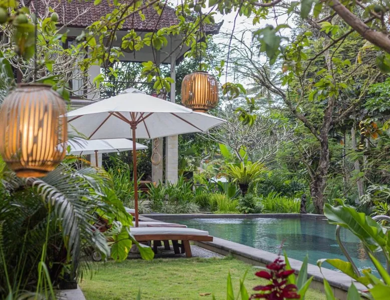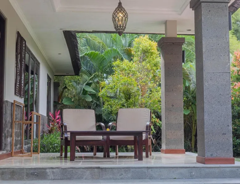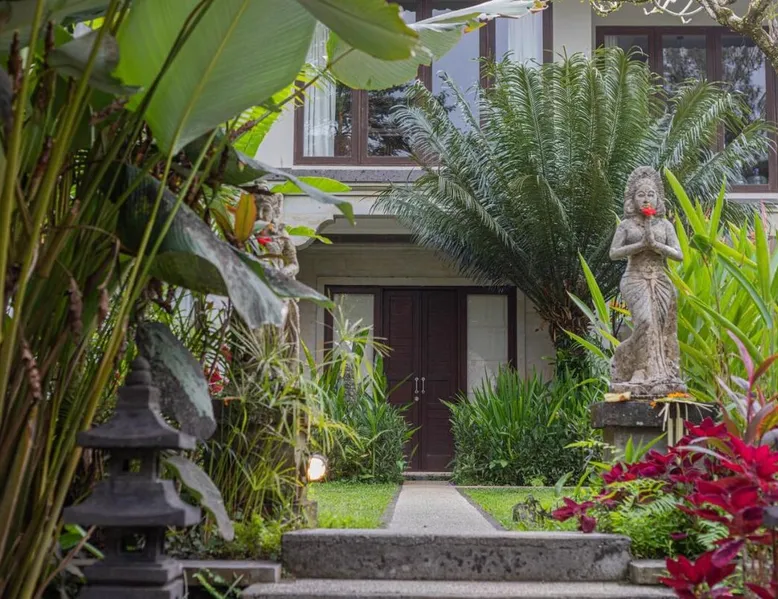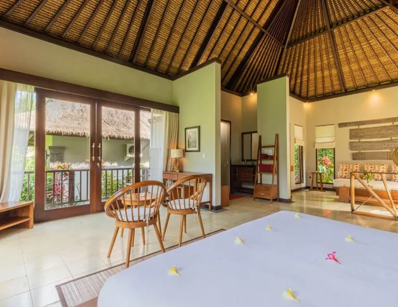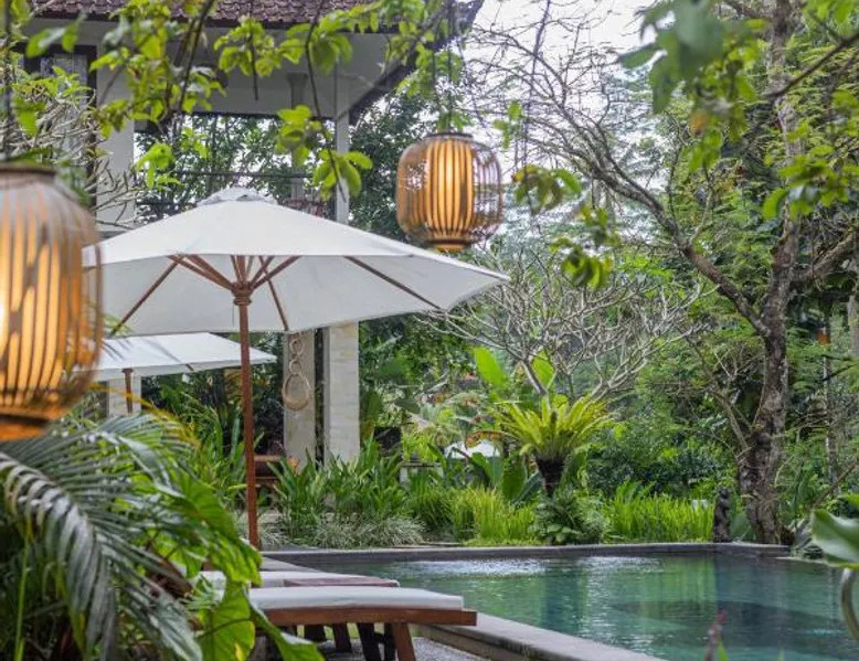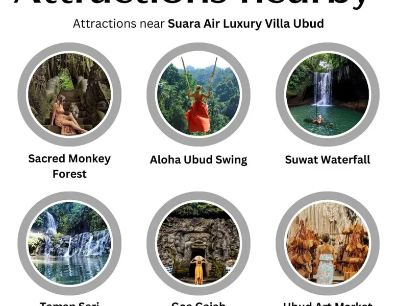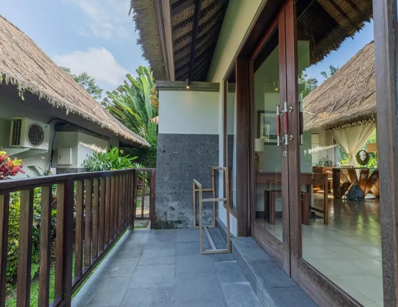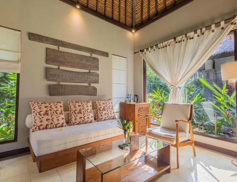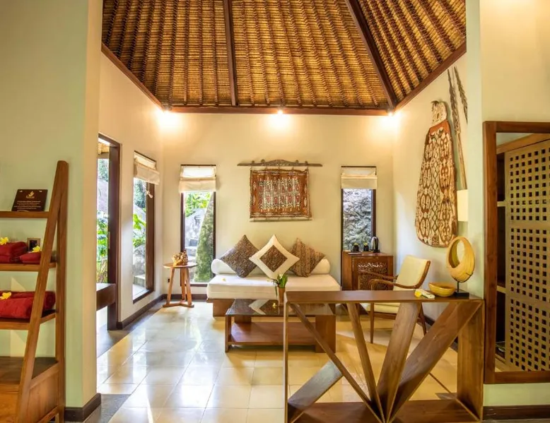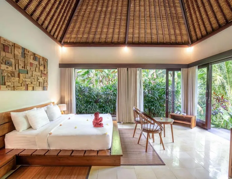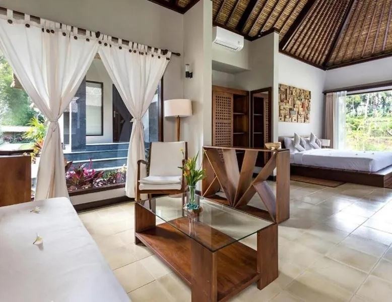 Suara Air Luxury Villa Ubud offers a serene jungle retreat with breathtaking garden views. This private villa features a spacious bedroom with a double bed, a private terrace, and modern amenities for a comfortable stay. Guests can enjoy a sun terrace, outdoor pool, and lush gardens, along with on-site dining, a bar, and spa services. Conveniently located 5.5 km from Ubud Palace, the villa also provides airport shuttle services and guided tours for an immersive Bali experience. The space - 1-bedroom villa with a double bed and jungle view - Private terrace with seating area - Modern amenities: air conditioning, free WiFi, minibar, and satellite TV - Private bathroom with a shower, bidet, hairdryer, and free toiletries - Hardwood and tile flooring for a stylish touch - Wake-up service available upon request Guest access - Free access to the outdoor swimming pool, garden, and sun terrace - On-site restaurant, bar, and room service - Complimentary private parking (no reservation needed) - Full access to spa services, excursions, and cultural activities (additional charges may apply) During your stay - 24-hour front desk and concierge service to assist with any requests - Tour desk available for booking excursions and activities - Multilingual staff speaking English, Spanish, Indonesian, and Malay Other things to note - Airport shuttle available at an additional cost - Daily housekeeping and laundry services provided - Cooking classes, bike tours, and snorkeling trips can be arranged - Located in a peaceful area, but only a short drive from Ubud’s main attractions