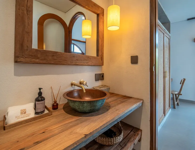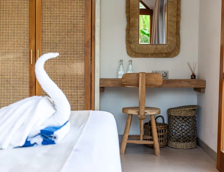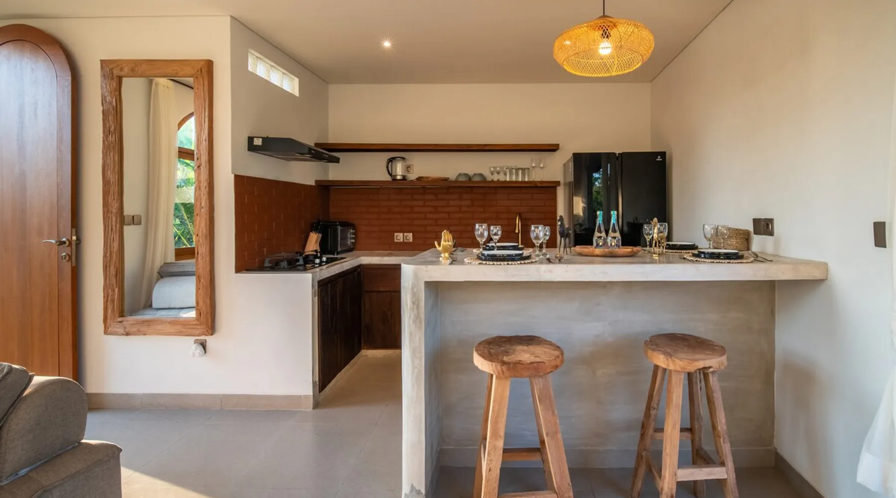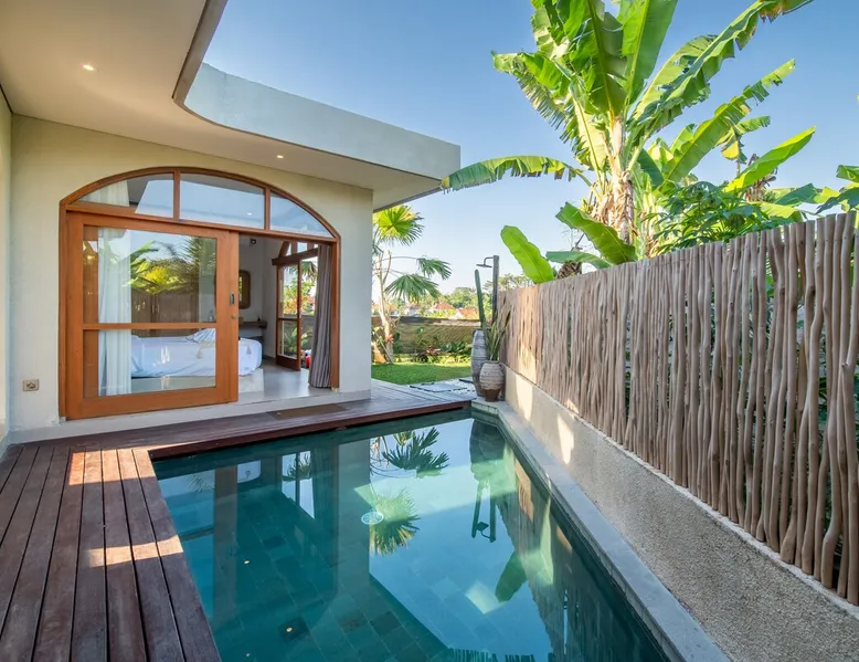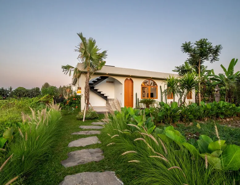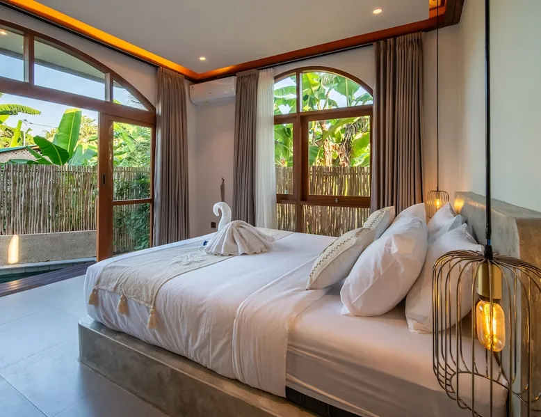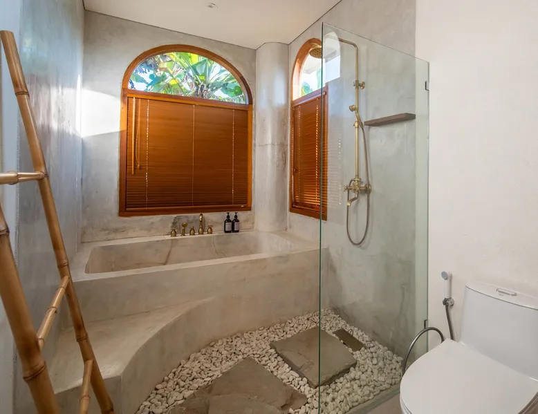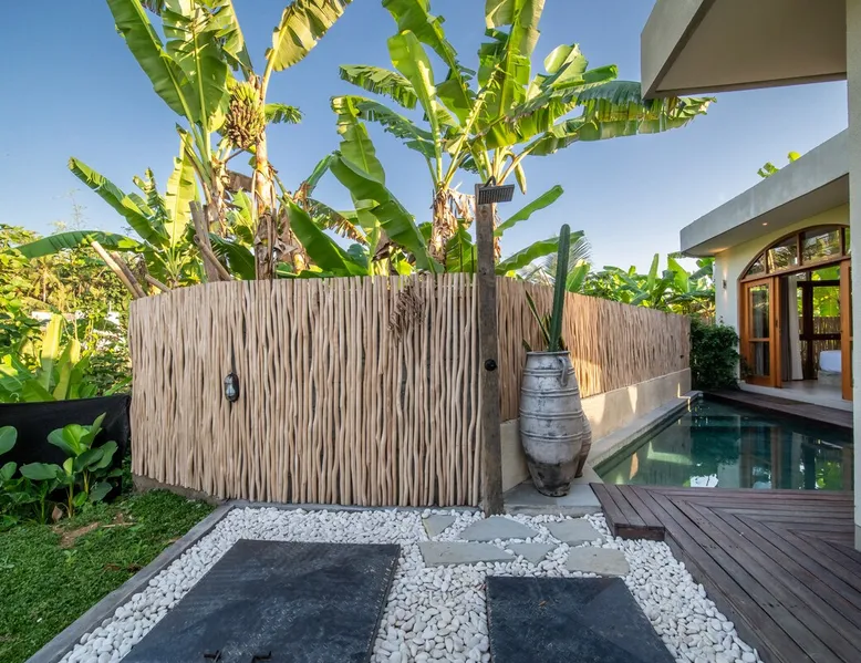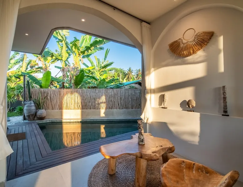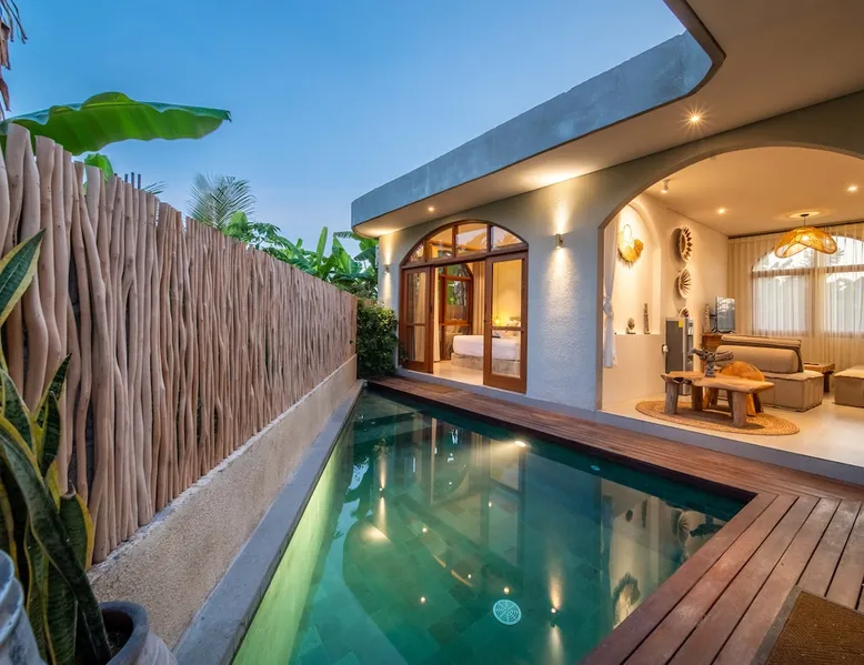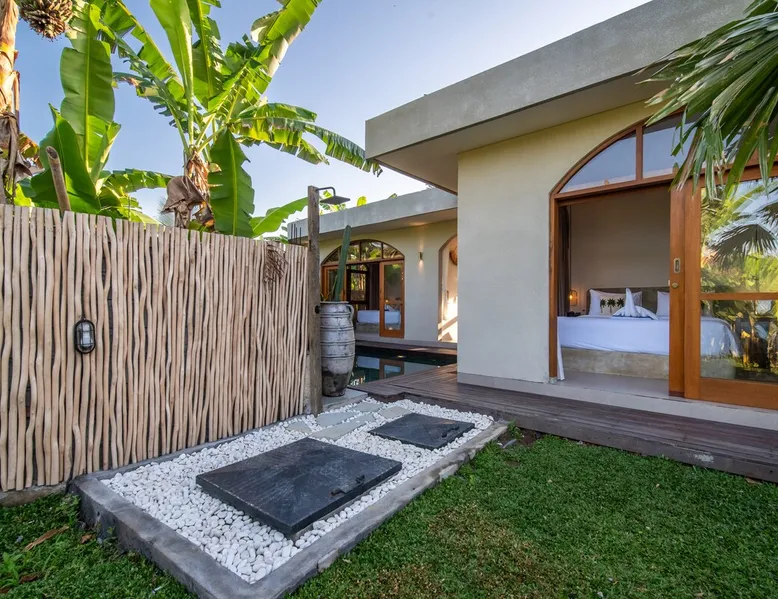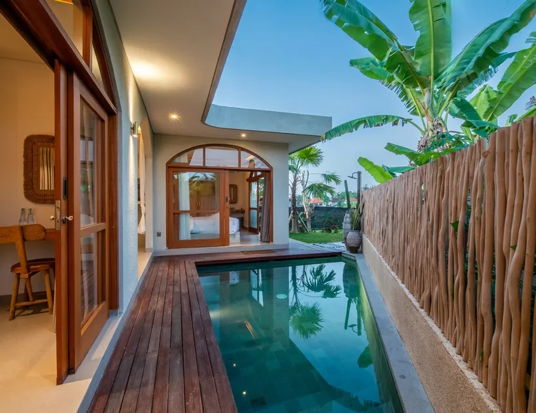 Relax in this quiet and stylish space. This unique place, recently completed in November 2024, is nestled near a local ceramics workshop, offering an authentic and rare experience. This enchanting place offers elegant and bright Mediterranean architecture, perfectly integrated with Balinese nature. Imagine yourself admiring spectacular sunsets on emerald rice fields, surrounded by peaceful nature. The space - Bedrooms: Two spacious bedrooms, each equipped with a king size bed and en-suite bathroom including one with a luxurious bathtub. - Living room & Common spaces: Relax in the beautiful living room, a room bathed in light, perfect for moments of conviviality or relaxation on your own. The decor combines Mediterranean style and Balinese touches for an unforgettable atmosphere. - Private Pool: The villa has a private swimming pool that invites you to relax. - Daily Cleaning Service: Don't worry about anything, our staff takes care of everything so you can fully enjoy your stay. Guest access You benefit from exclusive use of the entire villa. From the private pool to stylish living spaces, every nook and cranny of this hidden gem is entirely yours. Each room has its own keys to ensure your privacy and security. Free parking and easy access to the main road make getting around simple, whether by taxi or renting a motorbike. Other things to note We make your stay easier with personalized services *: - Airport transfer roundtrip. - Private chef. - Authentic Balinese cooking class. - Motorcycle rental. - English speaking tourist guide. - Pool decor. - Flower bouquets. *These services are not included in the booking price