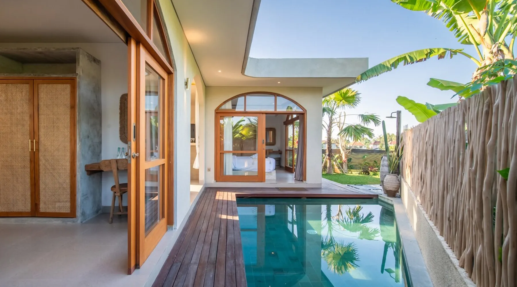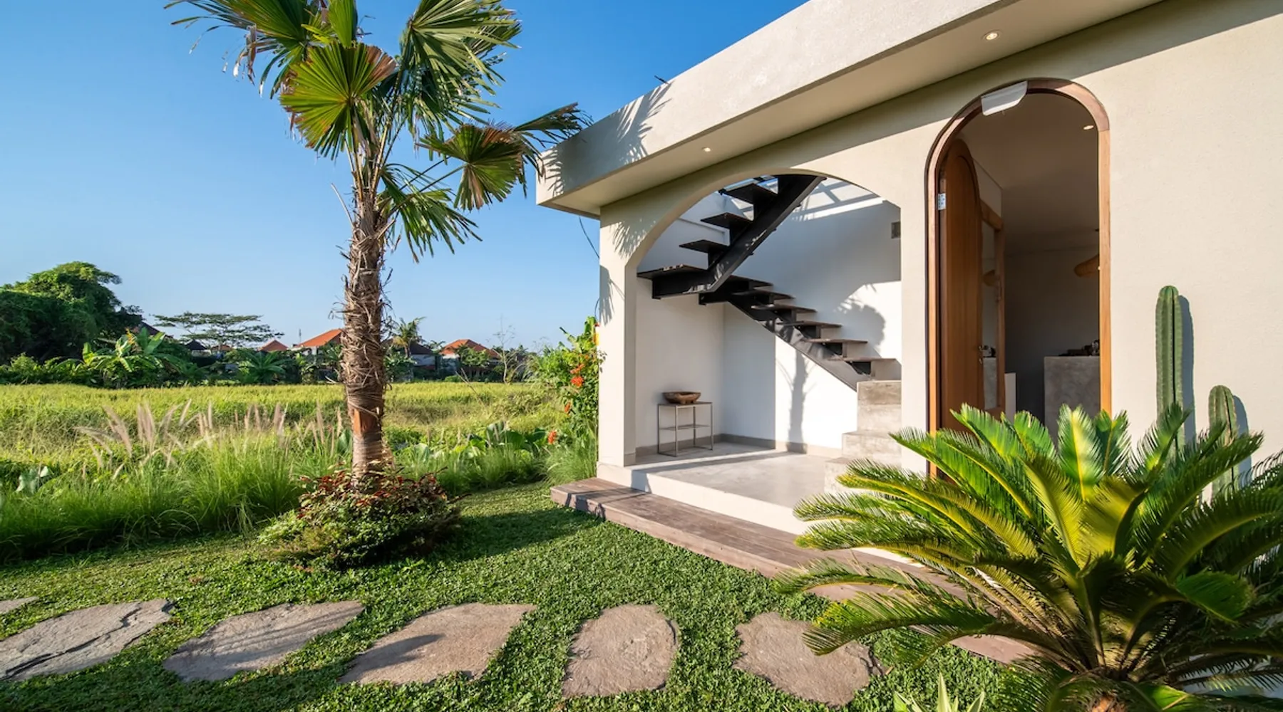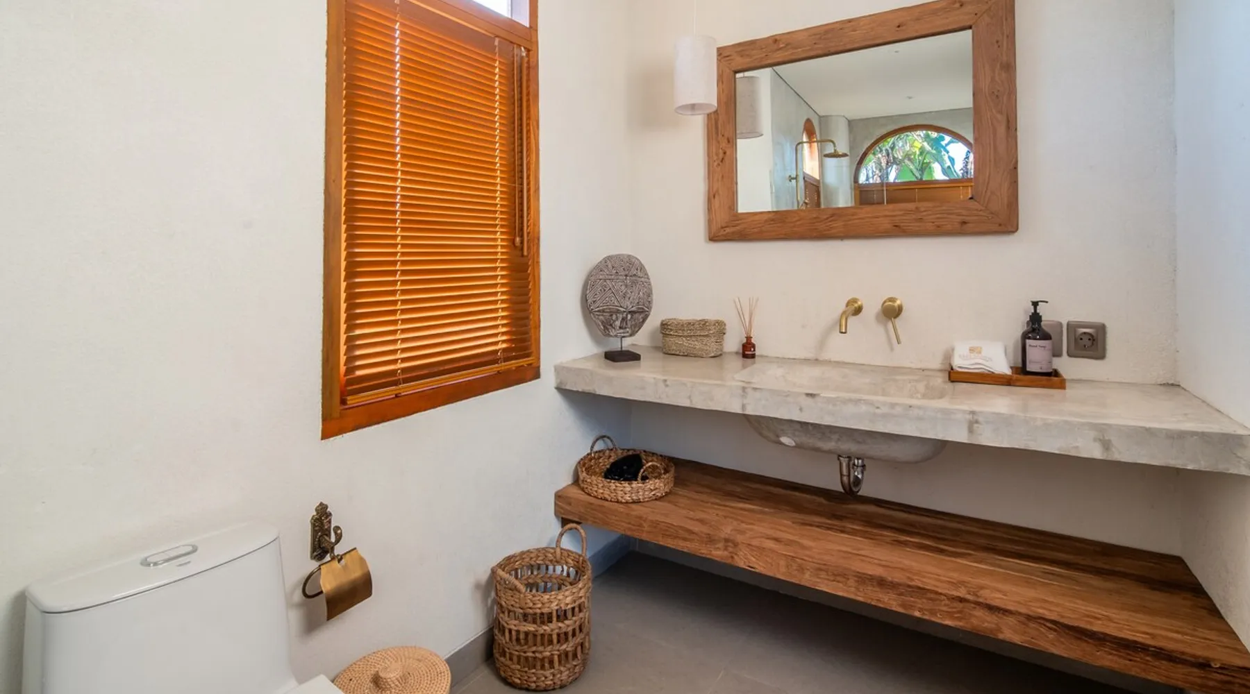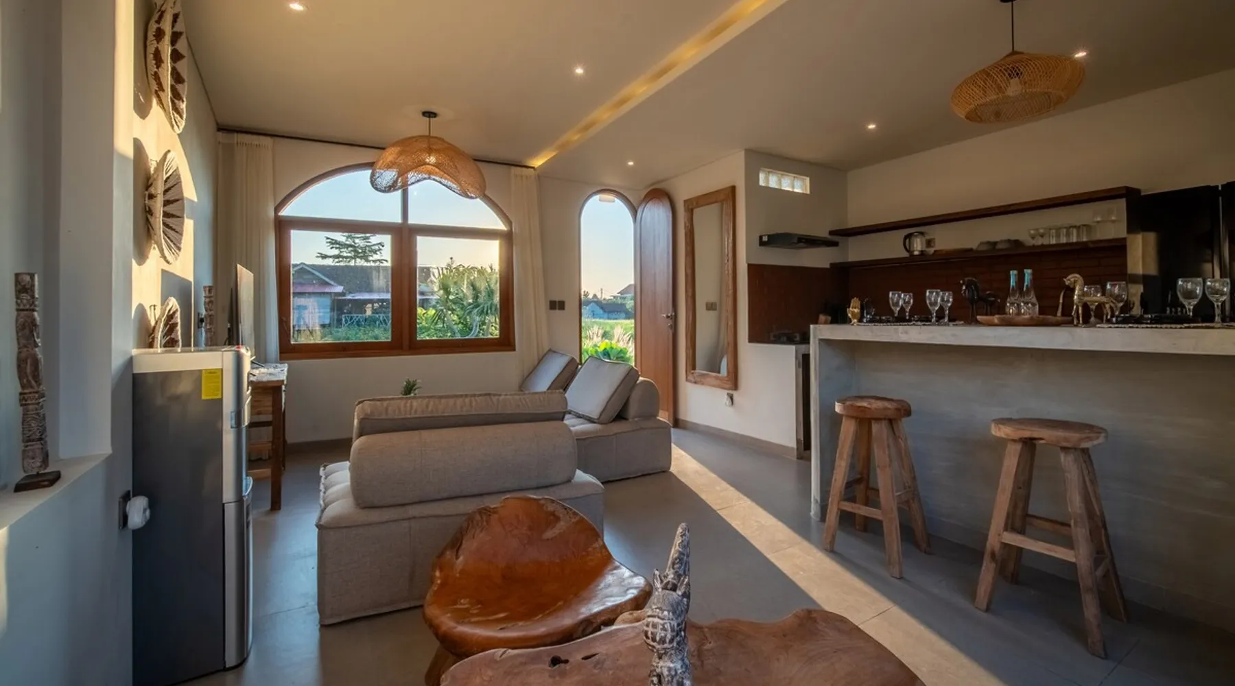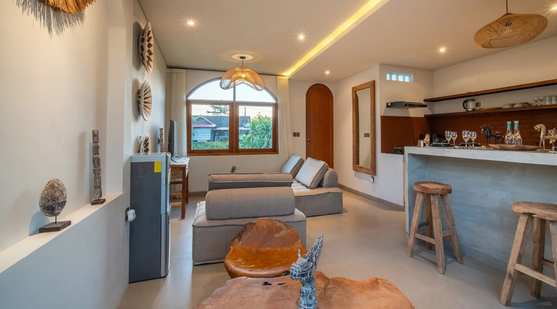 Relax in this quiet and stylish space. This unique place, recently completed in November 2024, is nestled near a local ceramics workshop, offering an authentic and rare experience. This enchanting place offers elegant and bright Mediterranean architecture, perfectly integrated with Balinese nature. Imagine yourself admiring spectacular sunsets on emerald rice fields, surrounded by peaceful nature. The space - Bedrooms: Two spacious bedrooms, each equipped with a king size bed and en-suite bathroom including one with a luxurious bathtub. - Living room & Common spaces: Relax in the beautiful living room, a room bathed in light, perfect for moments of conviviality or relaxation on your own. The decor combines Mediterranean style and Balinese touches for an unforgettable atmosphere. - Private Pool: The villa has a private swimming pool that invites you to relax. - Daily Cleaning Service: Don't worry about anything, our staff takes care of everything so you can fully enjoy your stay. Guest access You benefit from exclusive use of the entire villa. From the private pool to stylish living spaces, every nook and cranny of this hidden gem is entirely yours. Each room has its own keys to ensure your privacy and security. Free parking and easy access to the main road make getting around simple, whether by taxi or renting a motorbike. Other things to note We make your stay easier with personalized services *: - Airport transfer roundtrip. - Private chef. - Authentic Balinese cooking class. - Motorcycle rental. - English speaking tourist guide. - Pool decor. - Flower bouquets. *These services are not included in the booking price