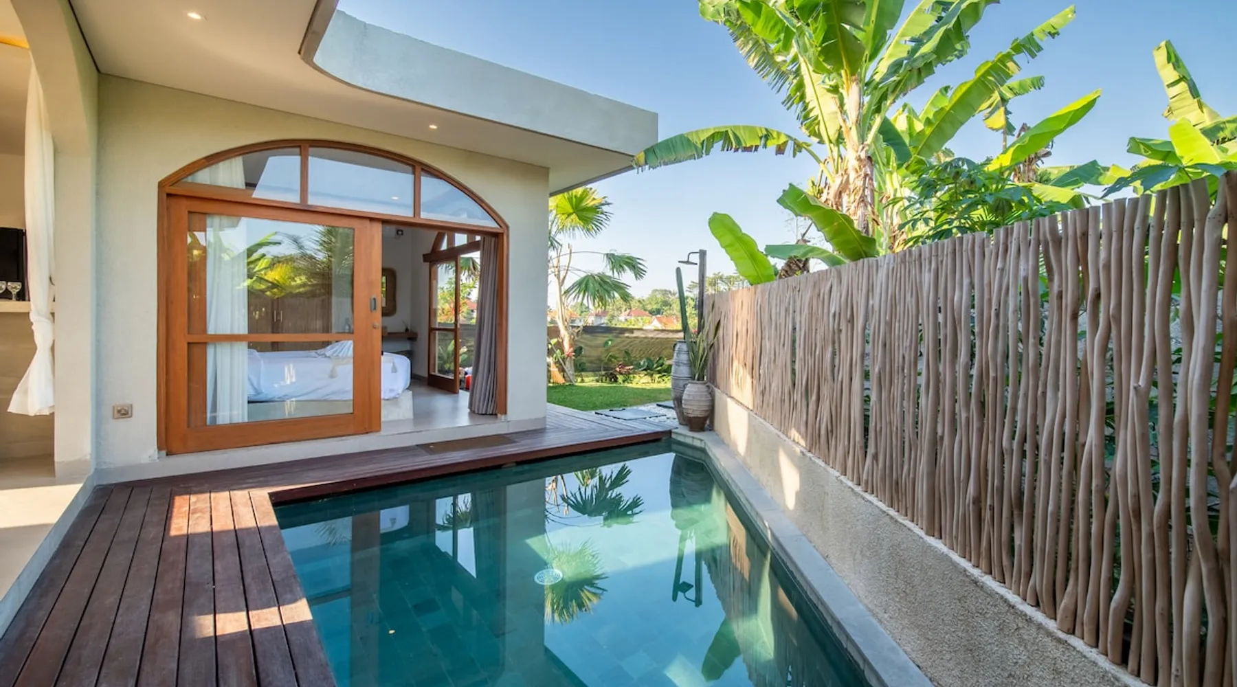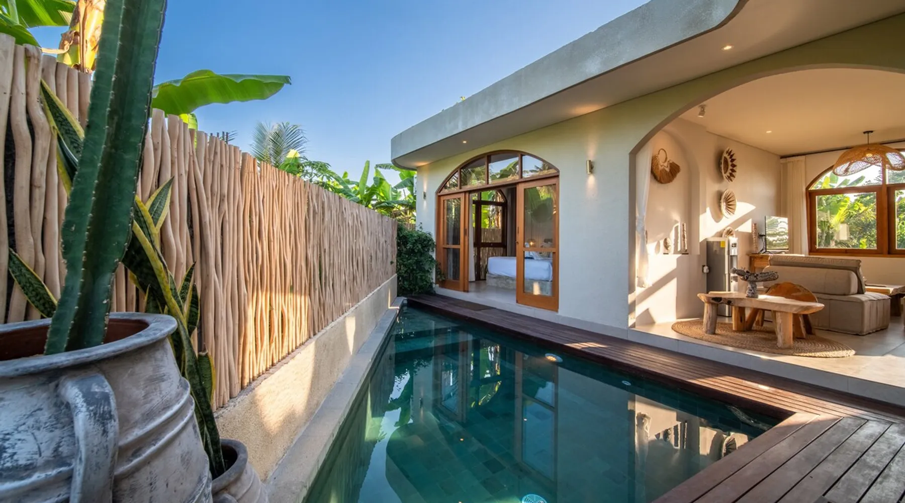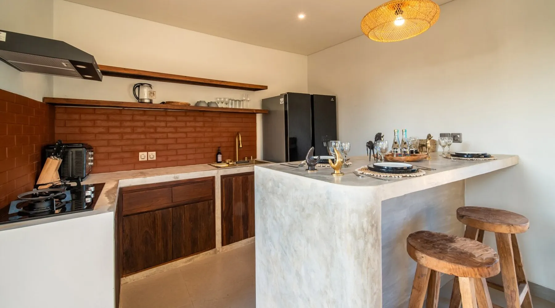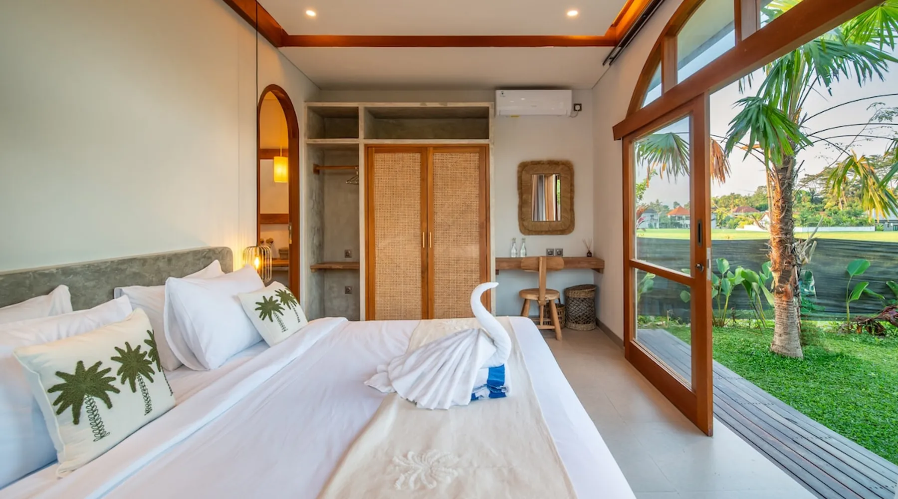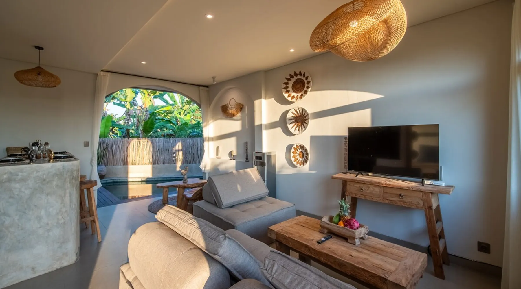 Relax in this quiet and stylish space. This unique place, recently completed in November 2024, is nestled near a local ceramics workshop, offering an authentic and rare experience. This enchanting place offers elegant and bright Mediterranean architecture, perfectly integrated with Balinese nature. Imagine yourself admiring spectacular sunsets on emerald rice fields, surrounded by peaceful nature. The space - Bedrooms: Two spacious bedrooms, each equipped with a king size bed and en-suite bathroom including one with a luxurious bathtub. - Living room & Common spaces: Relax in the beautiful living room, a room bathed in light, perfect for moments of conviviality or relaxation on your own. The decor combines Mediterranean style and Balinese touches for an unforgettable atmosphere. - Private Pool: The villa has a private swimming pool that invites you to relax. - Daily Cleaning Service: Don't worry about anything, our staff takes care of everything so you can fully enjoy your stay. Guest access You benefit from exclusive use of the entire villa. From the private pool to stylish living spaces, every nook and cranny of this hidden gem is entirely yours. Each room has its own keys to ensure your privacy and security. Free parking and easy access to the main road make getting around simple, whether by taxi or renting a motorbike. Other things to note We make your stay easier with personalized services *: - Airport transfer roundtrip. - Private chef. - Authentic Balinese cooking class. - Motorcycle rental. - English speaking tourist guide. - Pool decor. - Flower bouquets. *These services are not included in the booking price