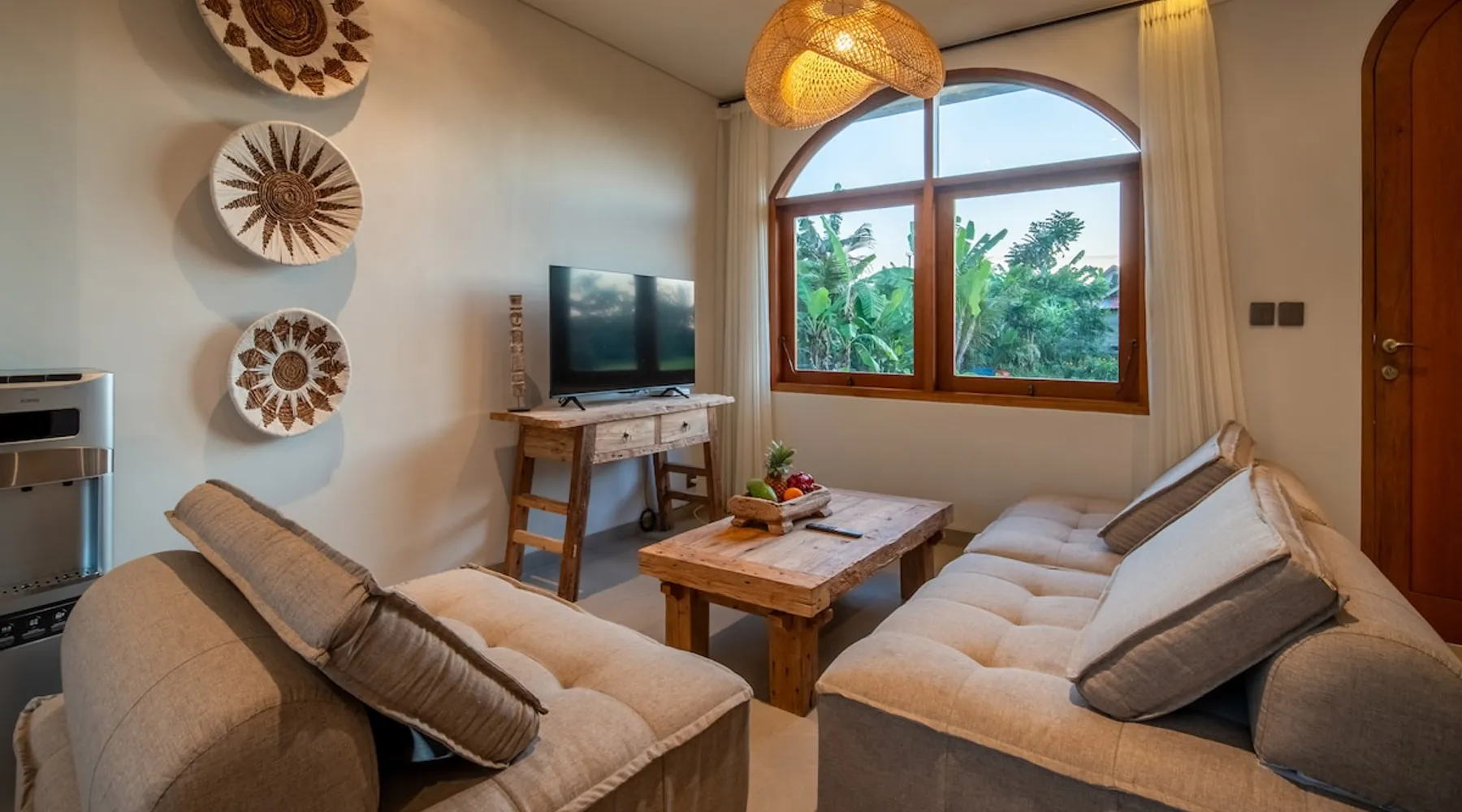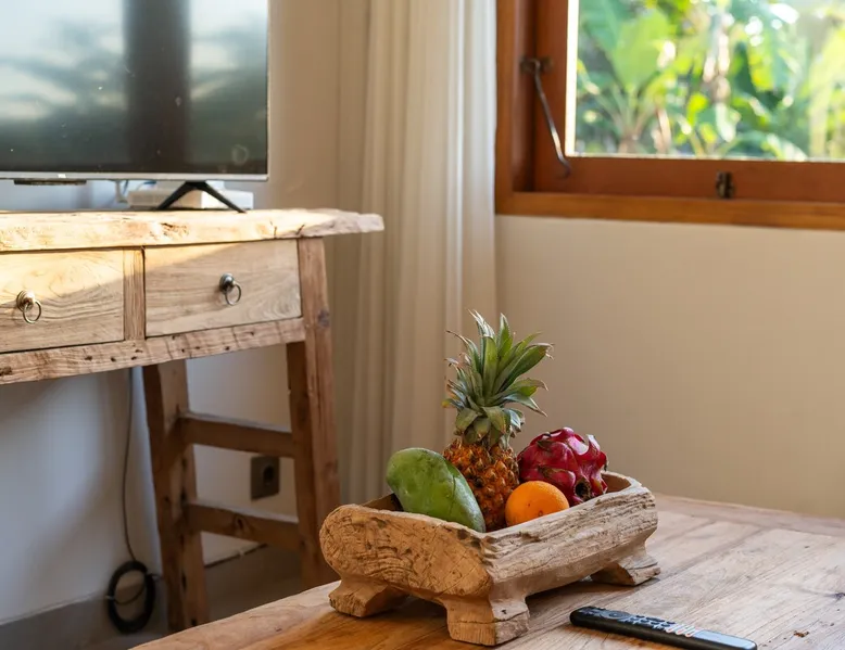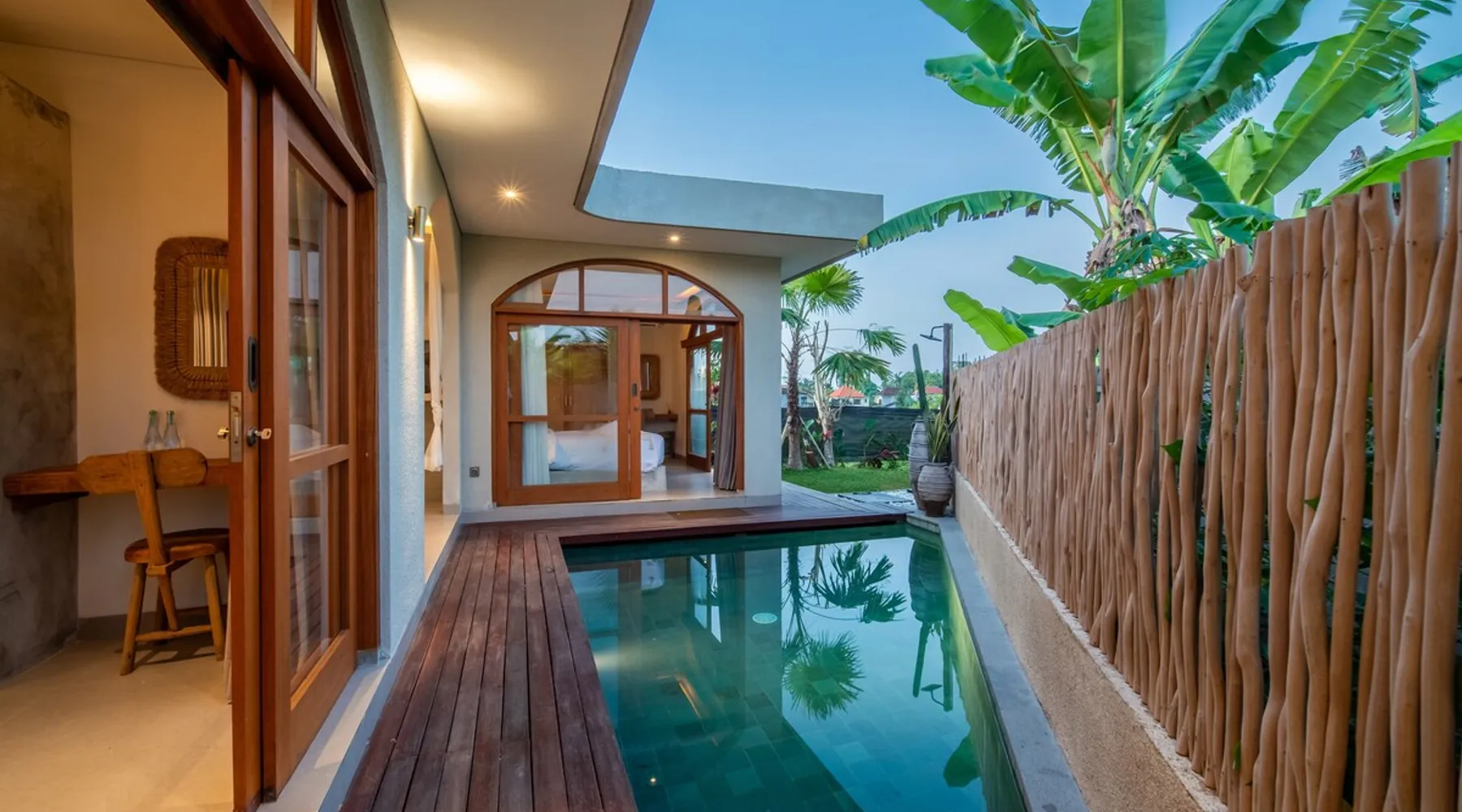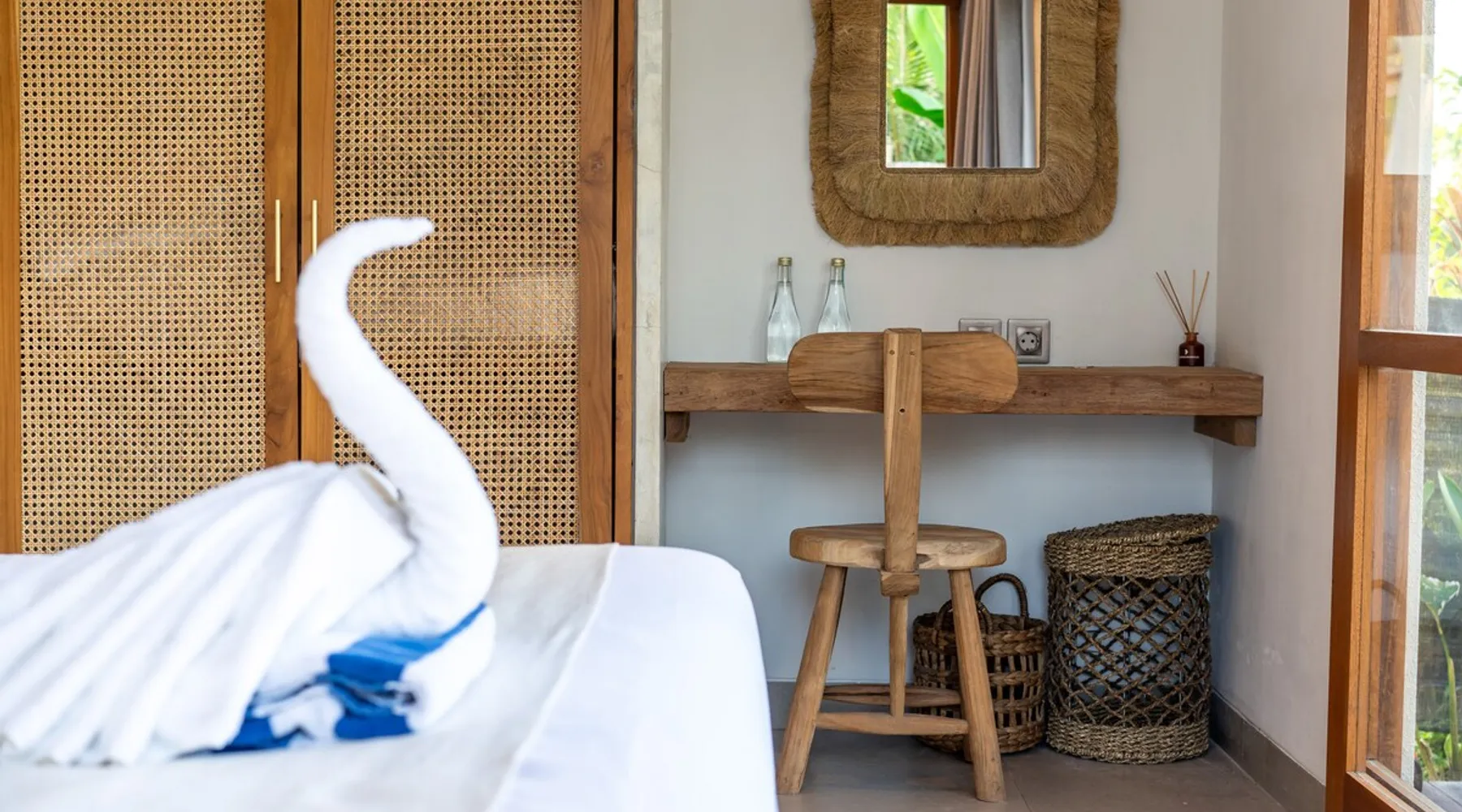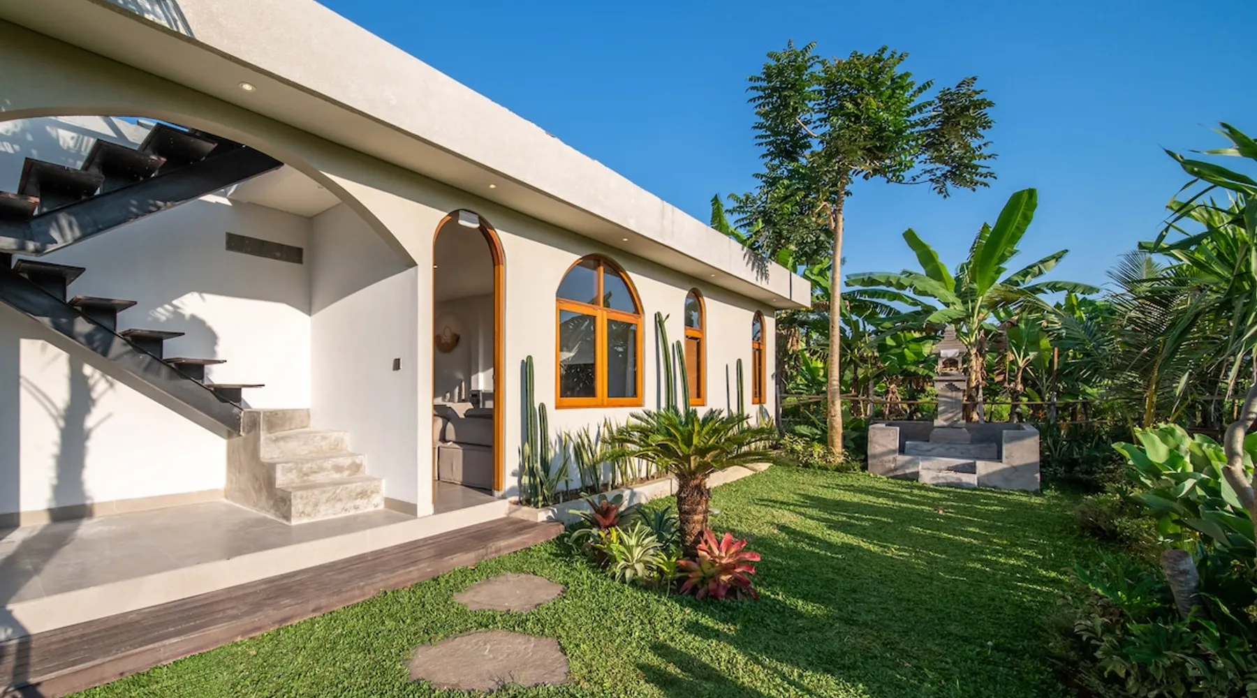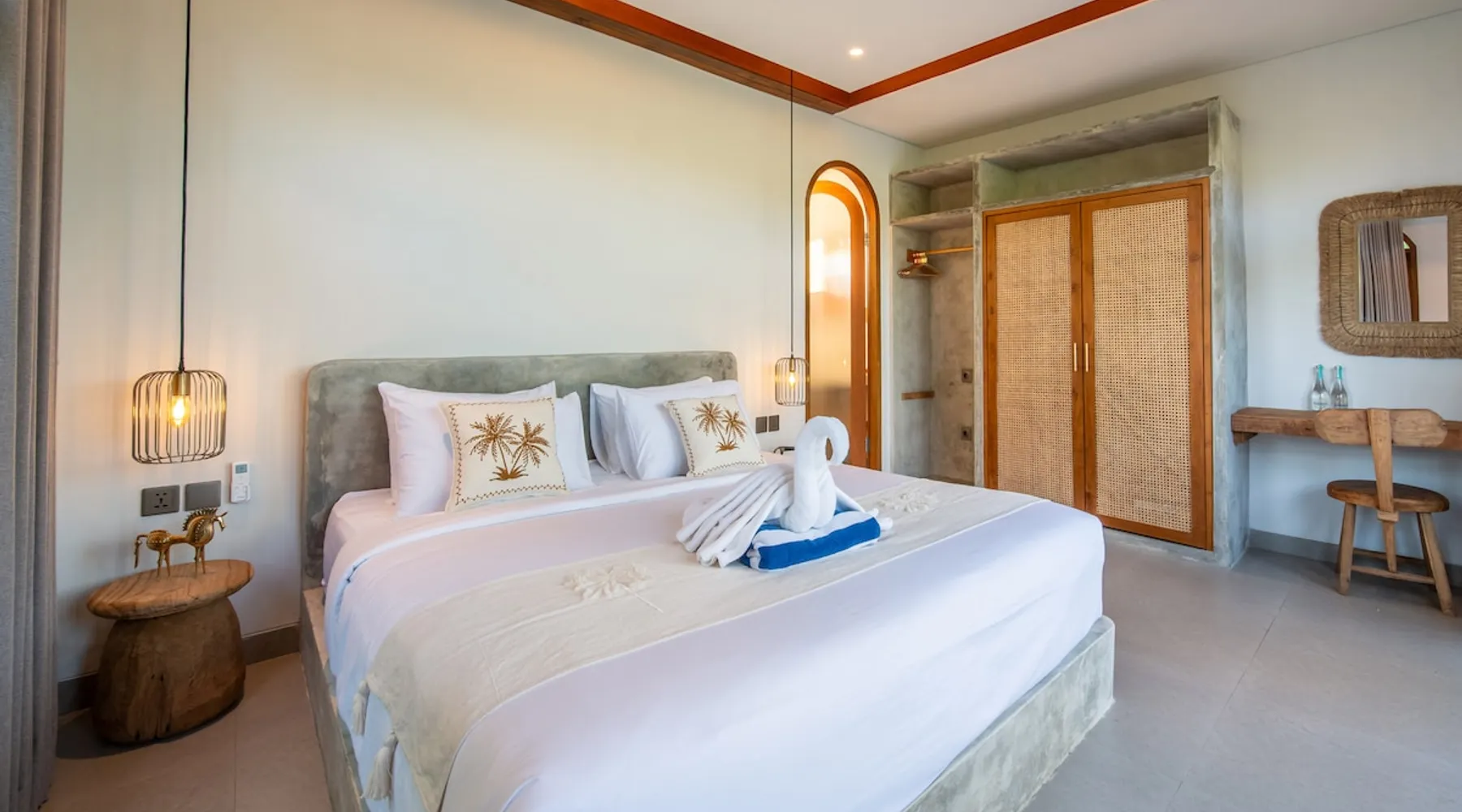 Relax in this quiet and stylish space. This unique place, recently completed in November 2024, is nestled near a local ceramics workshop, offering an authentic and rare experience. This enchanting place offers elegant and bright Mediterranean architecture, perfectly integrated with Balinese nature. Imagine yourself admiring spectacular sunsets on emerald rice fields, surrounded by peaceful nature. The space - Bedrooms: Two spacious bedrooms, each equipped with a king size bed and en-suite bathroom including one with a luxurious bathtub. - Living room & Common spaces: Relax in the beautiful living room, a room bathed in light, perfect for moments of conviviality or relaxation on your own. The decor combines Mediterranean style and Balinese touches for an unforgettable atmosphere. - Private Pool: The villa has a private swimming pool that invites you to relax. - Daily Cleaning Service: Don't worry about anything, our staff takes care of everything so you can fully enjoy your stay. Guest access You benefit from exclusive use of the entire villa. From the private pool to stylish living spaces, every nook and cranny of this hidden gem is entirely yours. Each room has its own keys to ensure your privacy and security. Free parking and easy access to the main road make getting around simple, whether by taxi or renting a motorbike. Other things to note We make your stay easier with personalized services *: - Airport transfer roundtrip. - Private chef. - Authentic Balinese cooking class. - Motorcycle rental. - English speaking tourist guide. - Pool decor. - Flower bouquets. *These services are not included in the booking price