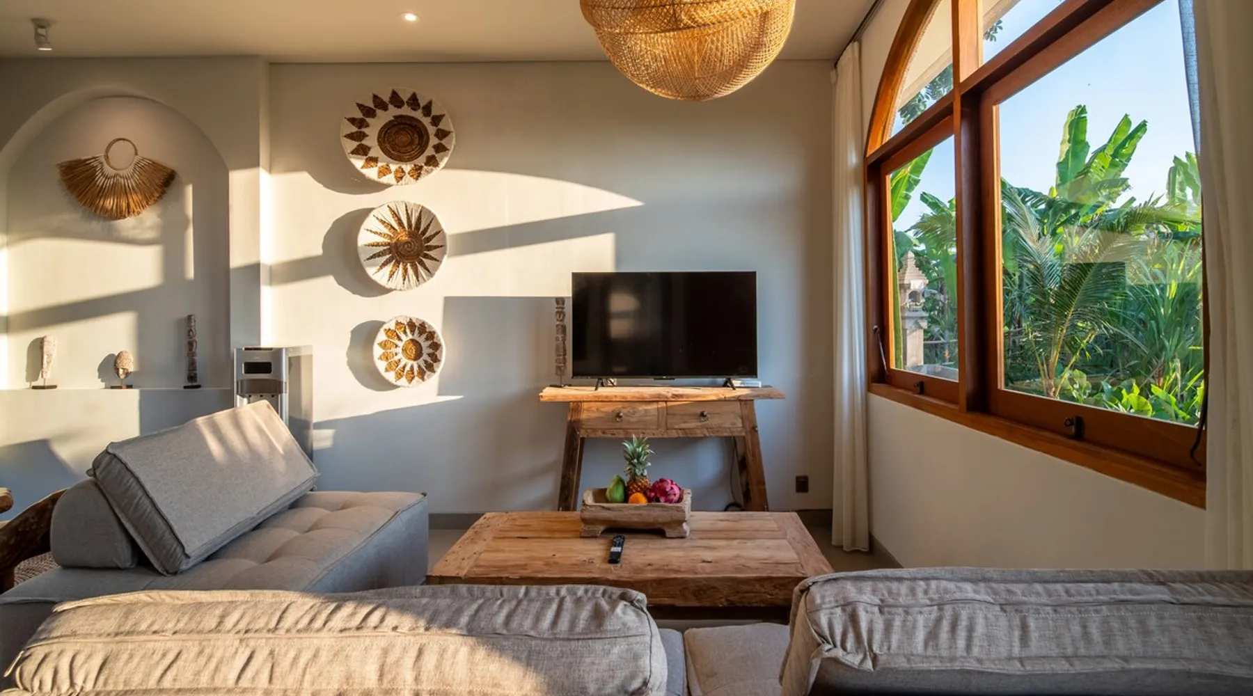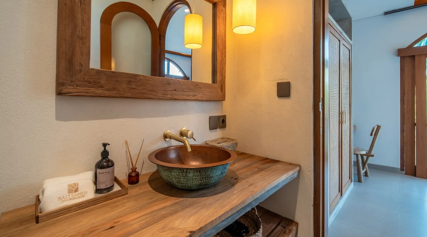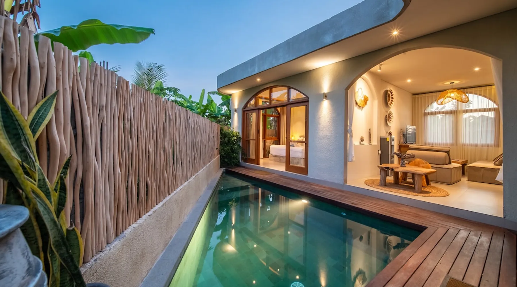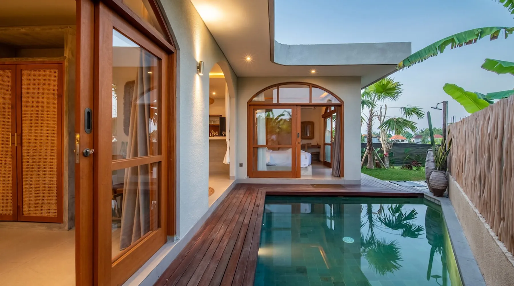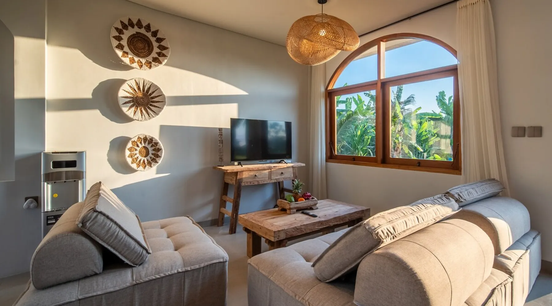 Relax in this quiet and stylish space. This unique place, recently completed in November 2024, is nestled near a local ceramics workshop, offering an authentic and rare experience. This enchanting place offers elegant and bright Mediterranean architecture, perfectly integrated with Balinese nature. Imagine yourself admiring spectacular sunsets on emerald rice fields, surrounded by peaceful nature. The space - Bedrooms: Two spacious bedrooms, each equipped with a king size bed and en-suite bathroom including one with a luxurious bathtub. - Living room & Common spaces: Relax in the beautiful living room, a room bathed in light, perfect for moments of conviviality or relaxation on your own. The decor combines Mediterranean style and Balinese touches for an unforgettable atmosphere. - Private Pool: The villa has a private swimming pool that invites you to relax. - Daily Cleaning Service: Don't worry about anything, our staff takes care of everything so you can fully enjoy your stay. Guest access You benefit from exclusive use of the entire villa. From the private pool to stylish living spaces, every nook and cranny of this hidden gem is entirely yours. Each room has its own keys to ensure your privacy and security. Free parking and easy access to the main road make getting around simple, whether by taxi or renting a motorbike. Other things to note We make your stay easier with personalized services *: - Airport transfer roundtrip. - Private chef. - Authentic Balinese cooking class. - Motorcycle rental. - English speaking tourist guide. - Pool decor. - Flower bouquets. *These services are not included in the booking price