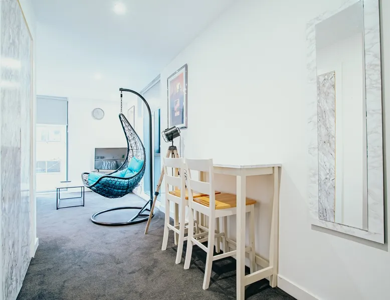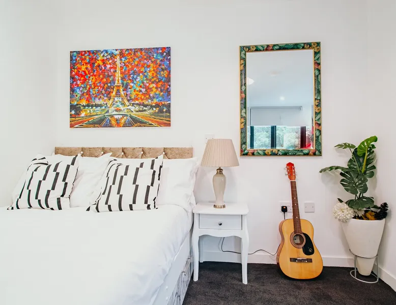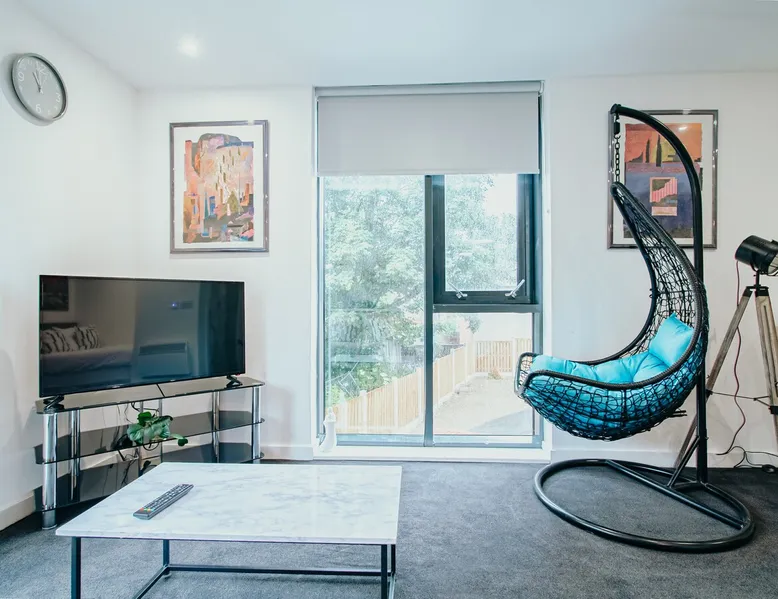 Step into a bright and modern studio apartment in Sheffield, designed with comfort, style, and convenience in mind. Perfect for solo travellers, couples, or business guests, this space combines practical amenities with eye-catching décor. The space The open-plan living area features a cosy sofa, Smart TV, and large windows that fill the room with natural light. A hanging chair adds a unique touch, making it a perfect spot to relax with a book or a coffee. Vibrant artwork and modern finishes bring colour and character to the space. The fully equipped kitchenette, styled with marble-effect cabinets, includes a hob, microwave, fridge, kettle, and all the essentials for preparing simple meals. A dining table doubles as a workspace, making this studio a great choice for remote working or business trips. The sleeping area offers a comfortable double bed with fresh linens, bedside lighting, and thoughtful touches for a restful night’s sleep. The modern bathroom provides a walk-in shower, complimentary toiletries, and soft towels for your convenience. Located close to Sheffield city centre, the apartment is within easy reach of shops, cafés, restaurants, Kelham Island, Sheffield Hallam University, and excellent transport links. Whether you’re here for work or leisure, this studio offers excellent value with the style and privacy of a home away from home. Book your Sheffield stay today and enjoy a modern retreat with Avo Apartments. Other things to note Parking is convenient and flexible. Secure underground parking is available at £5 per night with a reservation. Smoking is not permitted inside the apartment, but a designated outdoor smoking area is provided. Please note that the balcony is temporarily closed for safety and security reasons. Flexible check-in and check-out options are available for £10 per hour, subject to availability. Sofa beds, travel cots, and high chairs can be arranged for £20, while mid-stay cleaning is available at £20, and a post check-out deep clean can be booked for £25. Our team is available daily from 9 AM until midnight to provide quick support, and we kindly ask guests to help us maintain a peaceful and relaxed atmosphere during their stay. In rare situations or for extra services, additional fees may apply. These include a lost key replacement at £50, a lost fob replacement at £80, a call-out service at £50, and a house rules breach fee of £100. Extra guests are charged at £25 per person per night. We pride ourselves on offering unbeatable value, with amazing deals, special offers, and extended stay discounts available for longer bookings.