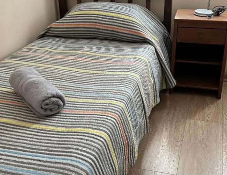 Comfortable Living: Departamento Central 2Dor+2Baños in Chillán offers a spacious apartment with two bedrooms and two bathrooms. The living room features a sofa bed and a balcony with city views. Modern Amenities: Guests enjoy free WiFi, air-conditioning, and a fully equipped kitchen with a coffee machine and microwave. Additional amenities include a terrace, balcony, and a washing machine. Convenient Facilities: The property provides a elevator, 24-hour front desk, concierge service, family rooms, full-day security, and bicycle parking. Paid on-site private parking is available. Nearby Attractions: Chillan Train Station is a 13-minute walk away, offering easy transportation options. This air-conditioned apartment features 1 living room, 2 separate bedrooms and 2 bathrooms with a bath. The apartment's kitchen, which has a microwave, is available for cooking and storing food. Boasting a balcony with city views, this apartment also features a tea and coffee maker and a flat-screen TV. The unit has 3 beds.