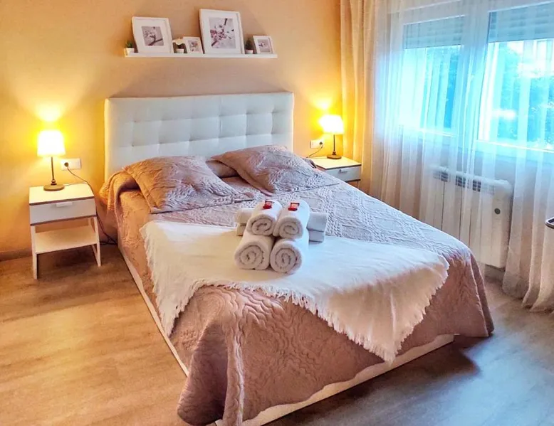 Spacious Accommodations: Casa en Cortiñan in Bergondo offers a spacious apartment with two bedrooms and a bathroom. The ground-floor unit features a balcony with garden and mountain views. Modern Amenities: Guests enjoy free WiFi, a fully equipped kitchenette, washing machine, and free on-site private parking. Additional amenities include streaming services, a fireplace, and a seating area. Convenient Location: Located 8.7 mi from A Coruña Airport, the apartment is near attractions such as Marina Sada (6.8 mi) and the Tower of Hercules (15 mi). Highly rated for its host, room comfort, and convenient location. This apartment offers a fireplace. The spacious apartment features 2 bedrooms and 1 bathroom with a shower and free toiletries. Meals can be prepared in the well-fitted kitchen, which comes with a refrigerator, kitchenware, an oven and a microwave. The apartment provides a flat-screen TV with streaming services, a washing machine, soundproof walls, a tea and coffee maker as well as garden views. The unit offers 2 beds.