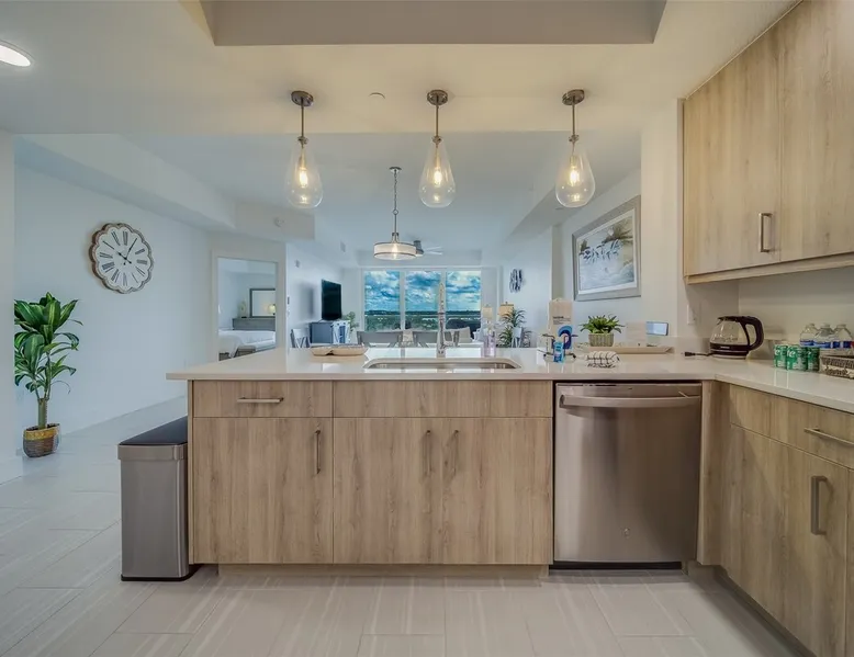Experience ultimate relaxation in this brand-new 1800 sf, fully furnished 3-bedroom, 2-bathroom penthouse (5th floor) in Clearwater. Located on the top floor, this unit offers luxurious living space, featuring a waterfront balcony where you can enjoy the serene waterways. Just 4 minutes drive (22 minute walk) from Clearwater Beach, The Pier 60. The space Experience the ultimate convenience with our COMPLIMENTARY FIVE-STAR PREMIUM HOSPITALITY SERVICES provided and included during your stay! You receive a credit, with a capped amount, to be used towards the services of your choice to enhance your vacation: TRANSPORTATION, CONCIERGE ASSISTANCE, and MEALS. Should you need more, additional services are provided at discounted rates for your comfort. More details will be provided upon arrival/check-in for a seamless and stress-free experience. The gourmet kitchen is fully equipped with modern appliances, and everything you need to prepare delicious meals. Master Bedroom has a King, 2nd and 3rd bedrooms each have Queen Beds. Take advantage of the community’s top-notch amenities, including a sparkling swimming pool, hot tub, fitness center, and BBQ. The condo also features in-unit laundry & dryer, and secured entry. You will have assigned parking for 2 vehicles only. Located in a peaceful neighborhood just 4 minutes drive from Clearwater Beach, The Pier, and Clearwater Marine Aquarium. Short distance from grocery store, shopping, dining, and entertainment. Guest access Full access to the Pool, Hot tub, Fitness Center, Sundeck, BBQ. Other things to note No pets are allowed at this property. No smoking is permitted anywhere on the premises. This rental is located on 5th floor. You must be 25 years or older to rent this property. The City of Clearwater and the State of Florida charge sales and lodging tax (through Airbnb) for all stays shorter than 6 months.