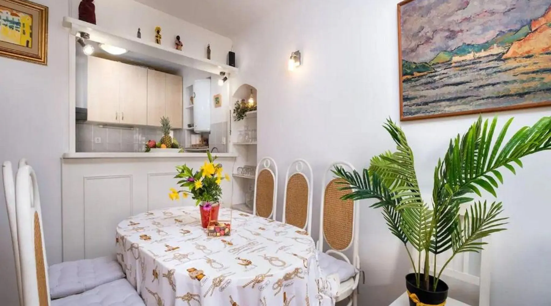 Comfortable Living Space: Apartment Jany in Dubrovnik offers a two-bedroom apartment with a city view. The property includes a living room, dining area, and a fully equipped kitchen. Modern Amenities: Guests enjoy free WiFi, air-conditioning, a washing machine, and a fully equipped kitchen with a refrigerator, microwave, oven, and toaster. Additional amenities include a dining table, sofa, TV, and a hairdryer. Prime Location: Located in the city center, the apartment is a few steps from Buza Beach and close to attractions such as Dubrovnik Cathedral and Old Town Port. Dubrovnik Airport is 11 mi away. Boating opportunities are available in the surroundings. This air-conditioned apartment consists of 1 living room, 2 separate bedrooms and 1 bathroom with a shower. In the kitchen, guests will find a refrigerator, an oven, a microwave and a toaster. The apartment provides a washing machine, a tea and coffee maker, a seating area, a dining area, as well as a TV with cable channels. The unit offers 3 beds.