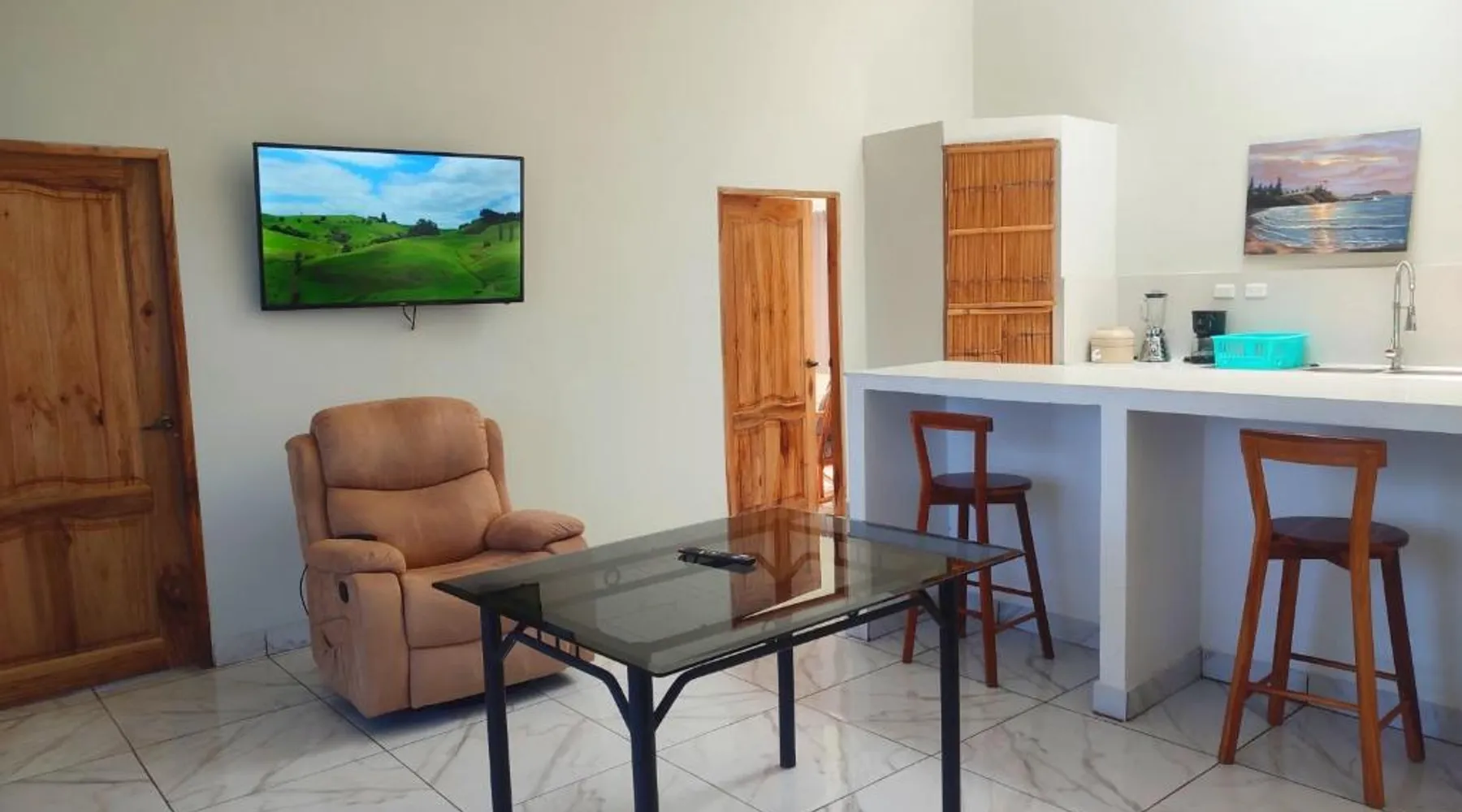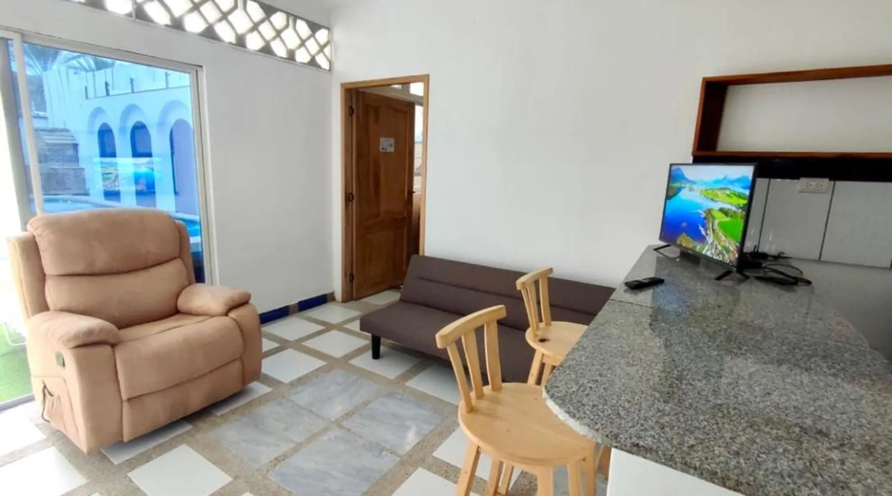 Beachfront Location: Casa de Hamacas in Ballenita offers direct beachfront access with a private beach area. Guests enjoy sea views and a year-round outdoor swimming pool. Comfortable Accommodations: The apartment features a recently renovated interior with a garden, balcony, and patio. Each unit includes a private bathroom, air-conditioning, and free WiFi. Dining and Amenities: Breakfast options include continental, American, and buffet with warm dishes and cheese. Additional facilities include a heated pool, spa bath, and free toiletries. Nearby Attractions: Ballenita Beach is just a few steps away, providing easy beach access. Other attractions include Ballenita Park and the Ballenita Museum. This apartment features a private pool and a spa bath. This spacious apartment features 1 living room, 2 separate bedrooms and 2 bathrooms with a shower and free toiletries. The fully equipped kitchen has a refrigerator, a dishwasher, kitchenware and an oven. The air-conditioned apartment features a flat-screen TV, a coffee machine, a seating area, a dining area as well as sea views. The unit has 2 beds.
