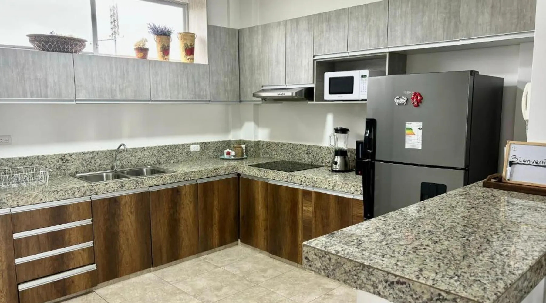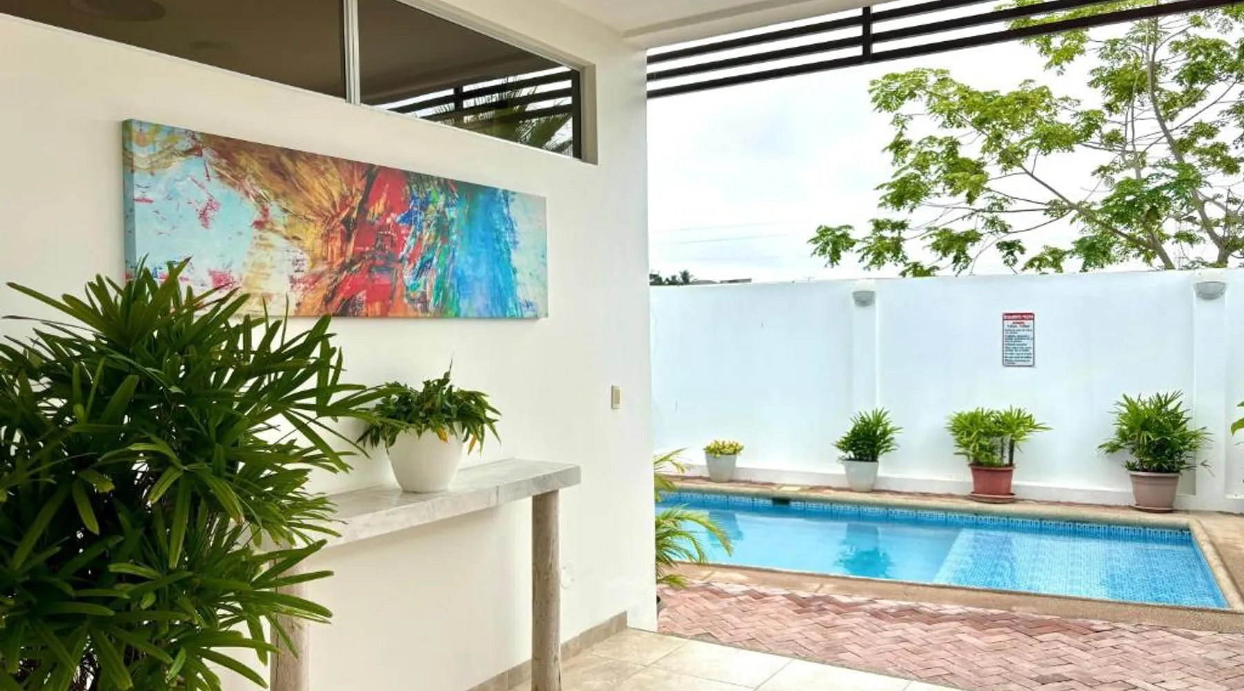 Comfortable Living Space: Las Casitas en Santa Elena in Santa Elena offers a one-bedroom apartment with a balcony and garden views. The property includes a kitchenette, air-conditioning, and a private pool. Modern Amenities: Guests enjoy free WiFi, a fully equipped kitchen, and a TV. The apartment features a private bathroom with a shower. Convenient Location: Located a few steps from Punta Blanca Beach, the apartment is 84 mi from José Joaquín de Olmedo International Airport. Reception staff speak English and Spanish. The private pool is the standout feature of this apartment. The apartment's kitchen is available for cooking and storing food. Boasting a balcony with garden views, this apartment also features air conditioning and a flat-screen TV. The unit has 2 beds.