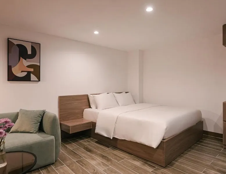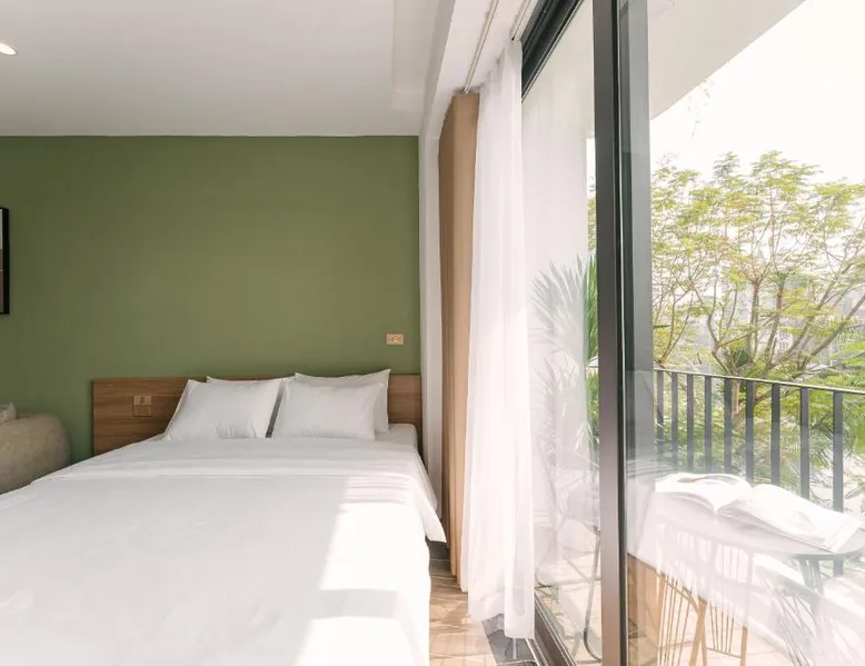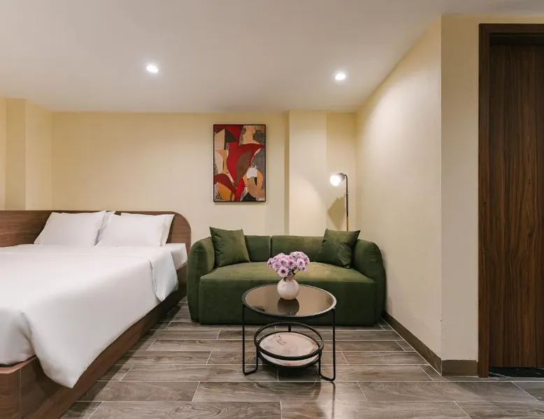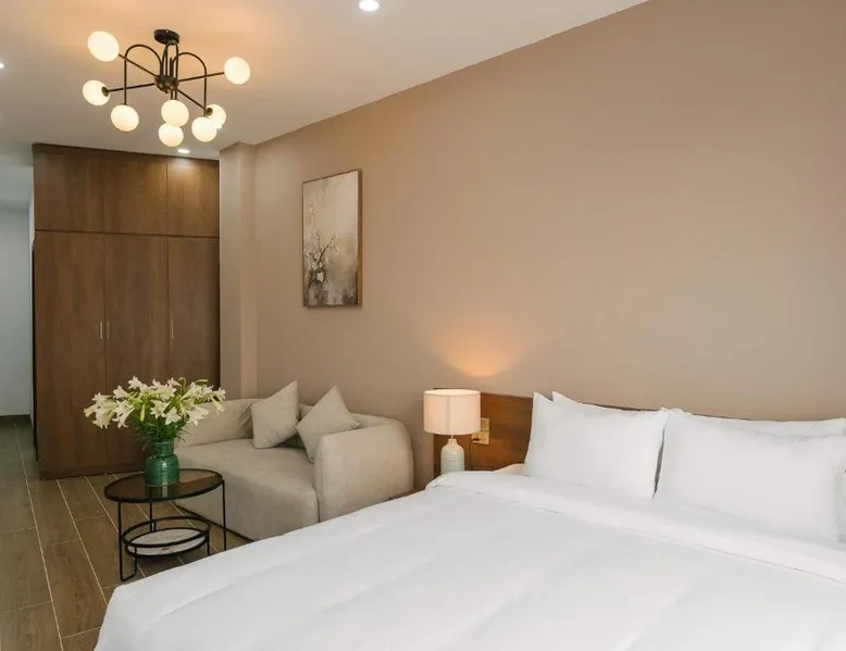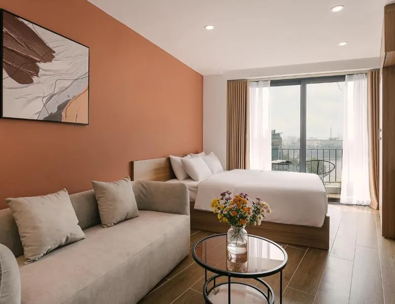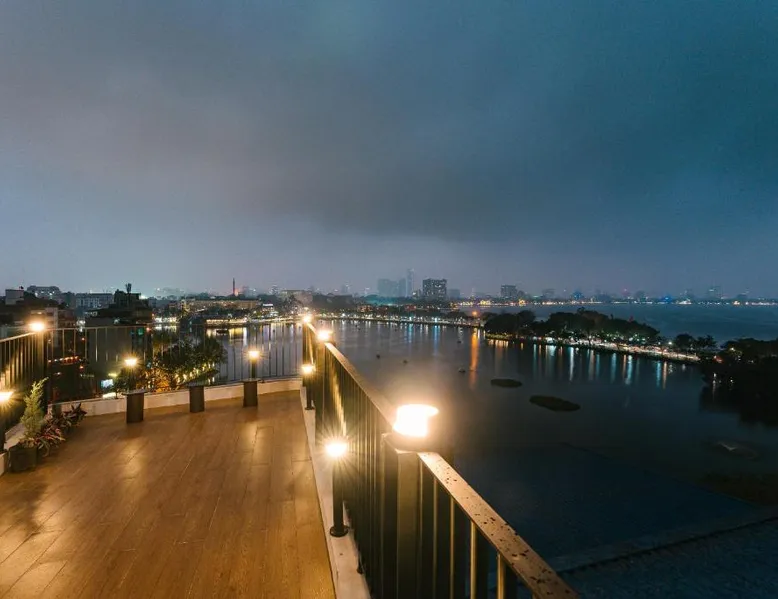 Comfortable Accommodations: An Nguyen Lakeside Residence in Hanoi offers aparthotel-style accommodations with private check-in and check-out services. Each unit features a terrace or balcony with lake views, a fully equipped kitchenette, and a private bathroom. Exceptional Facilities: Guests enjoy a bar, terrace, and free WiFi. Additional amenities include a hot tub, lounge, and 24-hour front desk. The property provides a paid airport shuttle service, concierge, and tour desk. Prime Location: Located 13 mi from Noi Bai International Airport, the aparthotel is a short walk from West Lake and close to attractions such as Quan Thanh Temple (0.7 mi) and Ho Chi Minh Mausoleum (1.2 mi). Nearby restaurants enhance the stay. The air-conditioned apartment features 1 bedroom and 1 bathroom with a shower and a hairdryer. Meals can be prepared in the kitchen, which is fitted with a refrigerator, kitchenware, a microwave and an electric kettle. The apartment has tiled floors, a seating area with a flat-screen TV with streaming services, soundproof walls, a dining area, as well as a wardrobe. The unit offers 1 bed.