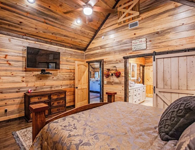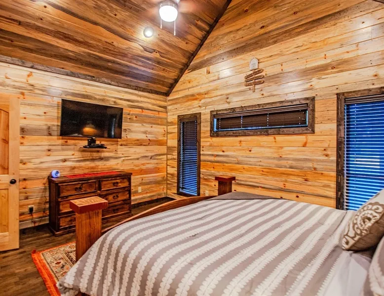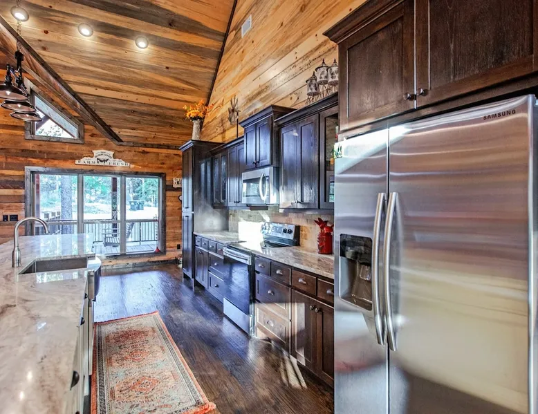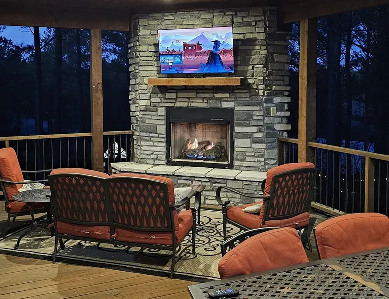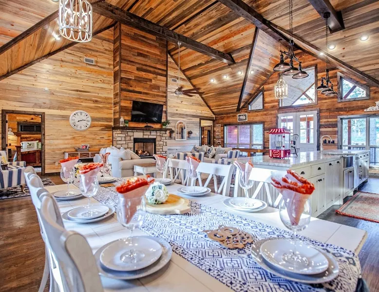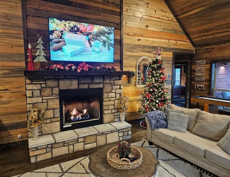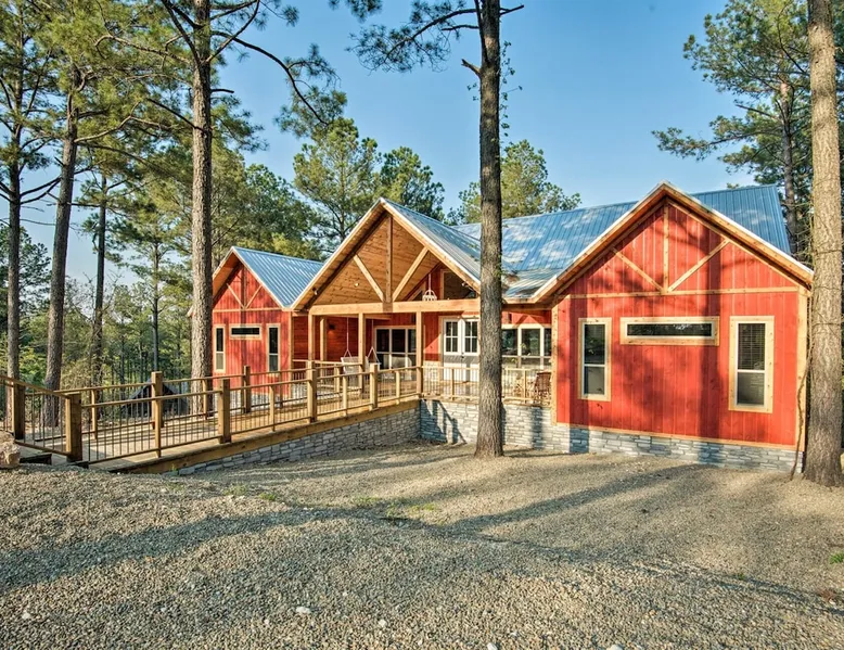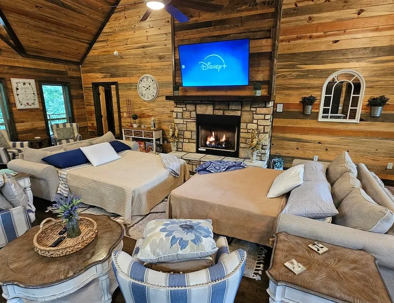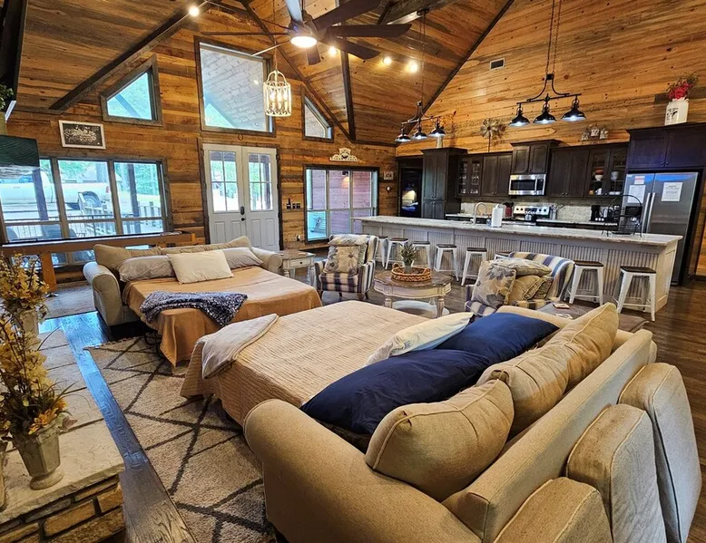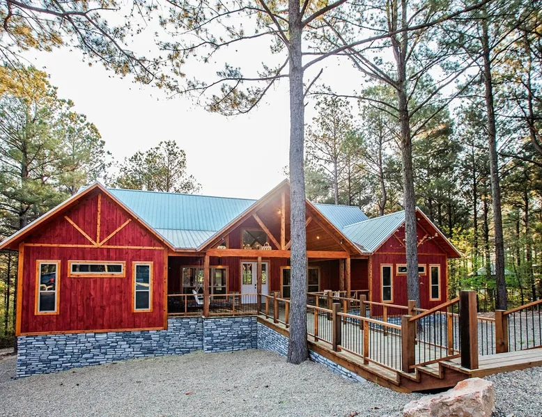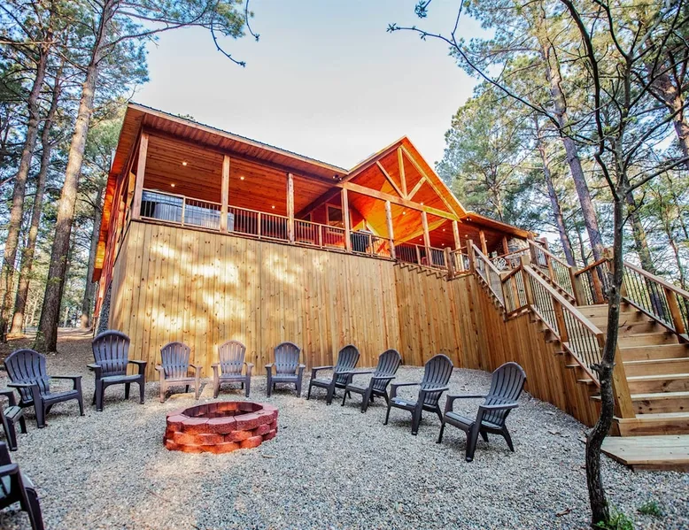 Embark on incredible outdoor adventures when you book this 4-bedroom, 4-bath vacation rental next to Beavers Bend State Park! Perfect for families and large groups of friends, this spectacular cabin offers a fully equipped kitchen, a cozy interior with a shuffleboard table, and a covered deck with a fireplace and gas grill. Relax in the fresh air while gathered around the firepit or soak in the forest views from your private hot tub! The space Welcome to your perfect getaway! This spacious 4-bedroom, 4-bathroom home comfortably sleeps up to 12 guests, making it ideal for family vacations or group retreats. Each bedroom has its own private ensuite for added comfort and privacy. As you walk in, you’re greeted by a large, fully-equipped kitchen featuring sleek granite countertops, perfect for cooking and gathering. The open-concept living space is designed for relaxation and entertainment, with streaming TVs in every room and on the back patio, so you can enjoy your favorite shows inside or outside. Step outside to the expansive outdoor patio, where you'll find plenty of seating to relax and enjoy the fresh air. Soak in the hot tub, gather around the fire pit, or play games with family and friends on the indoor shuffleboard. We also offer a variety of board games and card games for indoor entertainment. Located in close proximity to local restaurants and activities, you’ll have everything you need just a short drive away, including outdoor adventures, shopping, and dining options. Whether you prefer a day out exploring or unwinding in comfort, this location offers the best of both worlds. With ample parking available on the circle drive, this home offers convenience and easy access for all your guests. Book your stay today for a perfect blend of relaxation, fun, and convenience at this beautiful retreat! Covered Deck | Shuffleboard Table | Excellent Location Bedroom 1: King Bed | Bedroom 2: King Bed | Bedroom 3: King Bed | Bedroom 4: King Bed | Living Room: 2 Sleeper Sofas | Additional Sleeping: Pack ‘n Play OUTDOOR LIVING: Private hot tub, front & rear covered deck, dining table, gas grill, fireplace, fire pit w/ 10 Adirondack chairs, patio swing, gas grill INDOOR LIVING: 5 50-inch Samsung Smart TVs w/Roku, indoor gas fireplace, 12-person breakfast bar, board games, 4 en-suite luxury bathrooms KITCHEN: Cooking basics, stove/oven, refrigerator, microwave, dishware & flatware, dishwasher, coffee maker, GENERAL: Free WiFi, linens/towels, central A/C & heating, in-unit laundry machines, hair dryer, hangers, iron/board, complimentary toiletries FAQ: Pet fee (paid pre-trip), stairs required to access PARKING: Driveway (4 vehicles), RV/trailer parking allowed on-site Other things to note - No smoking - Dog friendly (2 Medium Dogs Max up to 50lbs each) - No events, parties or large gatherings - Must be at least 25 years old to book - Additional fees and taxes may apply - Photo ID may be required upon check-in - NOTE: The property requires stairs to access Have any questions or need more details? Feel free to send me a message — I'm happy to help and ensure you have the best stay possible! Guest access You'll receive a private door code for keyless entry — no need to meet anyone in person. Enjoy the freedom of self check-in and to come and go at your convenience. You'll have full access to the entire property and available amenities during your stay. Other things to note Enhance your stay with one of our curated add-ons (Subject to Availability): • 🍫 S’mores Kits – Everything you need for fireside treats • 🪵 Firewood Bundles – Ready-to-use bundles for the outdoor firepit • 💐🎁 Flowers, Candy & Gift Packages – Perfect for romantic gestures, birthdays, or surprise celebrations Important Booking Info • 📄 A rental agreement must be signed electronically after booking • 🪪 A government-issued photo ID is required to confirm your reservation • 💳 A refundable security deposit will be held during your stay, just in case Security For your peace of mind, one exterior security camera is located at the front entry, facing out, monitoring only the driveway and entryway — never inside or in private outdoor areas. Gas log fireplaces are seasonal October through April.