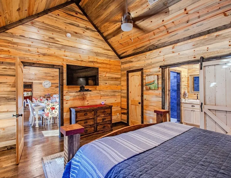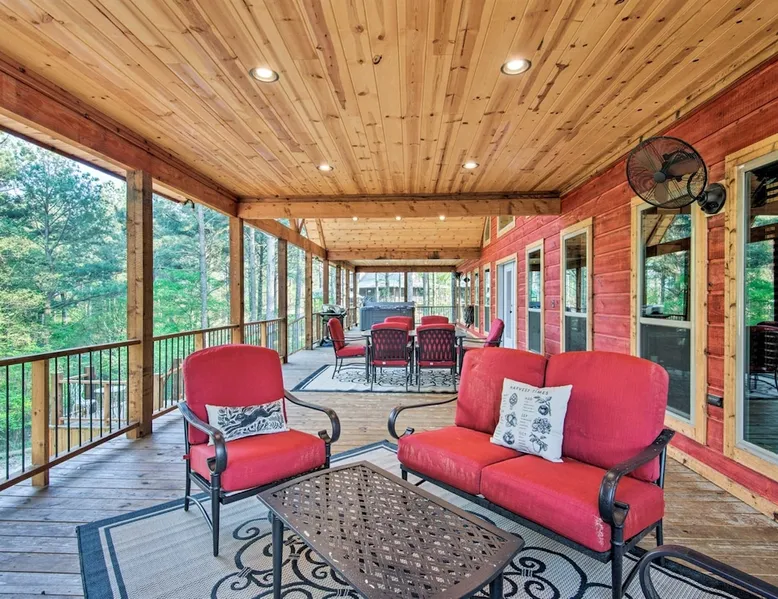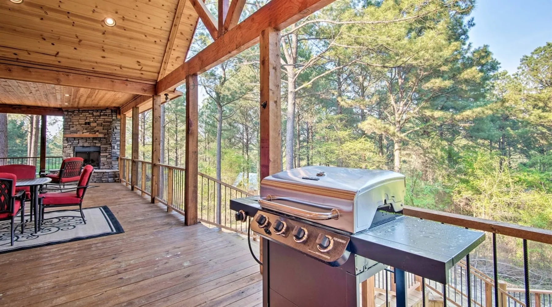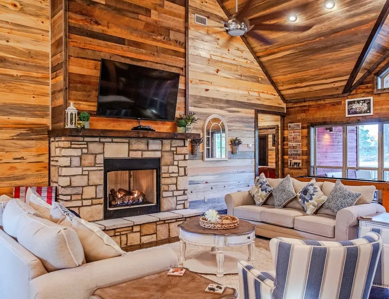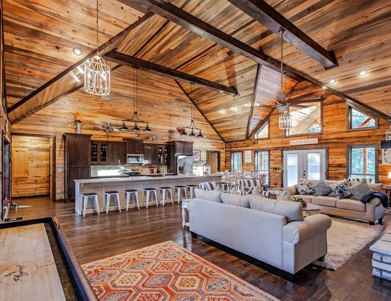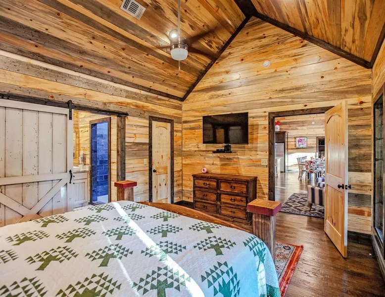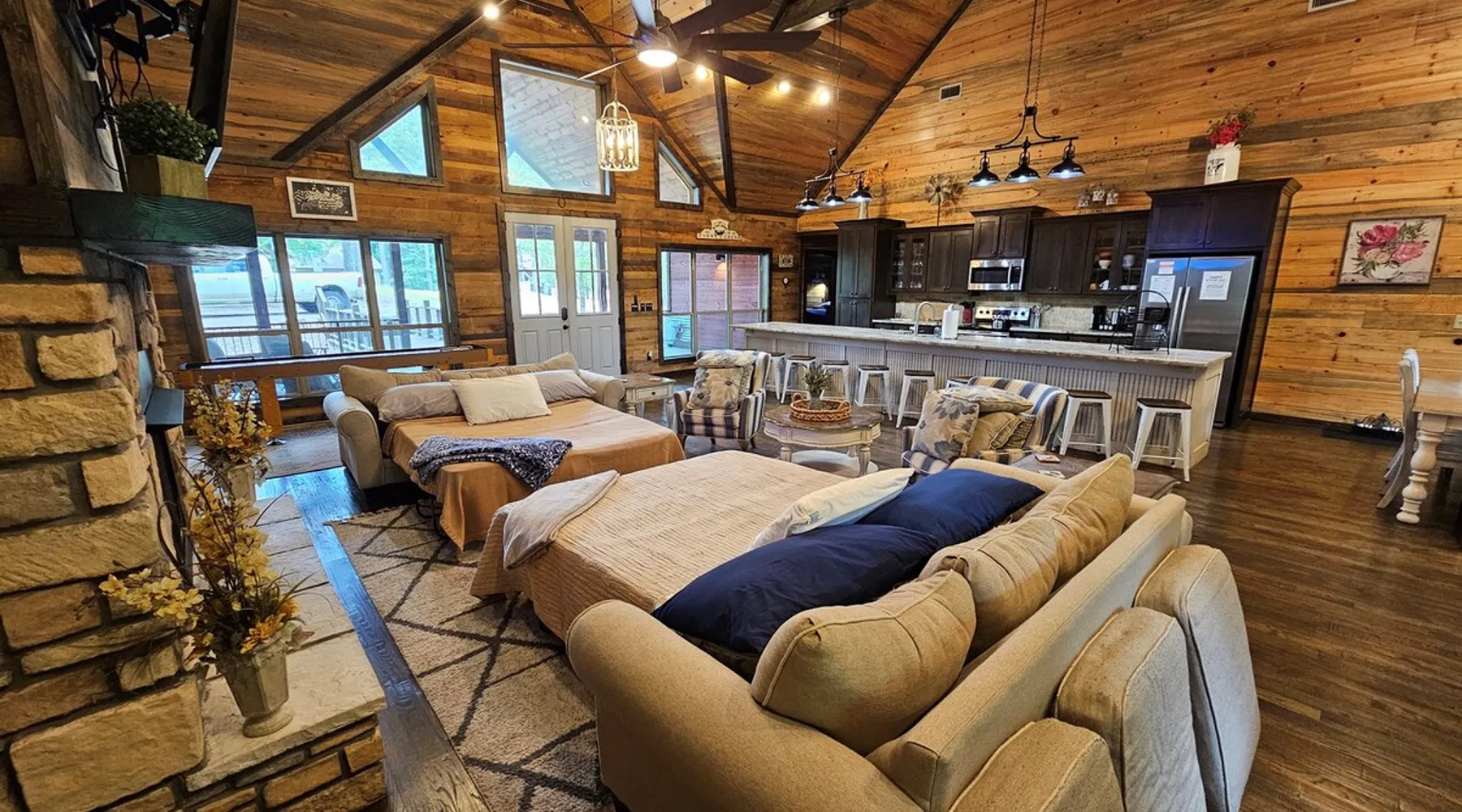 Embark on incredible outdoor adventures when you book this 4-bedroom, 4-bath vacation rental next to Beavers Bend State Park! Perfect for families and large groups of friends, this spectacular cabin offers a fully equipped kitchen, a cozy interior with a shuffleboard table, and a covered deck with a fireplace and gas grill. Relax in the fresh air while gathered around the firepit or soak in the forest views from your private hot tub! The space Welcome to your perfect getaway! This spacious 4-bedroom, 4-bathroom home comfortably sleeps up to 12 guests, making it ideal for family vacations or group retreats. Each bedroom has its own private ensuite for added comfort and privacy. As you walk in, you’re greeted by a large, fully-equipped kitchen featuring sleek granite countertops, perfect for cooking and gathering. The open-concept living space is designed for relaxation and entertainment, with streaming TVs in every room and on the back patio, so you can enjoy your favorite shows inside or outside. Step outside to the expansive outdoor patio, where you'll find plenty of seating to relax and enjoy the fresh air. Soak in the hot tub, gather around the fire pit, or play games with family and friends on the indoor shuffleboard. We also offer a variety of board games and card games for indoor entertainment. Located in close proximity to local restaurants and activities, you’ll have everything you need just a short drive away, including outdoor adventures, shopping, and dining options. Whether you prefer a day out exploring or unwinding in comfort, this location offers the best of both worlds. With ample parking available on the circle drive, this home offers convenience and easy access for all your guests. Book your stay today for a perfect blend of relaxation, fun, and convenience at this beautiful retreat! Covered Deck | Shuffleboard Table | Excellent Location Bedroom 1: King Bed | Bedroom 2: King Bed | Bedroom 3: King Bed | Bedroom 4: King Bed | Living Room: 2 Sleeper Sofas | Additional Sleeping: Pack ‘n Play OUTDOOR LIVING: Private hot tub, front & rear covered deck, dining table, gas grill, fireplace, fire pit w/ 10 Adirondack chairs, patio swing, gas grill INDOOR LIVING: 5 50-inch Samsung Smart TVs w/Roku, indoor gas fireplace, 12-person breakfast bar, board games, 4 en-suite luxury bathrooms KITCHEN: Cooking basics, stove/oven, refrigerator, microwave, dishware & flatware, dishwasher, coffee maker, GENERAL: Free WiFi, linens/towels, central A/C & heating, in-unit laundry machines, hair dryer, hangers, iron/board, complimentary toiletries FAQ: Pet fee (paid pre-trip), stairs required to access PARKING: Driveway (4 vehicles), RV/trailer parking allowed on-site Other things to note - No smoking - Dog friendly (2 Medium Dogs Max up to 50lbs each) - No events, parties or large gatherings - Must be at least 25 years old to book - Additional fees and taxes may apply - Photo ID may be required upon check-in - NOTE: The property requires stairs to access Have any questions or need more details? Feel free to send me a message — I'm happy to help and ensure you have the best stay possible! Guest access You'll receive a private door code for keyless entry — no need to meet anyone in person. Enjoy the freedom of self check-in and to come and go at your convenience. You'll have full access to the entire property and available amenities during your stay. Other things to note Enhance your stay with one of our curated add-ons (Subject to Availability): • 🍫 S’mores Kits – Everything you need for fireside treats • 🪵 Firewood Bundles – Ready-to-use bundles for the outdoor firepit • 💐🎁 Flowers, Candy & Gift Packages – Perfect for romantic gestures, birthdays, or surprise celebrations Important Booking Info • 📄 A rental agreement must be signed electronically after booking • 🪪 A government-issued photo ID is required to confirm your reservation • 💳 A refundable security deposit will be held during your stay, just in case Security For your peace of mind, one exterior security camera is located at the front entry, facing out, monitoring only the driveway and entryway — never inside or in private outdoor areas. Gas log fireplaces are seasonal October through April.