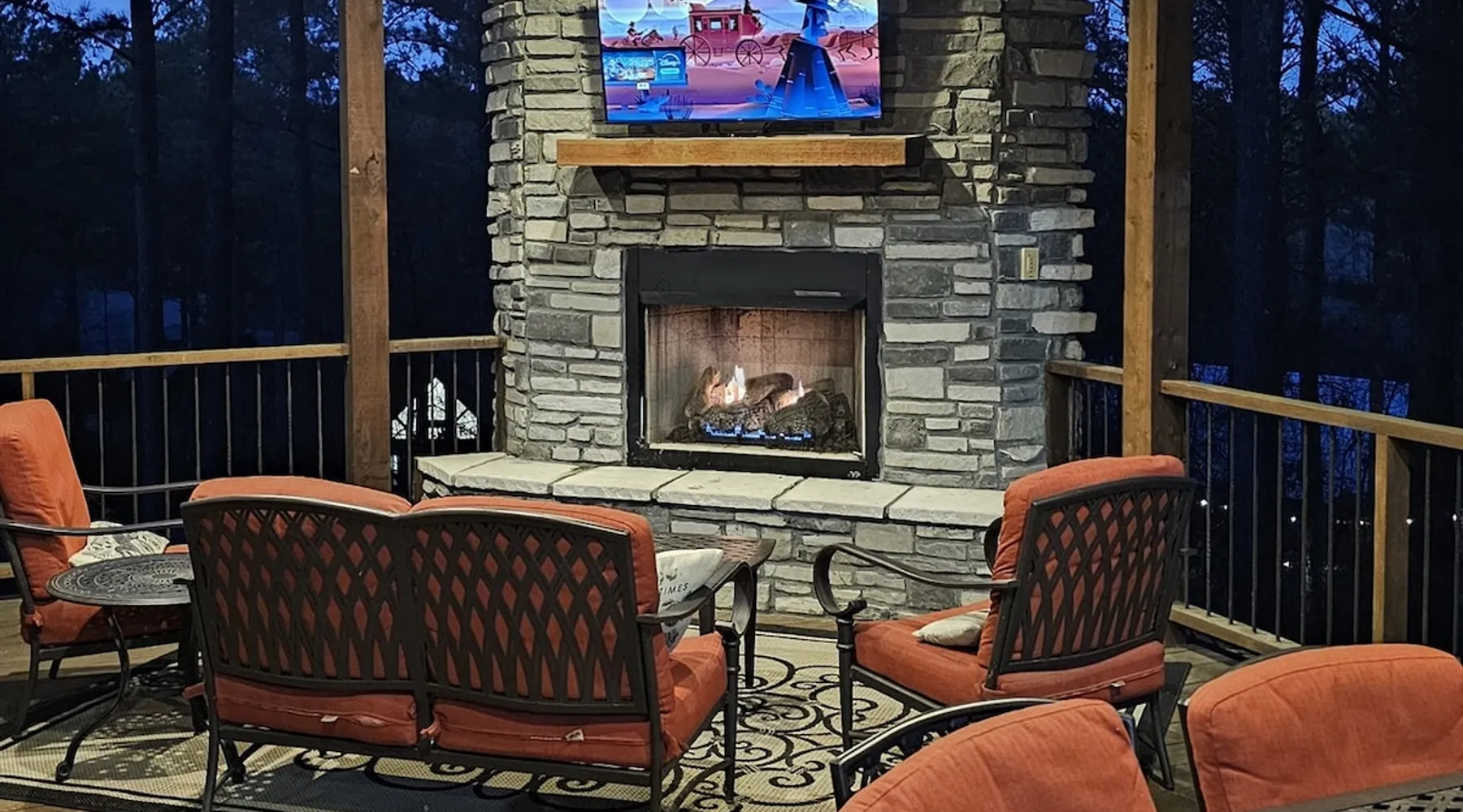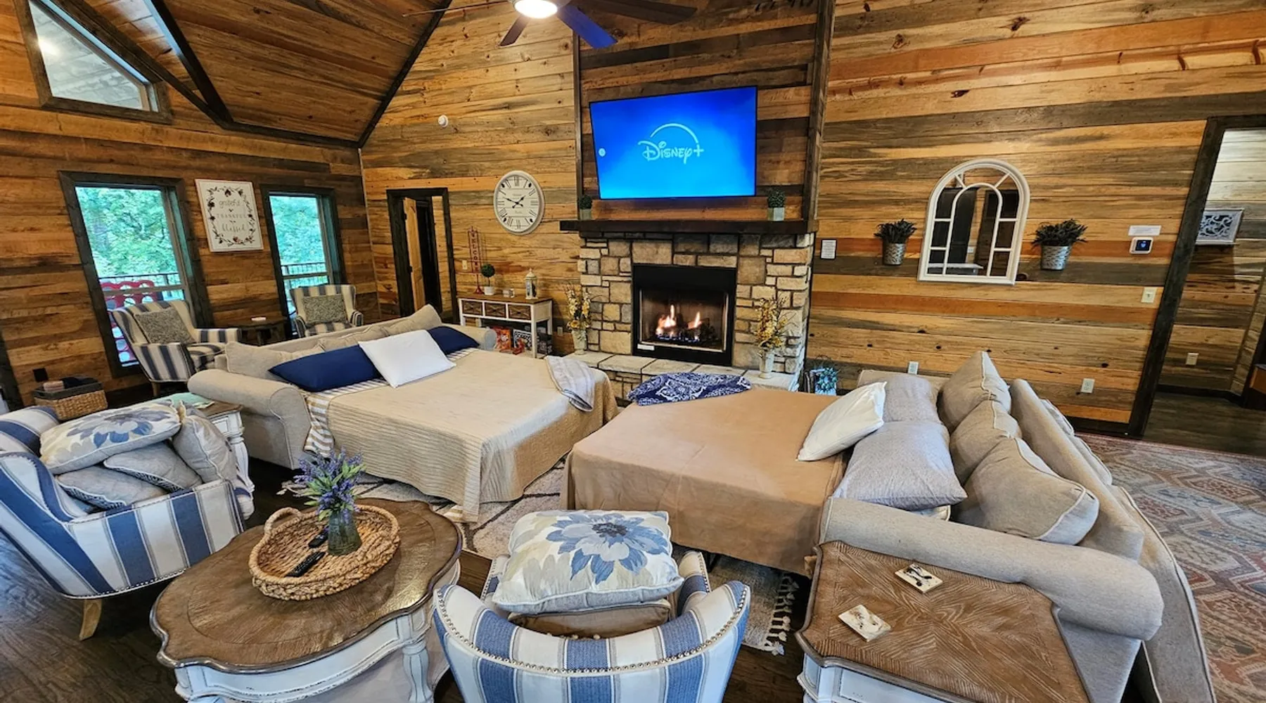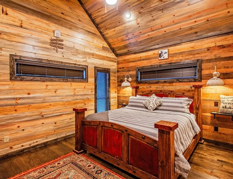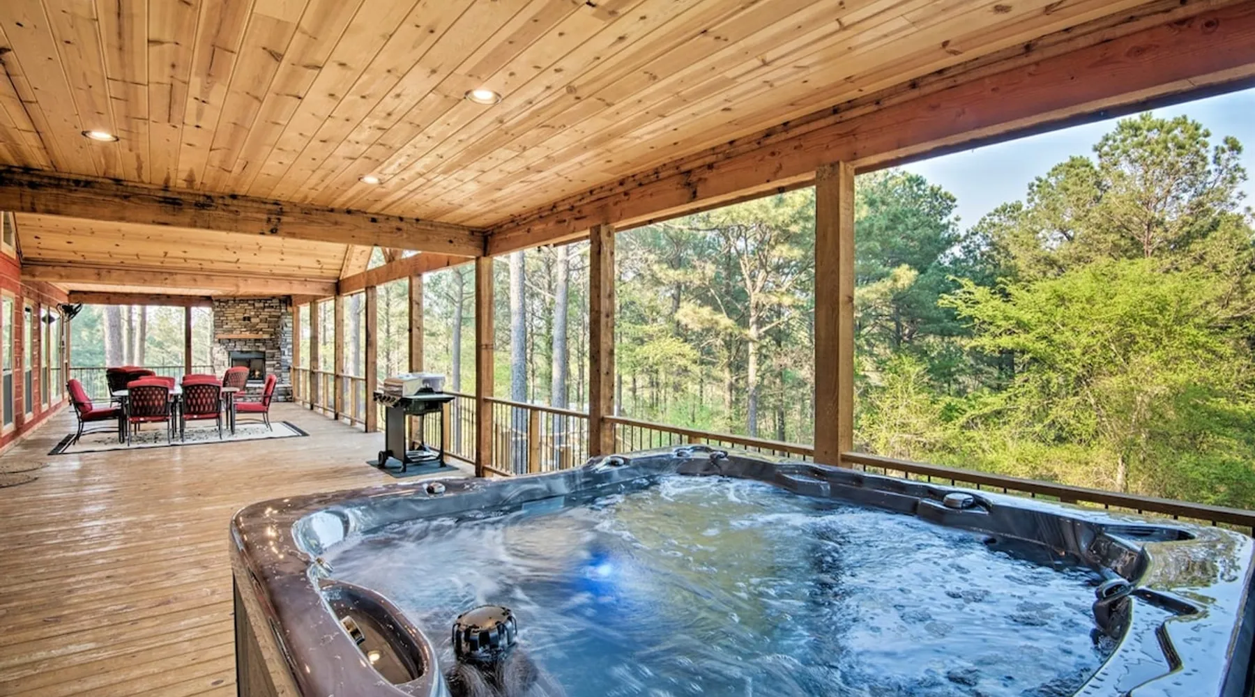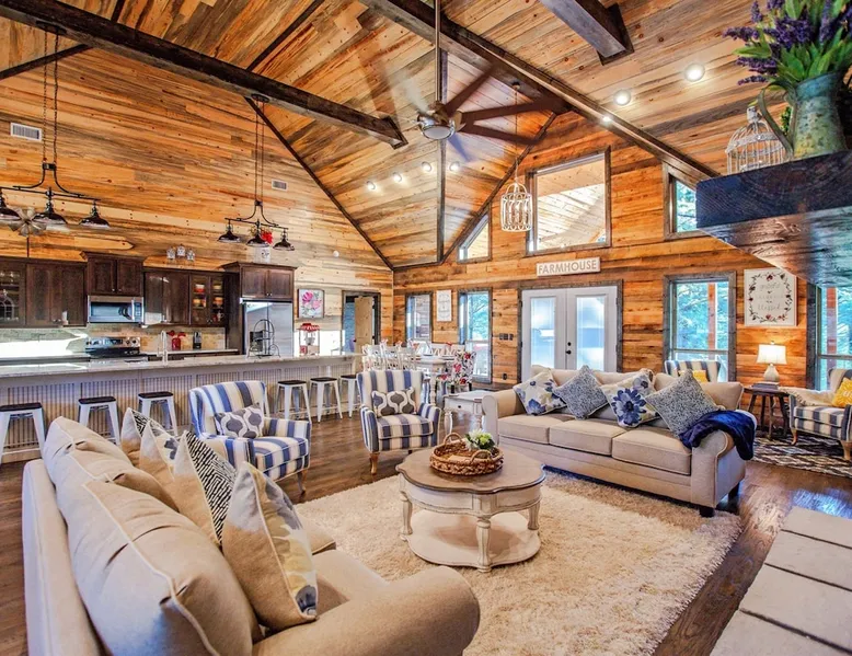 Embark on incredible outdoor adventures when you book this 4-bedroom, 4-bath vacation rental next to Beavers Bend State Park! Perfect for families and large groups of friends, this spectacular cabin offers a fully equipped kitchen, a cozy interior with a shuffleboard table, and a covered deck with a fireplace and gas grill. Relax in the fresh air while gathered around the firepit or soak in the forest views from your private hot tub! The space Welcome to your perfect getaway! This spacious 4-bedroom, 4-bathroom home comfortably sleeps up to 12 guests, making it ideal for family vacations or group retreats. Each bedroom has its own private ensuite for added comfort and privacy. As you walk in, you’re greeted by a large, fully-equipped kitchen featuring sleek granite countertops, perfect for cooking and gathering. The open-concept living space is designed for relaxation and entertainment, with streaming TVs in every room and on the back patio, so you can enjoy your favorite shows inside or outside. Step outside to the expansive outdoor patio, where you'll find plenty of seating to relax and enjoy the fresh air. Soak in the hot tub, gather around the fire pit, or play games with family and friends on the indoor shuffleboard. We also offer a variety of board games and card games for indoor entertainment. Located in close proximity to local restaurants and activities, you’ll have everything you need just a short drive away, including outdoor adventures, shopping, and dining options. Whether you prefer a day out exploring or unwinding in comfort, this location offers the best of both worlds. With ample parking available on the circle drive, this home offers convenience and easy access for all your guests. Book your stay today for a perfect blend of relaxation, fun, and convenience at this beautiful retreat! Covered Deck | Shuffleboard Table | Excellent Location Bedroom 1: King Bed | Bedroom 2: King Bed | Bedroom 3: King Bed | Bedroom 4: King Bed | Living Room: 2 Sleeper Sofas | Additional Sleeping: Pack ‘n Play OUTDOOR LIVING: Private hot tub, front & rear covered deck, dining table, gas grill, fireplace, fire pit w/ 10 Adirondack chairs, patio swing, gas grill INDOOR LIVING: 5 50-inch Samsung Smart TVs w/Roku, indoor gas fireplace, 12-person breakfast bar, board games, 4 en-suite luxury bathrooms KITCHEN: Cooking basics, stove/oven, refrigerator, microwave, dishware & flatware, dishwasher, coffee maker, GENERAL: Free WiFi, linens/towels, central A/C & heating, in-unit laundry machines, hair dryer, hangers, iron/board, complimentary toiletries FAQ: Pet fee (paid pre-trip), stairs required to access PARKING: Driveway (4 vehicles), RV/trailer parking allowed on-site Other things to note - No smoking - Dog friendly (2 Medium Dogs Max up to 50lbs each) - No events, parties or large gatherings - Must be at least 25 years old to book - Additional fees and taxes may apply - Photo ID may be required upon check-in - NOTE: The property requires stairs to access Have any questions or need more details? Feel free to send me a message — I'm happy to help and ensure you have the best stay possible! Guest access You'll receive a private door code for keyless entry — no need to meet anyone in person. Enjoy the freedom of self check-in and to come and go at your convenience. You'll have full access to the entire property and available amenities during your stay. Other things to note Enhance your stay with one of our curated add-ons (Subject to Availability): • 🍫 S’mores Kits – Everything you need for fireside treats • 🪵 Firewood Bundles – Ready-to-use bundles for the outdoor firepit • 💐🎁 Flowers, Candy & Gift Packages – Perfect for romantic gestures, birthdays, or surprise celebrations Important Booking Info • 📄 A rental agreement must be signed electronically after booking • 🪪 A government-issued photo ID is required to confirm your reservation • 💳 A refundable security deposit will be held during your stay, just in case Security For your peace of mind, one exterior security camera is located at the front entry, facing out, monitoring only the driveway and entryway — never inside or in private outdoor areas. Gas log fireplaces are seasonal October through April.