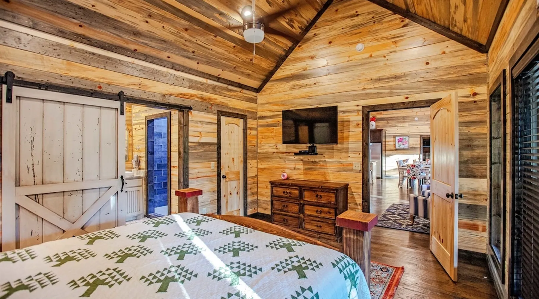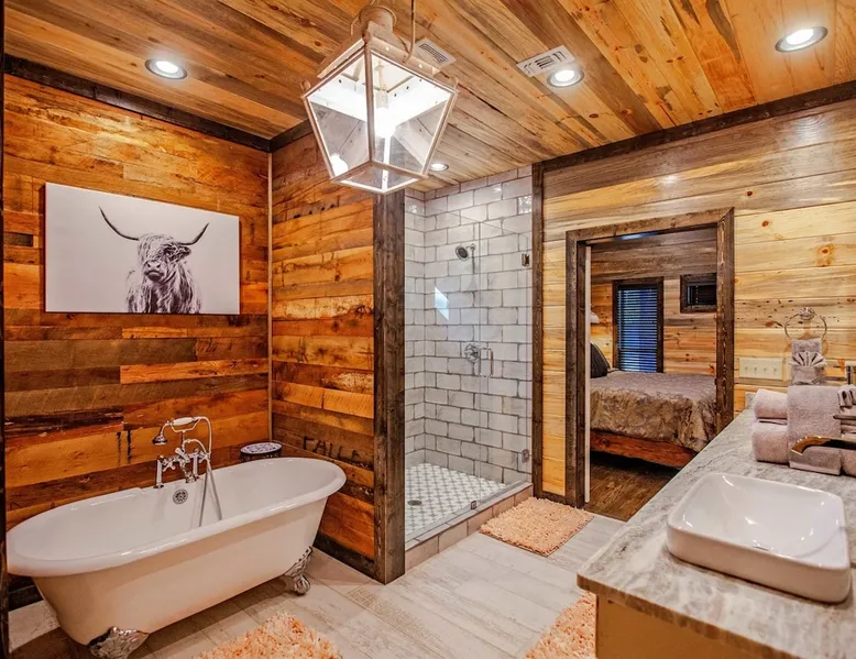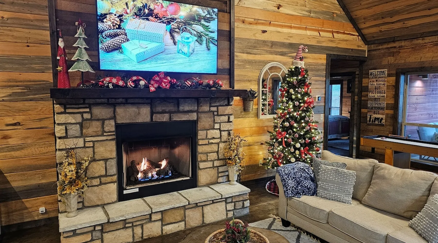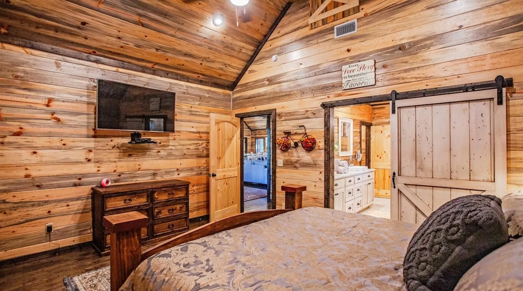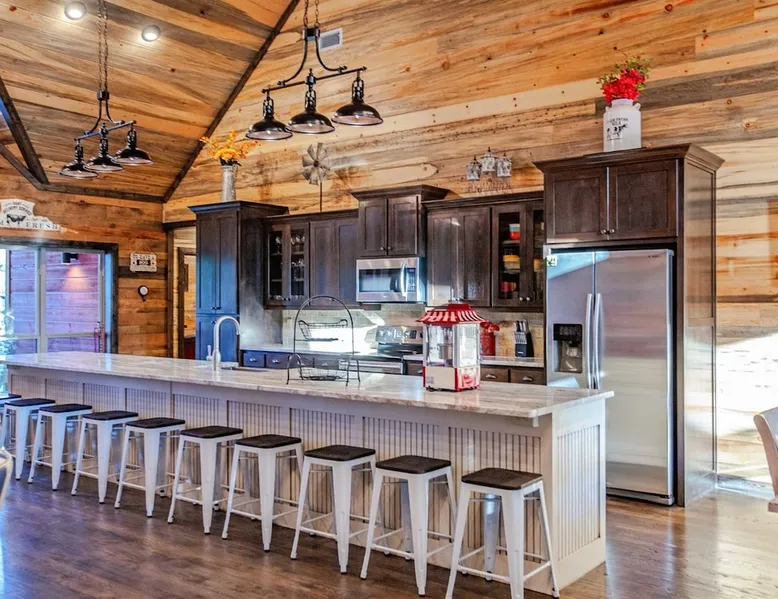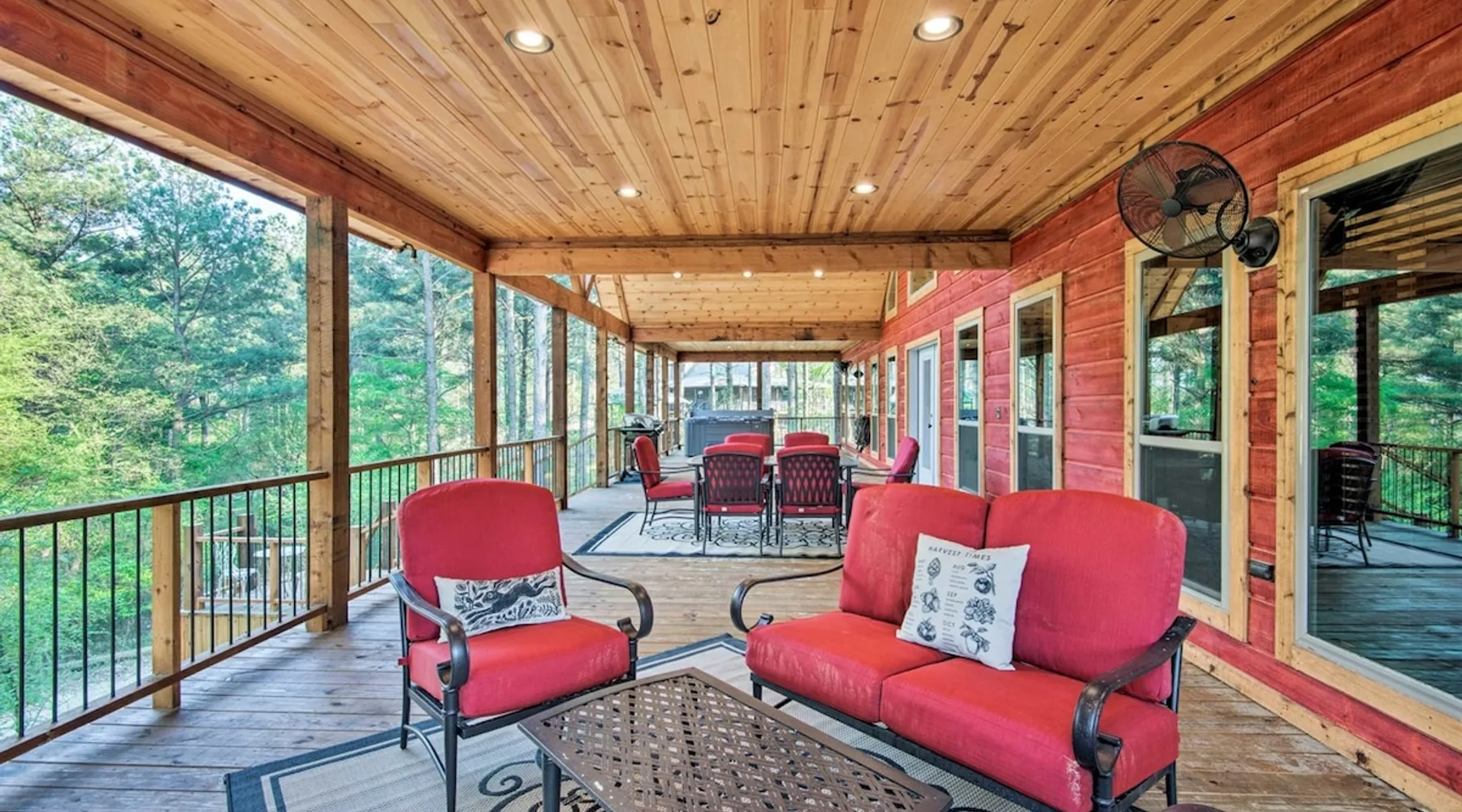 Embark on incredible outdoor adventures when you book this 4-bedroom, 4-bath vacation rental next to Beavers Bend State Park! Perfect for families and large groups of friends, this spectacular cabin offers a fully equipped kitchen, a cozy interior with a shuffleboard table, and a covered deck with a fireplace and gas grill. Relax in the fresh air while gathered around the firepit or soak in the forest views from your private hot tub! The space Welcome to your perfect getaway! This spacious 4-bedroom, 4-bathroom home comfortably sleeps up to 12 guests, making it ideal for family vacations or group retreats. Each bedroom has its own private ensuite for added comfort and privacy. As you walk in, you’re greeted by a large, fully-equipped kitchen featuring sleek granite countertops, perfect for cooking and gathering. The open-concept living space is designed for relaxation and entertainment, with streaming TVs in every room and on the back patio, so you can enjoy your favorite shows inside or outside. Step outside to the expansive outdoor patio, where you'll find plenty of seating to relax and enjoy the fresh air. Soak in the hot tub, gather around the fire pit, or play games with family and friends on the indoor shuffleboard. We also offer a variety of board games and card games for indoor entertainment. Located in close proximity to local restaurants and activities, you’ll have everything you need just a short drive away, including outdoor adventures, shopping, and dining options. Whether you prefer a day out exploring or unwinding in comfort, this location offers the best of both worlds. With ample parking available on the circle drive, this home offers convenience and easy access for all your guests. Book your stay today for a perfect blend of relaxation, fun, and convenience at this beautiful retreat! Covered Deck | Shuffleboard Table | Excellent Location Bedroom 1: King Bed | Bedroom 2: King Bed | Bedroom 3: King Bed | Bedroom 4: King Bed | Living Room: 2 Sleeper Sofas | Additional Sleeping: Pack ‘n Play OUTDOOR LIVING: Private hot tub, front & rear covered deck, dining table, gas grill, fireplace, fire pit w/ 10 Adirondack chairs, patio swing, gas grill INDOOR LIVING: 5 50-inch Samsung Smart TVs w/Roku, indoor gas fireplace, 12-person breakfast bar, board games, 4 en-suite luxury bathrooms KITCHEN: Cooking basics, stove/oven, refrigerator, microwave, dishware & flatware, dishwasher, coffee maker, GENERAL: Free WiFi, linens/towels, central A/C & heating, in-unit laundry machines, hair dryer, hangers, iron/board, complimentary toiletries FAQ: Pet fee (paid pre-trip), stairs required to access PARKING: Driveway (4 vehicles), RV/trailer parking allowed on-site Other things to note - No smoking - Dog friendly (2 Medium Dogs Max up to 50lbs each) - No events, parties or large gatherings - Must be at least 25 years old to book - Additional fees and taxes may apply - Photo ID may be required upon check-in - NOTE: The property requires stairs to access Have any questions or need more details? Feel free to send me a message — I'm happy to help and ensure you have the best stay possible! Guest access You'll receive a private door code for keyless entry — no need to meet anyone in person. Enjoy the freedom of self check-in and to come and go at your convenience. You'll have full access to the entire property and available amenities during your stay. Other things to note Enhance your stay with one of our curated add-ons (Subject to Availability): • 🍫 S’mores Kits – Everything you need for fireside treats • 🪵 Firewood Bundles – Ready-to-use bundles for the outdoor firepit • 💐🎁 Flowers, Candy & Gift Packages – Perfect for romantic gestures, birthdays, or surprise celebrations Important Booking Info • 📄 A rental agreement must be signed electronically after booking • 🪪 A government-issued photo ID is required to confirm your reservation • 💳 A refundable security deposit will be held during your stay, just in case Security For your peace of mind, one exterior security camera is located at the front entry, facing out, monitoring only the driveway and entryway — never inside or in private outdoor areas. Gas log fireplaces are seasonal October through April.