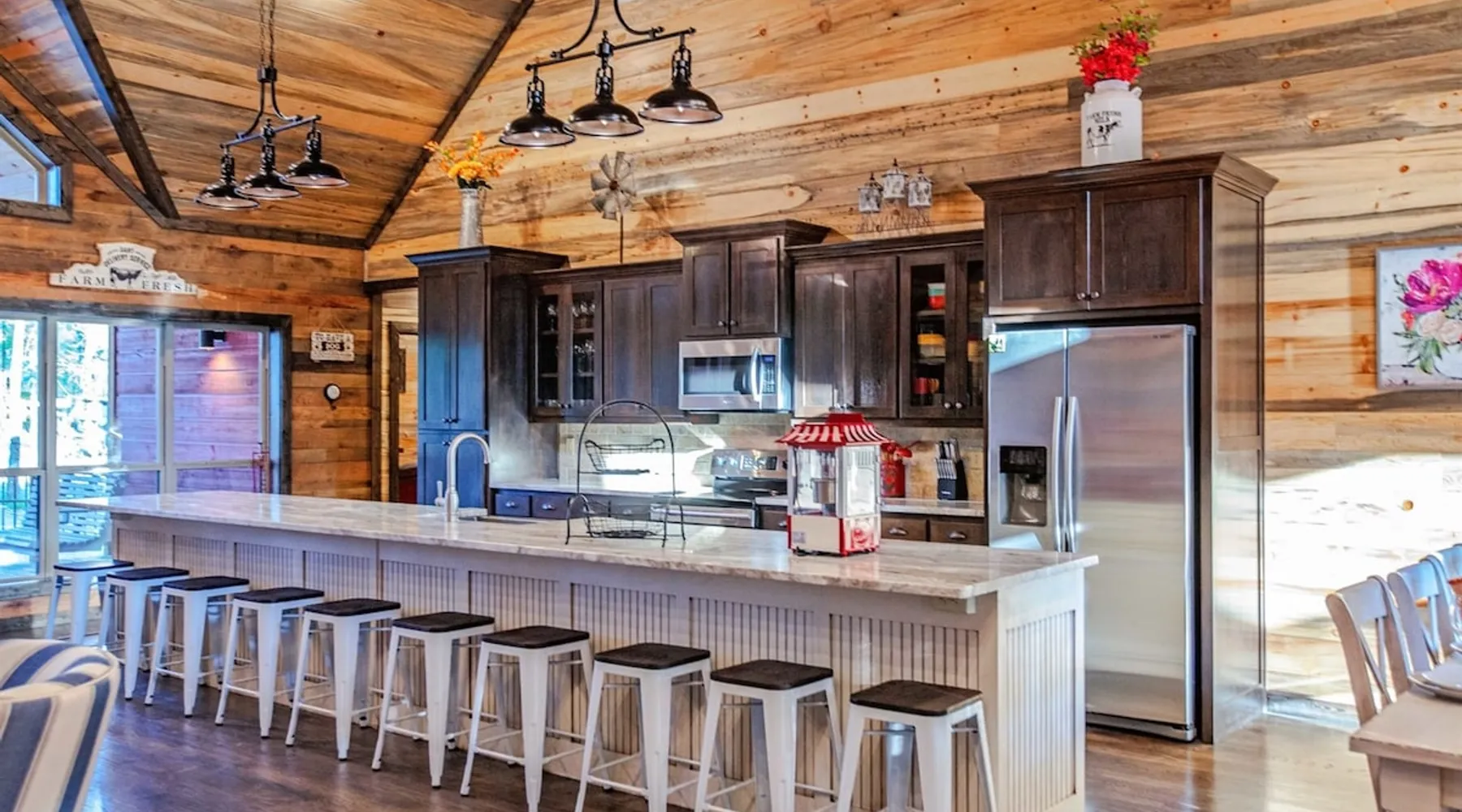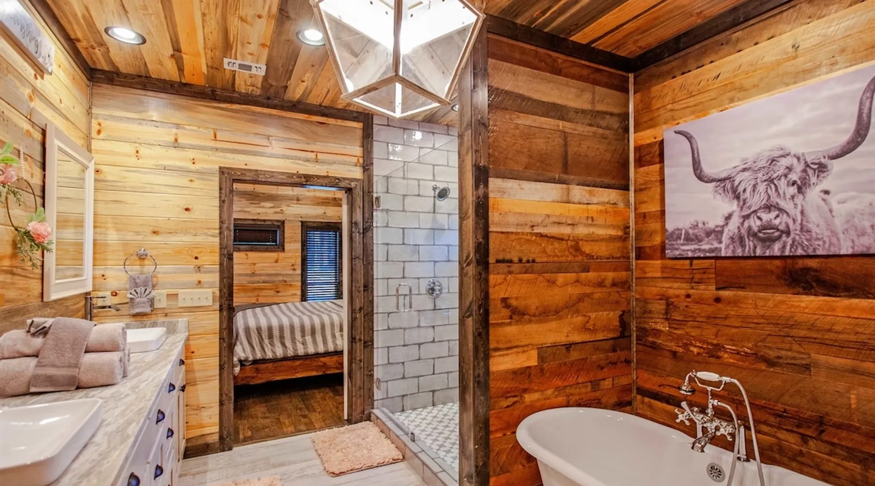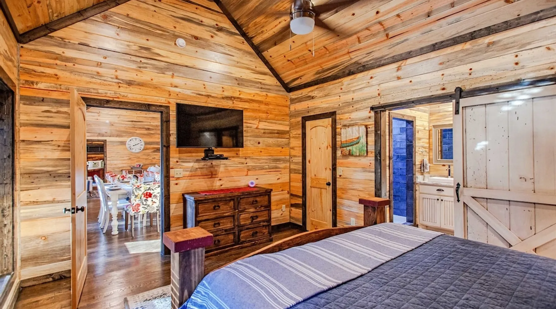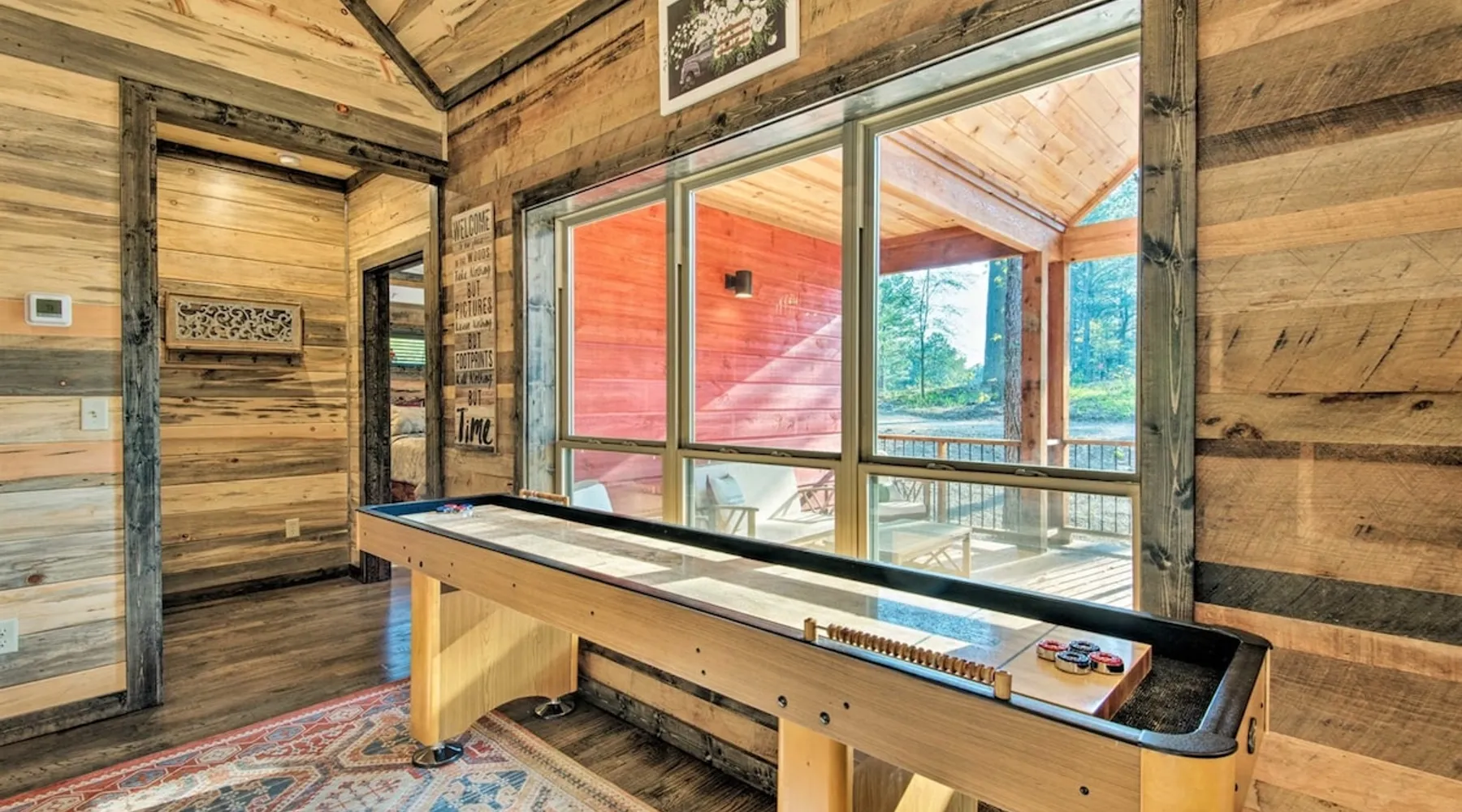 Embark on incredible outdoor adventures when you book this 4-bedroom, 4-bath vacation rental next to Beavers Bend State Park! Perfect for families and large groups of friends, this spectacular cabin offers a fully equipped kitchen, a cozy interior with a shuffleboard table, and a covered deck with a fireplace and gas grill. Relax in the fresh air while gathered around the firepit or soak in the forest views from your private hot tub! The space Welcome to your perfect getaway! This spacious 4-bedroom, 4-bathroom home comfortably sleeps up to 12 guests, making it ideal for family vacations or group retreats. Each bedroom has its own private ensuite for added comfort and privacy. As you walk in, you’re greeted by a large, fully-equipped kitchen featuring sleek granite countertops, perfect for cooking and gathering. The open-concept living space is designed for relaxation and entertainment, with streaming TVs in every room and on the back patio, so you can enjoy your favorite shows inside or outside. Step outside to the expansive outdoor patio, where you'll find plenty of seating to relax and enjoy the fresh air. Soak in the hot tub, gather around the fire pit, or play games with family and friends on the indoor shuffleboard. We also offer a variety of board games and card games for indoor entertainment. Located in close proximity to local restaurants and activities, you’ll have everything you need just a short drive away, including outdoor adventures, shopping, and dining options. Whether you prefer a day out exploring or unwinding in comfort, this location offers the best of both worlds. With ample parking available on the circle drive, this home offers convenience and easy access for all your guests. Book your stay today for a perfect blend of relaxation, fun, and convenience at this beautiful retreat! Covered Deck | Shuffleboard Table | Excellent Location Bedroom 1: King Bed | Bedroom 2: King Bed | Bedroom 3: King Bed | Bedroom 4: King Bed | Living Room: 2 Sleeper Sofas | Additional Sleeping: Pack ‘n Play OUTDOOR LIVING: Private hot tub, front & rear covered deck, dining table, gas grill, fireplace, fire pit w/ 10 Adirondack chairs, patio swing, gas grill INDOOR LIVING: 5 50-inch Samsung Smart TVs w/Roku, indoor gas fireplace, 12-person breakfast bar, board games, 4 en-suite luxury bathrooms KITCHEN: Cooking basics, stove/oven, refrigerator, microwave, dishware & flatware, dishwasher, coffee maker, GENERAL: Free WiFi, linens/towels, central A/C & heating, in-unit laundry machines, hair dryer, hangers, iron/board, complimentary toiletries FAQ: Pet fee (paid pre-trip), stairs required to access PARKING: Driveway (4 vehicles), RV/trailer parking allowed on-site Other things to note - No smoking - Dog friendly (2 Medium Dogs Max up to 50lbs each) - No events, parties or large gatherings - Must be at least 25 years old to book - Additional fees and taxes may apply - Photo ID may be required upon check-in - NOTE: The property requires stairs to access Have any questions or need more details? Feel free to send me a message — I'm happy to help and ensure you have the best stay possible! Guest access You'll receive a private door code for keyless entry — no need to meet anyone in person. Enjoy the freedom of self check-in and to come and go at your convenience. You'll have full access to the entire property and available amenities during your stay. Other things to note Enhance your stay with one of our curated add-ons (Subject to Availability): • 🍫 S’mores Kits – Everything you need for fireside treats • 🪵 Firewood Bundles – Ready-to-use bundles for the outdoor firepit • 💐🎁 Flowers, Candy & Gift Packages – Perfect for romantic gestures, birthdays, or surprise celebrations Important Booking Info • 📄 A rental agreement must be signed electronically after booking • 🪪 A government-issued photo ID is required to confirm your reservation • 💳 A refundable security deposit will be held during your stay, just in case Security For your peace of mind, one exterior security camera is located at the front entry, facing out, monitoring only the driveway and entryway — never inside or in private outdoor areas. Gas log fireplaces are seasonal October through April.