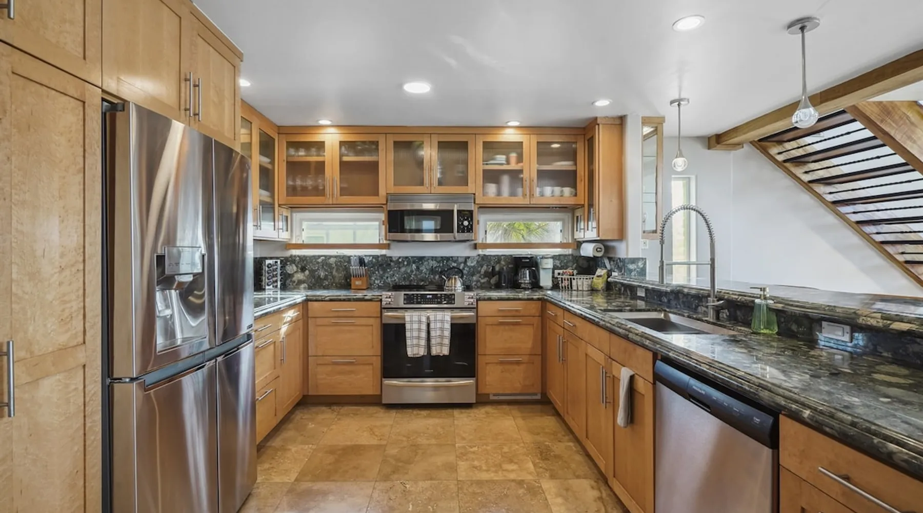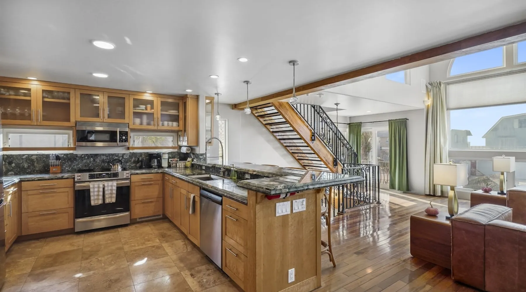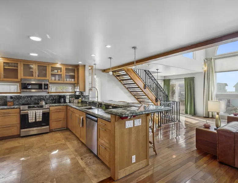 If you’ve stayed with us before — welcome back! And if you’re new here, I think you’re going to fall in love with this Luxury Gem. The Mediterranean Beach Vacation Rental in Silver Strand is one of those places that just feels good. Steps from the sand, full of light, with a rooftop deck that’s made for sunsets and stories. It’s the kind of home you return to, year after year. Come with the people you love, your dog too — and let’s make some memories. The space This isn’t a generic vacation rental — it’s a home you’ll remember. You’ll wake up to the sound of waves, sip coffee on one of the balconies, and wind down under the stars on the rooftop deck. It’s bright, open, and designed for being together — with just enough space to sneak off for a solo nap or a good book. ✔ 10 second walk to the beach — yes, we’ve timed it ✔ Ocean views from multiple rooms ✔ Rooftop deck for sunset dinners or quiet wine nights ✔ Fully stocked kitchen with all the basics and a few bonuses ✔ Pet-friendly - fenced patio, nominal fee ✔ Easy 4-car Parking - Garage and 3 on-property spaces ✔ Beach chairs, boogie boards, towels, umbrella, wagon — it’s all here ✔ 5 minute drive to Channel Islands Harbor — dining, boat tours, paddleboard rentals, whale watching ✔ Day trips to Ventura Harbor, Malibu, Santa Barbara BEDROOM AND BATHROOMS Primary Suite: King bed • Private balcony • Ensuite bath with soaking tub + walk-in shower Bedroom 2: Queen bed • Shared bathroom access Bedroom 3: Queen + two twins • Shared bathroom access Bedroom 4: King bed • Ground floor access Bedroom 5: Sleeper Sofa + Ground floor with privacy door. 3.5 baths total — we’ve stocked them with fluffy towels, shampoo, conditioner, and body wash so you don’t have to pack it all KITCHEN AND DINING Whether you’re cooking a full dinner or just reheating something delicious from The Jetty, the kitchen’s got you covered. ✔ Stainless steel appliances + induction range ✔ Keurig coffee maker with pods ✔ Spice rack, olive oil, balsamic vinegar ✔ Dining table for 8 + extra seating at the bar LIVING ROOM Vaulted ceilings, soft natural light, and comfy leather sofas. This is where everyone ends up at the end of the day — talking, snacking, watching a movie, or playing cards. ✔ Smart TV with streaming ✔ Juliette balconies with ocean views ✔ Gas fireplace for cozy evenings OUTDOOR SPACE Every level has its moment — and every one of them was made to enjoy. ✔ Rooftop Deck: Lounge seating, ocean views, perfect for golden hour ✔ Fenced Front Patio: Grill, fire pit, and comfy seating for your morning coffee or a cocktail wind-down ✔ Balcony off Primary Suite: The best place for early mornings and journal moments BRINGING YOUR FUR BABY? We’ve got bowls, a blanket, waste bags — even a little leash you can take home. There’s no pet fee for dogs — they’re part of the family here. Guest access BOOKING PROCESS: As soon as you book you will receive a message asking you to confirm your booking and to sign our rental agreement. You will then receive your GUEST PORTAL. This ia an amazing Guide that will have your entry information, locatl restaurants and activities, events that are happening during your stay, the ability to request Early Check-in and more! Make sure you confirm your reservation and sign the rental agreement as soon as you book so you trigger this amazing vacation planner. We look forward to providing you with a 5-star vacation! PARKING: GARAGE: One car parking DRIVEWAY: 1 car in driveway alongside the house STREET: 1-2 vehicles in front of fence along Ocean, No parking on Ocean Other things to note LOVE FROM OUR FORMER GUESTS: "The was such a beautiful property and I absolutely loved being right on the beach. The hosts were responsive and quickly messaged back. Definitely recommend to anyone looking to stay by the beach and out of the city for sure." Genice J. November 2025 "Sun-Kissed Beach Mansion | Dog-friendly +Roof deck....The house fit our needs perfectly. The accommodations were perfect for celebrating my wife's Birthday and spending time on the beach with family and friends. Access to the beach was a short walk across the street and being a dog friendly house combined with a dog friendly beach is always a huge +++. The roof deck which wasn't shown in the pics when we booked was a pleasant surprise. There is a firepit and it would appear newly added Adirondack chairs on the deck which has great views and was a great place for all to hang out. The host is always quick to respond to any questions or concerns we had. We would definitely stay there again in the future. Thank You, Lisa. Dan K. Sept 2025 "The house was beautiful and immaculate. It was just as stunning as the photos. The sunsets from the roof deck were gorgeous and our hosts were incredible! They were very friendly and responsive and made sure we had everything we needed for a wonderful beach vacation! We will definitely be coming back!" Sheryl P. August 2025 "This house was amazing. The house seemed larger in person than I thought it looked in the pictures. There are great little nooks, balconies, and a roof top deck that were fun to hang out on. The house was set up with everything needed to cook meals. There were extra items in the bathroom cabinets in case you forget something. The beds were comfortable and there was a lot of space around the house to have privacy when needed since we were a large group. If you have a large group or a family reunion, this was a great location. There was easy access to the beach directly across the street. If you need a smaller beach without waves because of little kids, there is a beach about 4 blocks away that is protected by jettys (marina section) where the water is also a little warmer. If you are in to outdoor activities such as swimming, surfing, and kayaking, this is a great place to stay." Sara June, 2025 "More than we’d hope for. Absolute