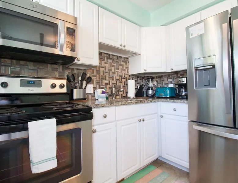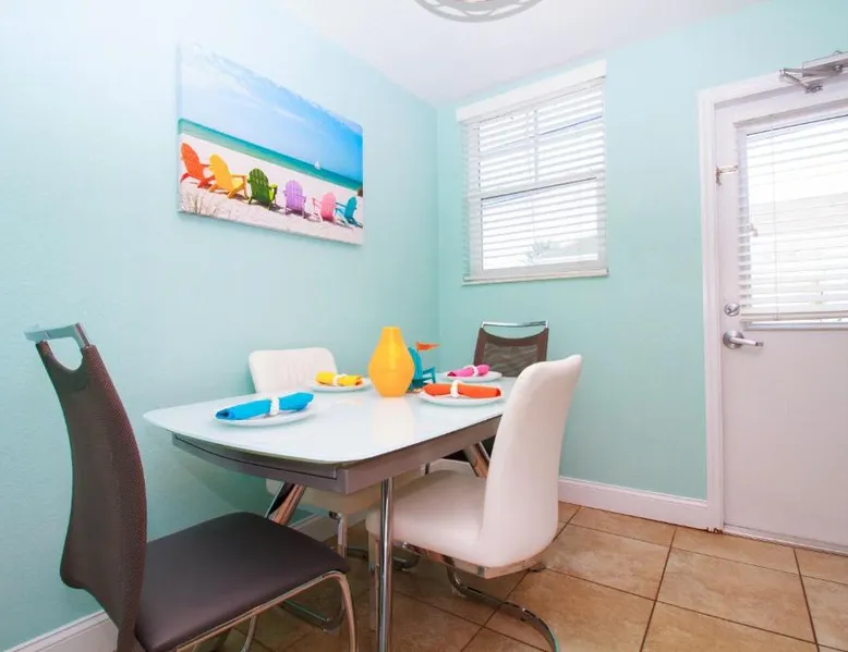 Beachfront Location: Clearwater Beach Suites #203 in Clearwater Beach offers direct beachfront access and stunning sea views. Guests can relax on the sandy shores or enjoy the year-round outdoor swimming pool. Comfortable Accommodations: The resort features air-conditioning, a fully equipped kitchen with a refrigerator, microwave, oven, stovetop, toaster, and kitchenware. Additional amenities include a dining area, TV, and free WiFi. Convenient Facilities: Free on-site parking is available, and the property is 12 mi from St. Pete-Clearwater International Airport. Nearby attractions include Clearwater Beach, Pier 60 (3.1 mi), and The Pier (23 mi). Boating opportunities enhance the surrounding area. The well-fitted kitchen has a stovetop, a refrigerator, kitchenware and an oven. The apartment has a TV, air conditioning, a tea and coffee maker, as well as a dining area. The unit has 2 beds.