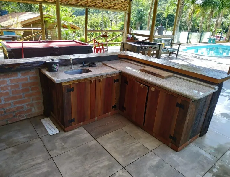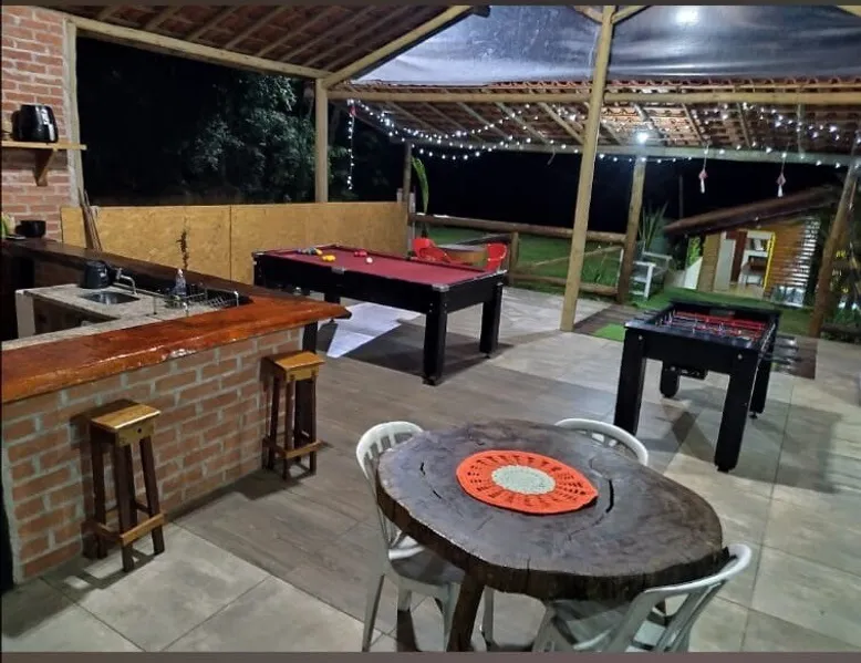Dining with the whole family in this stylish place. With accommodations for 20 people! Located in Caucaia do Alto, Cotia. We have a chalet( with a top balcony) that accommodates 10 people and a accommodation that accommodates 10 more people, both with a bathroom. Pool, countryside, playground, barbecue space with dispensation, pool table, foosball table. Peaceful family environment for you to enjoy your moment! The space A chalet with two double beds at the top and a Deck, three bicama at the bottom. A lodging with three treliche. Both with bathroom Guest access From the gate inside, the whole space ☺️ Other things to note The space will always be rented to one family at a time. It's not shared! You'll need to bring bedding!