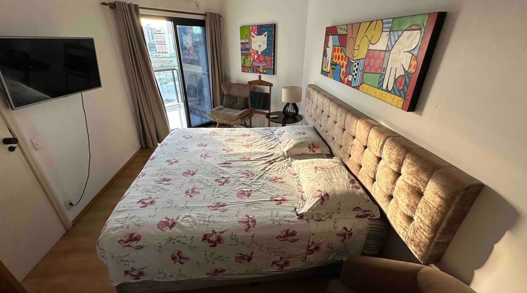 Flat Feature: .piso cold or laminated Wood .geladeira com freezer ( not minibar) Hotel standard electronic check ( record of last 60 entrances and departure ) .Smart tv in the living room and bedroom .. new split and inverter condition (very quiet) .cofre Eletronico .secador de hair .k kitchen equipped ( essential) Internet router at flat Parking, Laundry, Swimming Pool, Room Service, Gym, Apartment with kitchen, bedroom, living room and balcony The space The flat is available for full enjoyment of all the area and equipment within it. Here's the fix: The apartment is available for full use of the entire area and equipment within it. *In the kitchen area, unfortunately, the oven is very close to the wall (45°), which is positioned in a way that makes it difficult to open it fully. Therefore, for those who like to bring platters with a lot of sauce or liquids, it ends up being difficult because it spills easily. Guest access Guests are not allowed to visit inside the flat, only at the looby in front of the reception . Only guests have free access to the pool, sauna and gym and visits are not allowed !!!! Pets are not allowed in the flat and also in the condominium Other things to note 01 king size bedding kit or 2x single bedding kits available during the period of stay, with change every 7 days. If you need extra bedding, it costs 45.00 per week, to be paid directly at the reception. Note: If you need 2 single beds, this must be requested in advance at the time of booking. Well-located flat with a bench in front, a 5-minute walk to Vale Shopping Center, CTA cloverleaf interchange, Habibs. Dry and wet sauna, swimming pool and fitness center Elevator and panoramic front view. 24-hour CONVENIENCE STORE in the building's lobby DAILY HOUSEKEEPING We have daily housekeeping in the apartment, and the guest cannot be in the apartment during housekeeping, as per the condominium's rules.