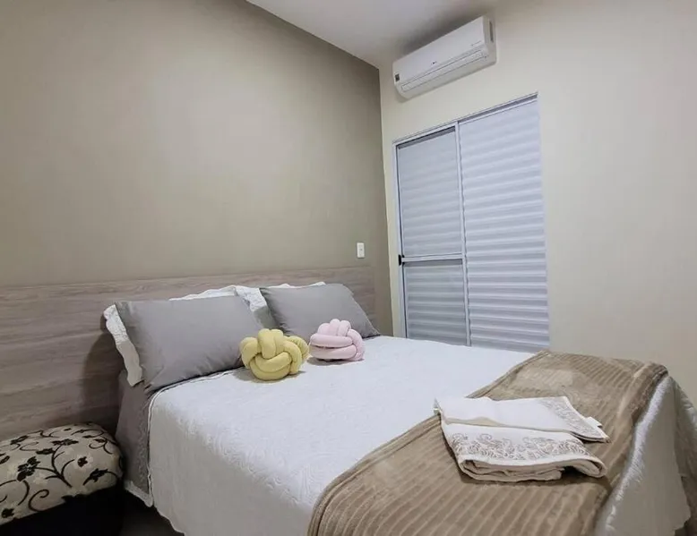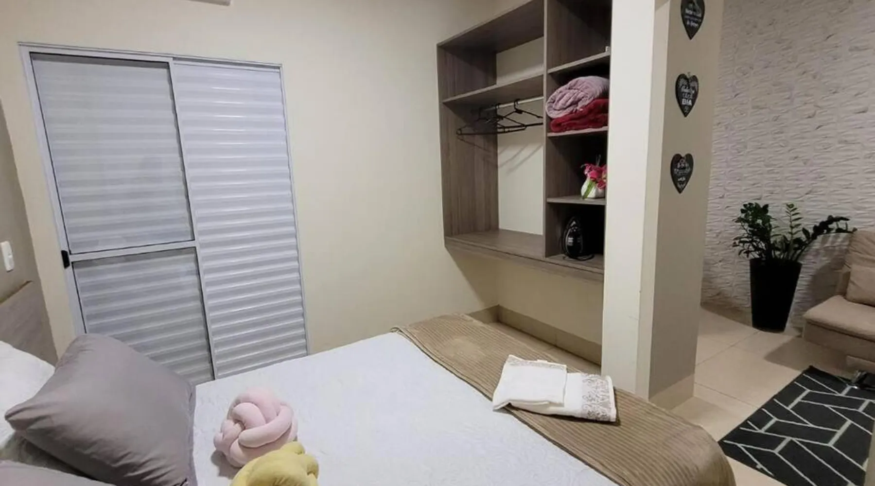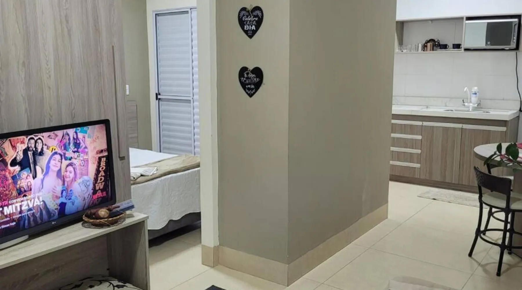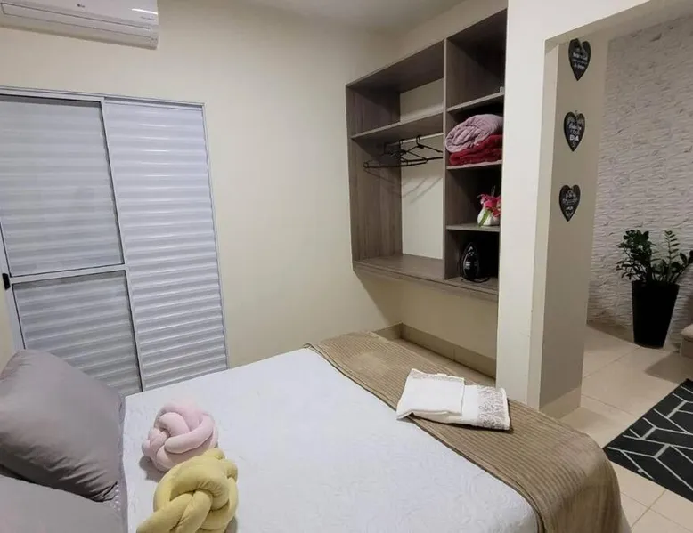 Comfortable Accommodations: Flat Morada da Neblina! in Chapada dos Guimarães offers a one-bedroom apartment with a living room. The property features family rooms, a dining area, and a sofa bed. Modern Amenities: Guests enjoy free WiFi, air-conditioning, and streaming services. The apartment includes a fully equipped kitchen with a refrigerator, microwave, stovetop, and toaster. Additional amenities include bathrobes, free toiletries, and a washing machine. Convenient Facilities: The apartment provides free on-site private parking, bike and car hire, and live music. Walking tours are available for exploring the area. Accessible Location: Marechal Rondon International Airport is 48 mi away. Reception staff speak English and Portuguese. Boasting a private entrance, this air-conditioned apartment comes with 1 living room, 1 separate bedroom and 1 bathroom with a shower and slippers. Meals can be prepared in the kitchen, which features a stovetop, a refrigerator, a microwave and a toaster. The apartment features a tea and coffee maker, a dining area, a wardrobe, a sofa, as well as a flat-screen TV with streaming services. The unit has 3 beds.