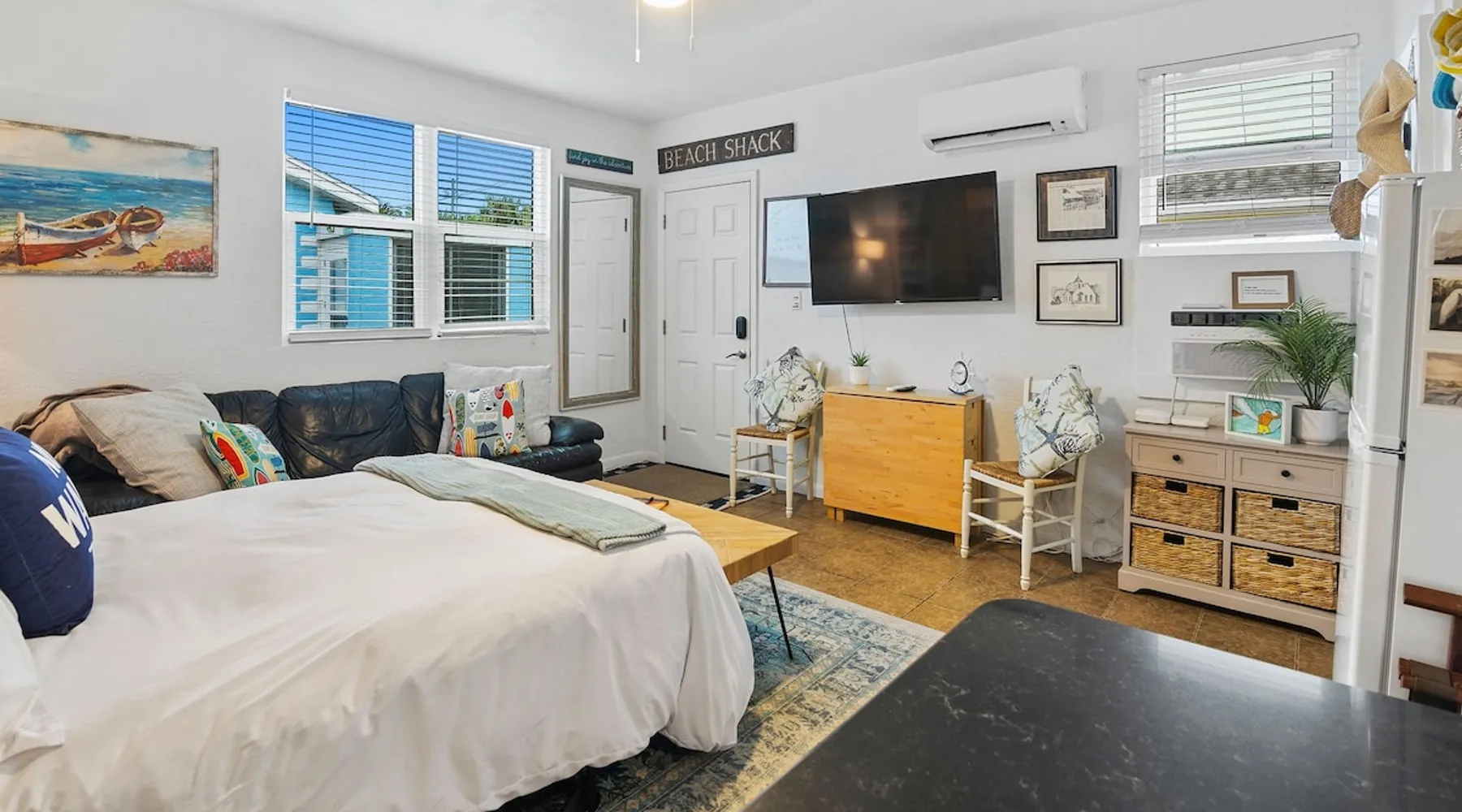 This beachside cottage is a fun tiny home waiting for you! Perfect for the traveling couple or remote worker! You can walk to the beach for sunrise and sunset, walk to the famous beach bar across the street or enjoy a book on the patio! This bungalow is just a few miles to the world famous Flagler Avenue! Restaurants and bars and sandy toes are waiting for you, just over 150 yards to the sand! I am a NSB native with generations of information! Coral Cottage NSB for local updates on the I G! The space This fun cottage has it all! The kitchen is small but mighty! It has everything you need to make your stay comfortable! The Full size bed is a Murphy bed but there is room in the unit to leave it in the "sleeping" position all day. The bathroom is fully equipped with a hot shower, sink and toilet. Guest access The entire cottage and porch are all yours! You will be sent an access code 24 hours prior to arrival. Other things to note This is a local, small community where the majority of residents are full time. Please know that if parties and late nights are what you're looking for, we may not be the best fit. Of course - we want you to experience all that NSB has, but please honor the quiet hours so the locals can sleep. 😃