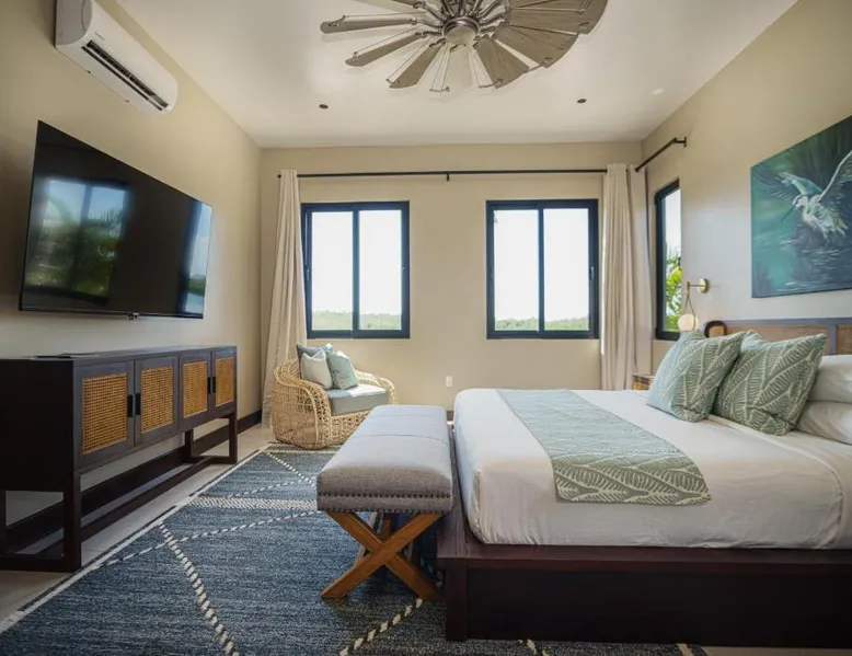 Elegant Accommodations: Prana Maya Island Resort in Placencia Village offers a 5-star experience with sea views, air-conditioning, and private balconies. Each room features a private bathroom, bathrobes, and modern amenities. Exceptional Facilities: Guests can enjoy an infinity swimming pool, spa facilities, fitness center, sun terrace, and water sports. The resort provides free WiFi, a restaurant, bar, and a variety of activities including yoga, cycling, and snorkeling. Dining Experience: The modern restaurant serves local, international, Latin American, and Caribbean cuisines with vegetarian, vegan, and gluten-free options. Breakfast includes continental, American, and à la carte selections with fresh pastries and local specialties. Prime Location: Located 2.5 mi from Placencia Airport and a few steps from Placencia Beach, the resort offers boating and nearby attractions. This villa's special feature is the pool with a view. Providing free toiletries and bathrobes, this villa includes a private bathroom with a bath, a shower and a hairdryer. Guests will find a stovetop, a refrigerator, a dishwasher and kitchenware in the kitchen. The villa also offers a barbecue. The spacious air-conditioned villa provides a flat-screen TV with streaming services, a washing machine, a private entrance, a tea and coffee maker as well as sea views. The unit offers 2 beds.