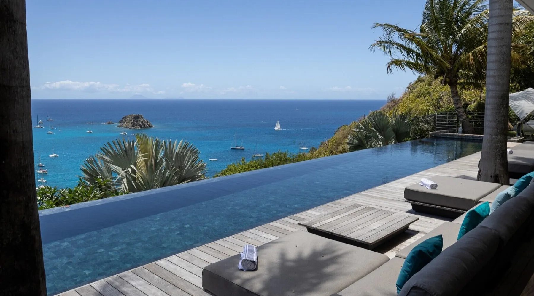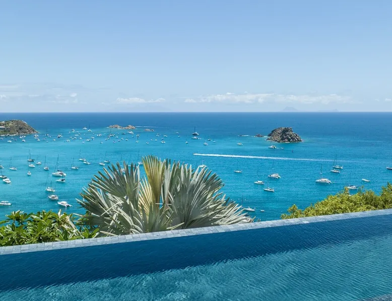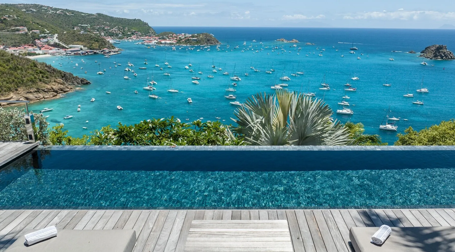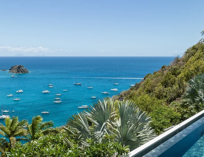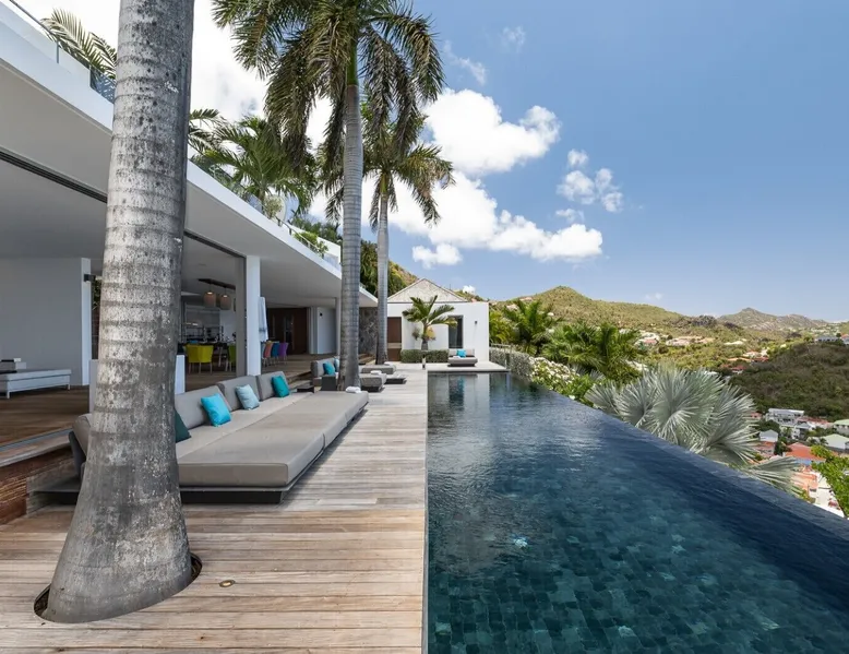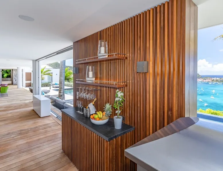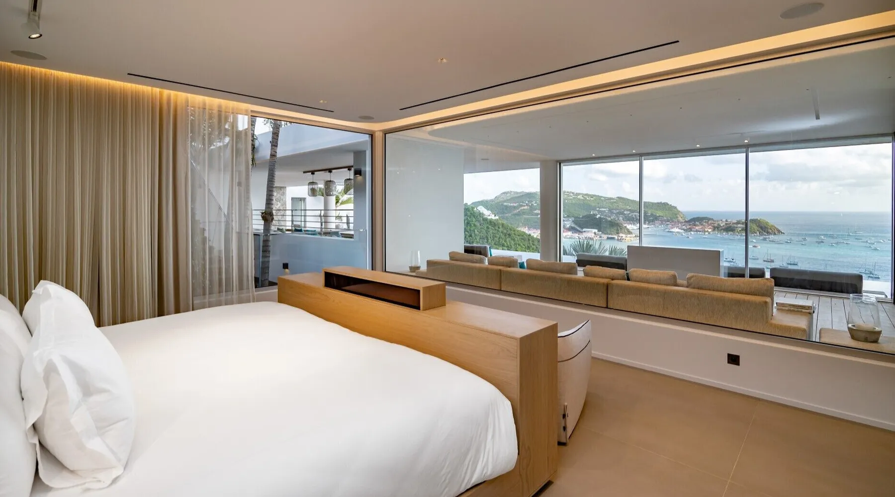 The villa UTOPIC is available for rent in 4 or 5 bedrooms. Perched high above Corossol, Villa UTOPIC is a stunning architectural masterpiece offering one of the most breathtaking panoramic views in St. Barts. Overlooking the turquoise Caribbean Sea and the bustling harbor of Gustavia, this luxury retreat is designed to blend seamlessly with its natural surroundings, providing an unparalleled indoor-outdoor living experience in a setting of absolute tranquility and sophistication. Nestled within lush tropical vegetation, the villa’s expansive terraces capture the essence of island living, where guests can witness the elegant dance of yachts and fishing boats, framed by the vibrant hues of the Caribbean sunset. With its sleek contemporary design, open spaces, and sun-drenched decks, Villa UTOPIC embodies the perfect harmony between modern comfort and natural beauty. At the heart of the villa, the 15-meter infinity pool seems to melt into the horizon, creating an illusion of floating above the sea. Surrounding the pool, a spacious teak deck features plush sunbeds and oversized cushions, inviting guests to lounge in total relaxation. An elegant outdoor dining area, complete with a massive granite table, sets the perfect scene for al fresco dining under the stars, while a shaded pergola offers a cool retreat during the day. Inside, the sophisticated living space exudes effortless luxury, with neutral tones and carefully curated pops of color enhancing the serene ambiance. Floor-to-ceiling glass doors frame the breathtaking ocean views, creating a seamless connection between interior elegance and natural splendor. A private office space allows guests to stay connected when needed, while the state-of-the-art gourmet kitchen is fully equipped for preparing exquisite meals, whether cooked personally or by a private chef for a fine dining experience. The villa’s three elegantly designed bedrooms, located upstairs and accessible via a sleek steel staircase or a private elevator, are sanctuaries of tranquility. Each suite features a king-size bed, an en-suite bathroom, a spacious dressing area, and a private terrace overlooking the infinite blue of the ocean. The rooms are individually decorated, with distinct color themes that add a personal and sophisticated touch. The third bedroom, located on the ground floor, offers a secluded space for guests seeking additional privacy. Designed with families in mind, Villa UTOPIC ensures a safe and luxurious environment for children, making it an ideal retreat for families, couples, or groups of friends. Every element of the villa has been thoughtfully curated to deliver a one-of-a-kind experience, where refined elegance meets the untouched beauty of St. Barts. Just minutes from Gustavia’s vibrant town center, Villa UTOPIC offers the perfect blend of seclusion and accessibility, allowing guests to enjoy world-class dining, designer shopping, and pristine beaches without compromising privacy. Whether seeking a romantic getaway, a family vacation, or an unforgettable escape with friends, Villa UTOPIC promises a truly immersive luxury experience, set against the backdrop of one of the most beautiful panoramic views in St. Barts. Book Villa UTOPIC with Bucket List Villa today and experience the height of luxury, elegance, and breathtaking beauty in St. Barts.