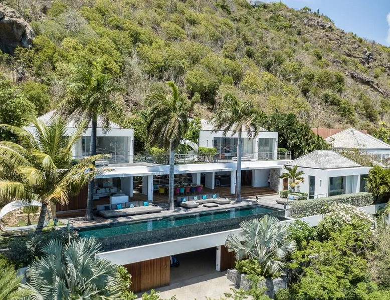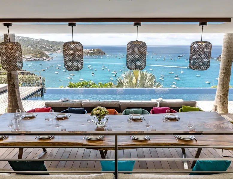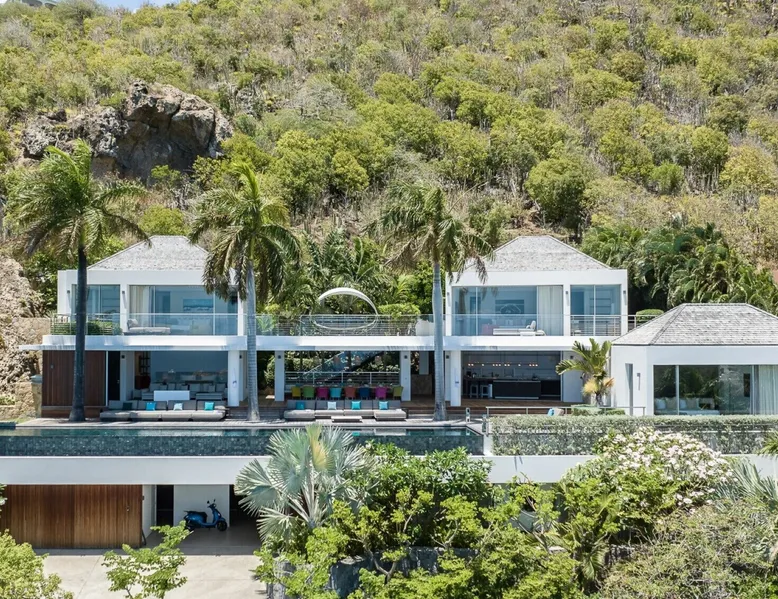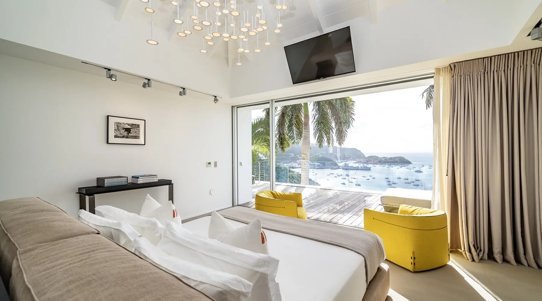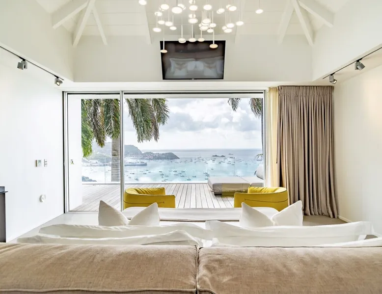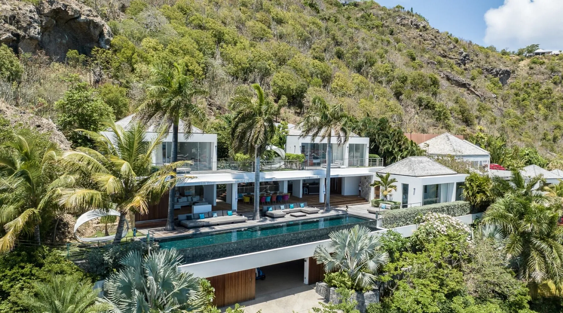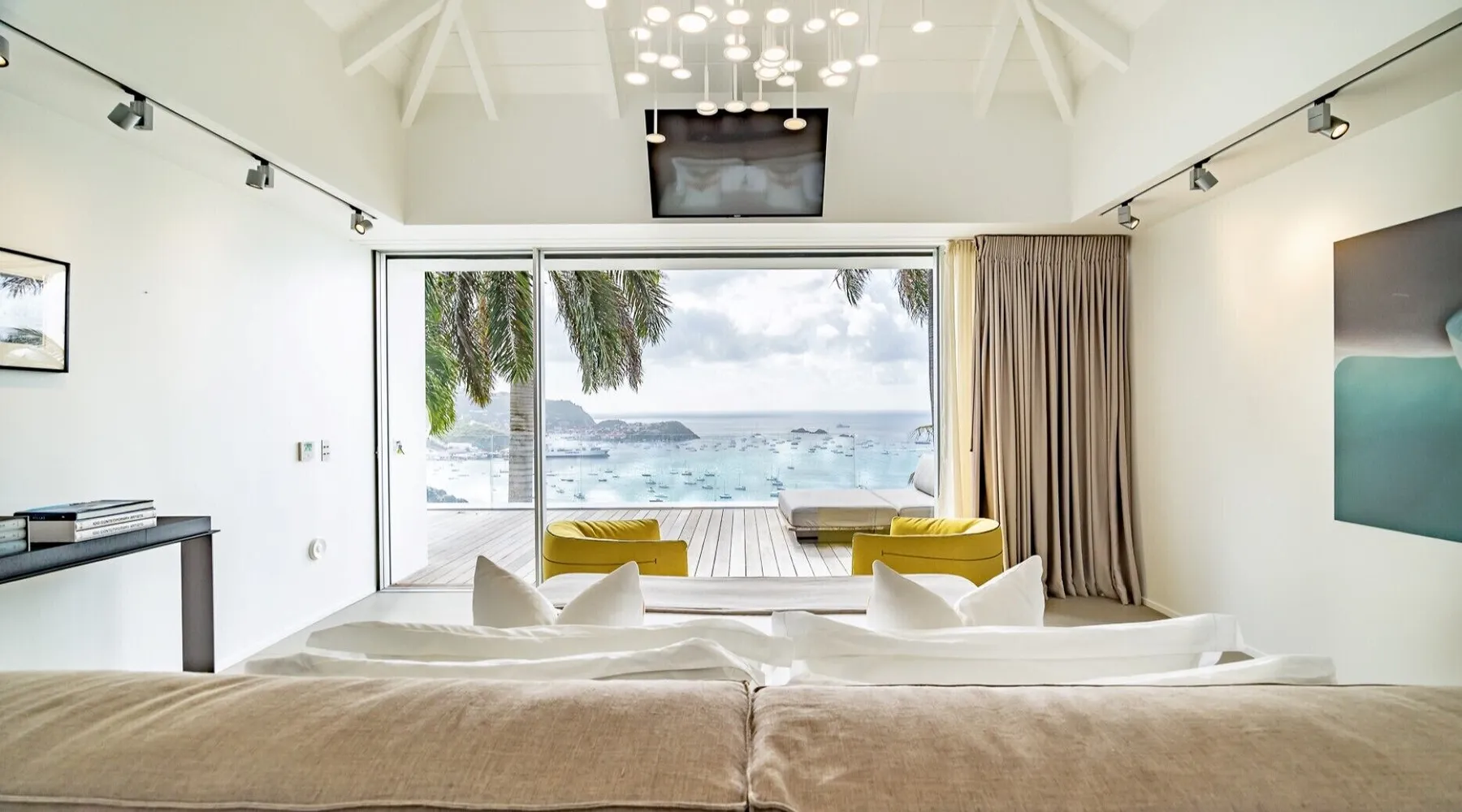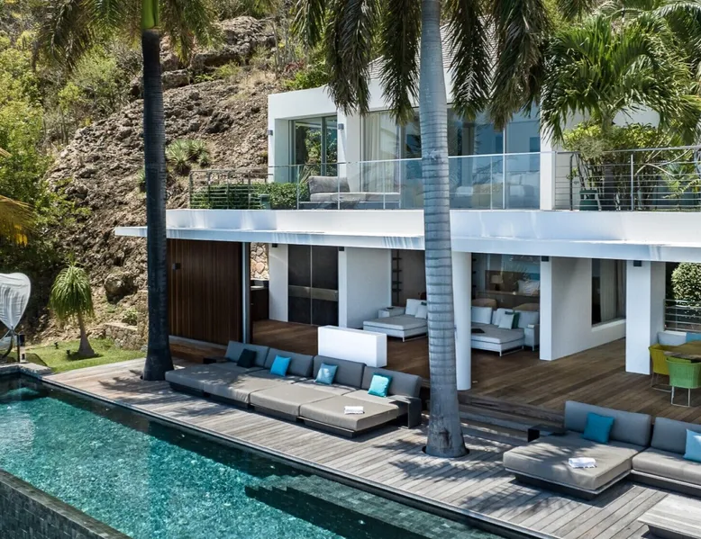 The villa UTOPIC is available for rent in 4 or 5 bedrooms. Perched high above Corossol, Villa UTOPIC is a stunning architectural masterpiece offering one of the most breathtaking panoramic views in St. Barts. Overlooking the turquoise Caribbean Sea and the bustling harbor of Gustavia, this luxury retreat is designed to blend seamlessly with its natural surroundings, providing an unparalleled indoor-outdoor living experience in a setting of absolute tranquility and sophistication. Nestled within lush tropical vegetation, the villa’s expansive terraces capture the essence of island living, where guests can witness the elegant dance of yachts and fishing boats, framed by the vibrant hues of the Caribbean sunset. With its sleek contemporary design, open spaces, and sun-drenched decks, Villa UTOPIC embodies the perfect harmony between modern comfort and natural beauty. At the heart of the villa, the 15-meter infinity pool seems to melt into the horizon, creating an illusion of floating above the sea. Surrounding the pool, a spacious teak deck features plush sunbeds and oversized cushions, inviting guests to lounge in total relaxation. An elegant outdoor dining area, complete with a massive granite table, sets the perfect scene for al fresco dining under the stars, while a shaded pergola offers a cool retreat during the day. Inside, the sophisticated living space exudes effortless luxury, with neutral tones and carefully curated pops of color enhancing the serene ambiance. Floor-to-ceiling glass doors frame the breathtaking ocean views, creating a seamless connection between interior elegance and natural splendor. A private office space allows guests to stay connected when needed, while the state-of-the-art gourmet kitchen is fully equipped for preparing exquisite meals, whether cooked personally or by a private chef for a fine dining experience. The villa’s three elegantly designed bedrooms, located upstairs and accessible via a sleek steel staircase or a private elevator, are sanctuaries of tranquility. Each suite features a king-size bed, an en-suite bathroom, a spacious dressing area, and a private terrace overlooking the infinite blue of the ocean. The rooms are individually decorated, with distinct color themes that add a personal and sophisticated touch. The third bedroom, located on the ground floor, offers a secluded space for guests seeking additional privacy. Designed with families in mind, Villa UTOPIC ensures a safe and luxurious environment for children, making it an ideal retreat for families, couples, or groups of friends. Every element of the villa has been thoughtfully curated to deliver a one-of-a-kind experience, where refined elegance meets the untouched beauty of St. Barts. Just minutes from Gustavia’s vibrant town center, Villa UTOPIC offers the perfect blend of seclusion and accessibility, allowing guests to enjoy world-class dining, designer shopping, and pristine beaches without compromising privacy. Whether seeking a romantic getaway, a family vacation, or an unforgettable escape with friends, Villa UTOPIC promises a truly immersive luxury experience, set against the backdrop of one of the most beautiful panoramic views in St. Barts. Book Villa UTOPIC with Bucket List Villa today and experience the height of luxury, elegance, and breathtaking beauty in St. Barts.