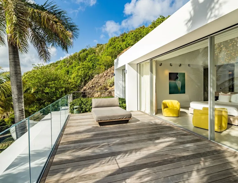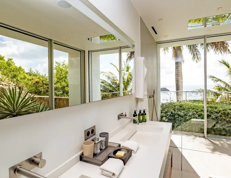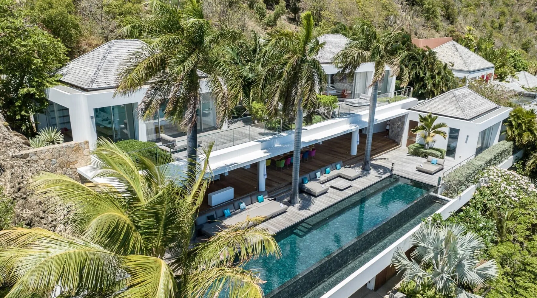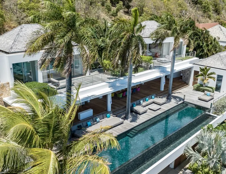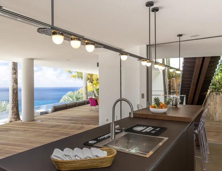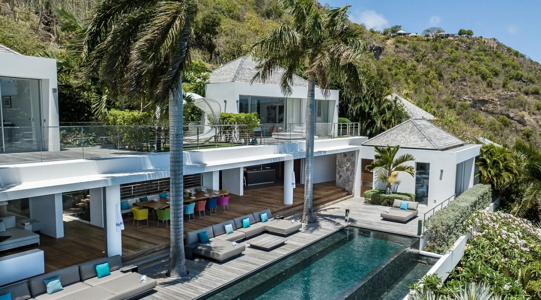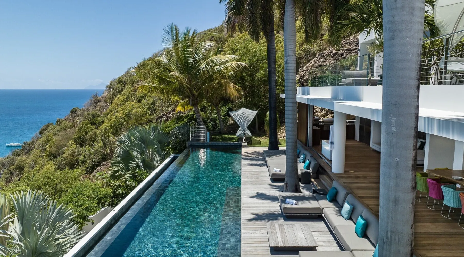 The villa UTOPIC is available for rent in 4 or 5 bedrooms. Perched high above Corossol, Villa UTOPIC is a stunning architectural masterpiece offering one of the most breathtaking panoramic views in St. Barts. Overlooking the turquoise Caribbean Sea and the bustling harbor of Gustavia, this luxury retreat is designed to blend seamlessly with its natural surroundings, providing an unparalleled indoor-outdoor living experience in a setting of absolute tranquility and sophistication. Nestled within lush tropical vegetation, the villa’s expansive terraces capture the essence of island living, where guests can witness the elegant dance of yachts and fishing boats, framed by the vibrant hues of the Caribbean sunset. With its sleek contemporary design, open spaces, and sun-drenched decks, Villa UTOPIC embodies the perfect harmony between modern comfort and natural beauty. At the heart of the villa, the 15-meter infinity pool seems to melt into the horizon, creating an illusion of floating above the sea. Surrounding the pool, a spacious teak deck features plush sunbeds and oversized cushions, inviting guests to lounge in total relaxation. An elegant outdoor dining area, complete with a massive granite table, sets the perfect scene for al fresco dining under the stars, while a shaded pergola offers a cool retreat during the day. Inside, the sophisticated living space exudes effortless luxury, with neutral tones and carefully curated pops of color enhancing the serene ambiance. Floor-to-ceiling glass doors frame the breathtaking ocean views, creating a seamless connection between interior elegance and natural splendor. A private office space allows guests to stay connected when needed, while the state-of-the-art gourmet kitchen is fully equipped for preparing exquisite meals, whether cooked personally or by a private chef for a fine dining experience. The villa’s three elegantly designed bedrooms, located upstairs and accessible via a sleek steel staircase or a private elevator, are sanctuaries of tranquility. Each suite features a king-size bed, an en-suite bathroom, a spacious dressing area, and a private terrace overlooking the infinite blue of the ocean. The rooms are individually decorated, with distinct color themes that add a personal and sophisticated touch. The third bedroom, located on the ground floor, offers a secluded space for guests seeking additional privacy. Designed with families in mind, Villa UTOPIC ensures a safe and luxurious environment for children, making it an ideal retreat for families, couples, or groups of friends. Every element of the villa has been thoughtfully curated to deliver a one-of-a-kind experience, where refined elegance meets the untouched beauty of St. Barts. Just minutes from Gustavia’s vibrant town center, Villa UTOPIC offers the perfect blend of seclusion and accessibility, allowing guests to enjoy world-class dining, designer shopping, and pristine beaches without compromising privacy. Whether seeking a romantic getaway, a family vacation, or an unforgettable escape with friends, Villa UTOPIC promises a truly immersive luxury experience, set against the backdrop of one of the most beautiful panoramic views in St. Barts. Book Villa UTOPIC with Bucket List Villa today and experience the height of luxury, elegance, and breathtaking beauty in St. Barts.