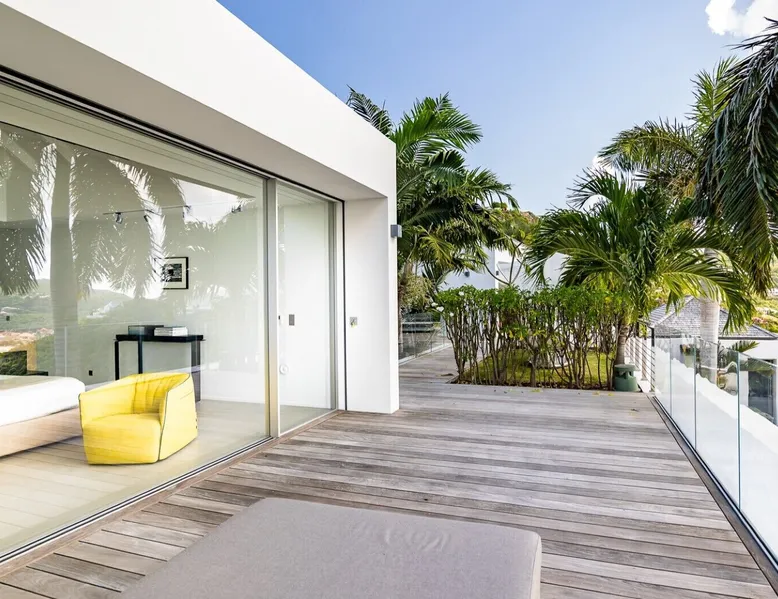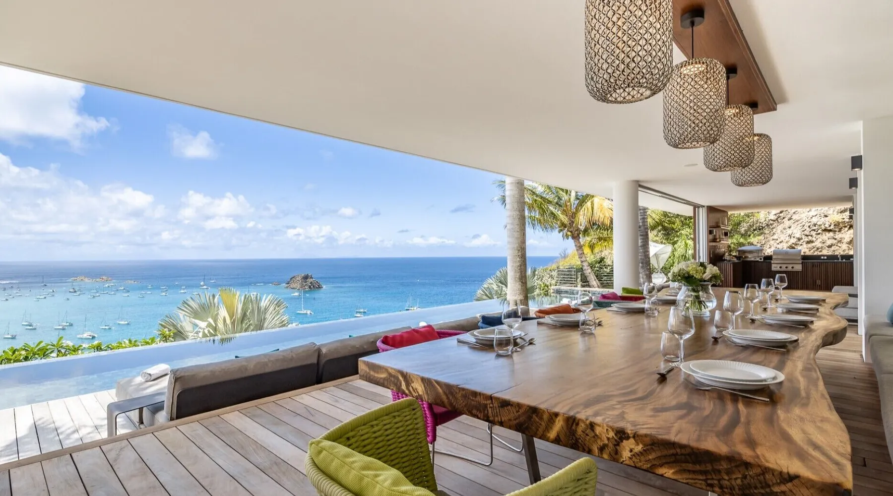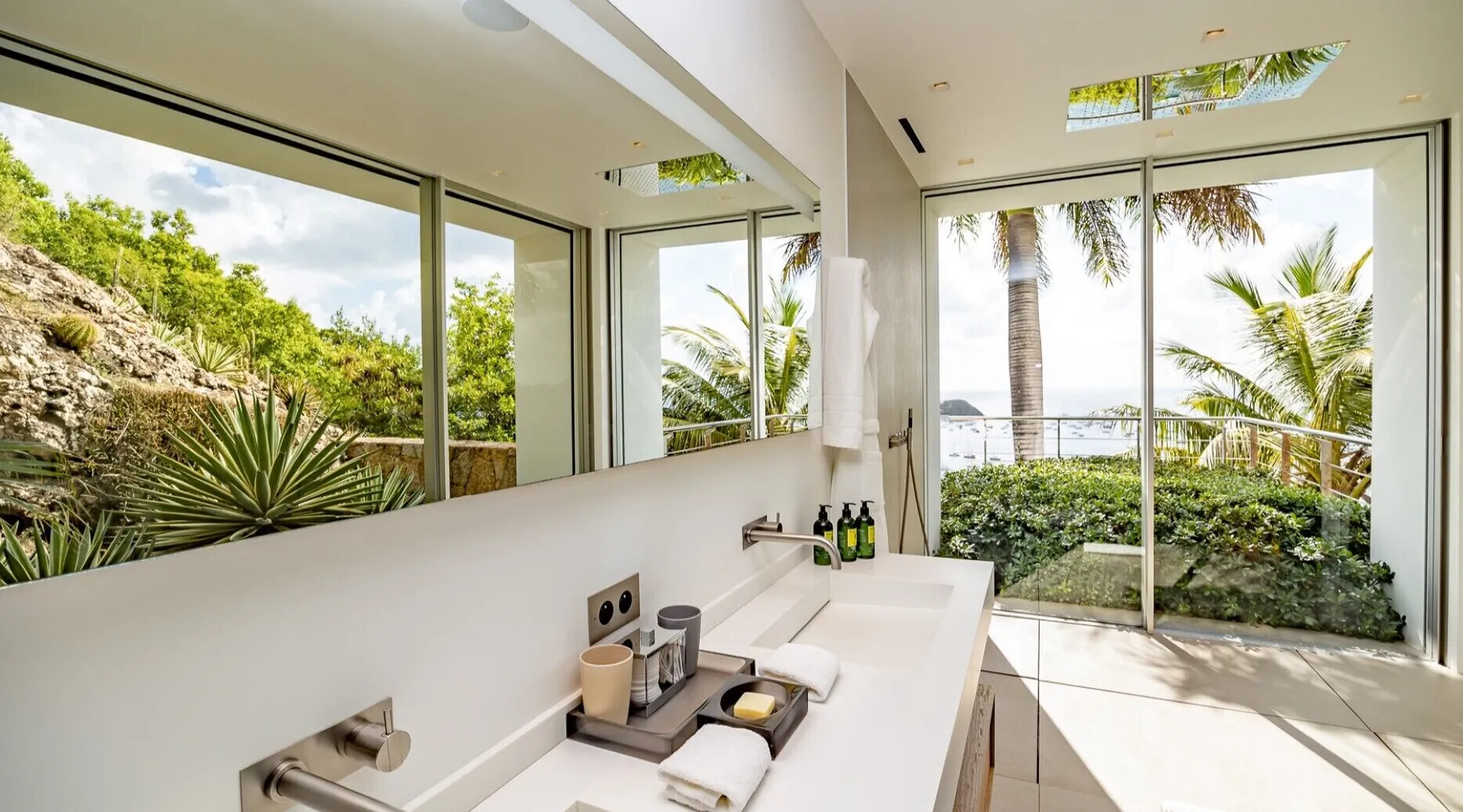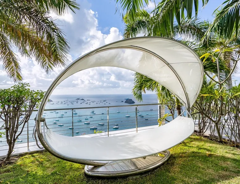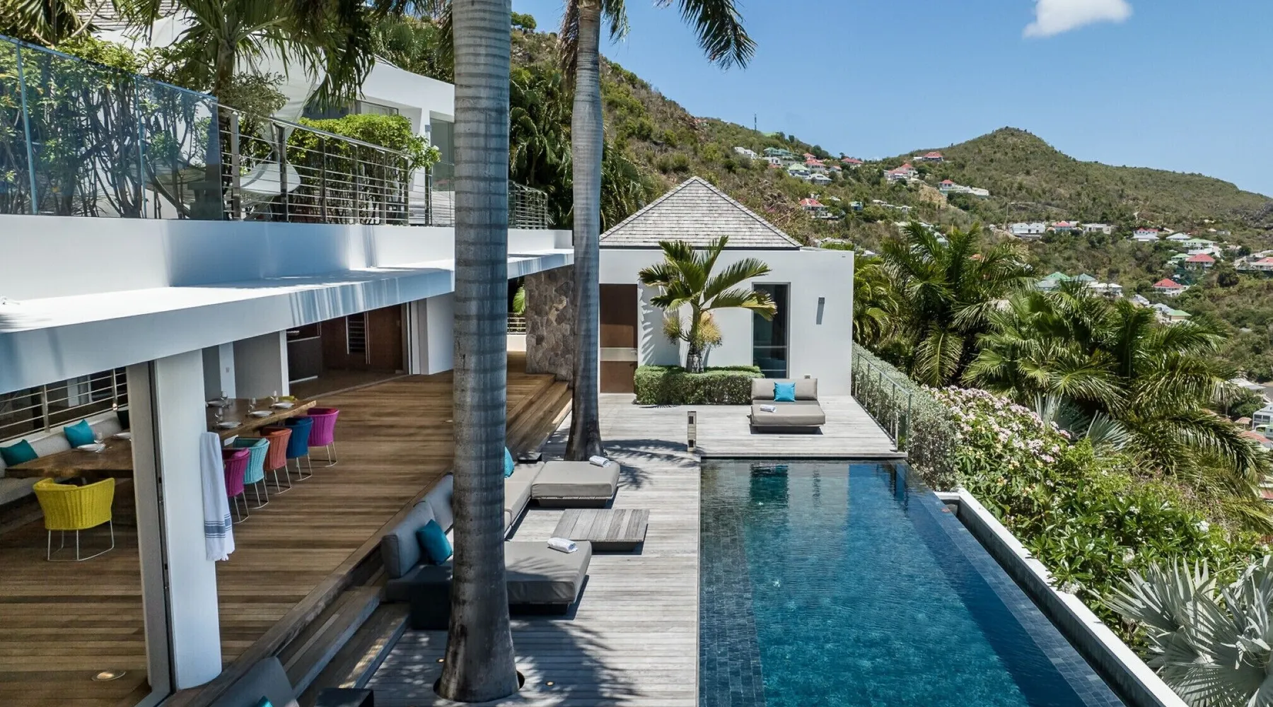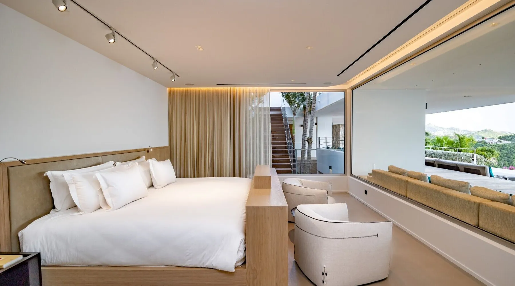 The villa UTOPIC is available for rent in 4 or 5 bedrooms. Perched high above Corossol, Villa UTOPIC is a stunning architectural masterpiece offering one of the most breathtaking panoramic views in St. Barts. Overlooking the turquoise Caribbean Sea and the bustling harbor of Gustavia, this luxury retreat is designed to blend seamlessly with its natural surroundings, providing an unparalleled indoor-outdoor living experience in a setting of absolute tranquility and sophistication. Nestled within lush tropical vegetation, the villa’s expansive terraces capture the essence of island living, where guests can witness the elegant dance of yachts and fishing boats, framed by the vibrant hues of the Caribbean sunset. With its sleek contemporary design, open spaces, and sun-drenched decks, Villa UTOPIC embodies the perfect harmony between modern comfort and natural beauty. At the heart of the villa, the 15-meter infinity pool seems to melt into the horizon, creating an illusion of floating above the sea. Surrounding the pool, a spacious teak deck features plush sunbeds and oversized cushions, inviting guests to lounge in total relaxation. An elegant outdoor dining area, complete with a massive granite table, sets the perfect scene for al fresco dining under the stars, while a shaded pergola offers a cool retreat during the day. Inside, the sophisticated living space exudes effortless luxury, with neutral tones and carefully curated pops of color enhancing the serene ambiance. Floor-to-ceiling glass doors frame the breathtaking ocean views, creating a seamless connection between interior elegance and natural splendor. A private office space allows guests to stay connected when needed, while the state-of-the-art gourmet kitchen is fully equipped for preparing exquisite meals, whether cooked personally or by a private chef for a fine dining experience. The villa’s three elegantly designed bedrooms, located upstairs and accessible via a sleek steel staircase or a private elevator, are sanctuaries of tranquility. Each suite features a king-size bed, an en-suite bathroom, a spacious dressing area, and a private terrace overlooking the infinite blue of the ocean. The rooms are individually decorated, with distinct color themes that add a personal and sophisticated touch. The third bedroom, located on the ground floor, offers a secluded space for guests seeking additional privacy. Designed with families in mind, Villa UTOPIC ensures a safe and luxurious environment for children, making it an ideal retreat for families, couples, or groups of friends. Every element of the villa has been thoughtfully curated to deliver a one-of-a-kind experience, where refined elegance meets the untouched beauty of St. Barts. Just minutes from Gustavia’s vibrant town center, Villa UTOPIC offers the perfect blend of seclusion and accessibility, allowing guests to enjoy world-class dining, designer shopping, and pristine beaches without compromising privacy. Whether seeking a romantic getaway, a family vacation, or an unforgettable escape with friends, Villa UTOPIC promises a truly immersive luxury experience, set against the backdrop of one of the most beautiful panoramic views in St. Barts. Book Villa UTOPIC with Bucket List Villa today and experience the height of luxury, elegance, and breathtaking beauty in St. Barts.