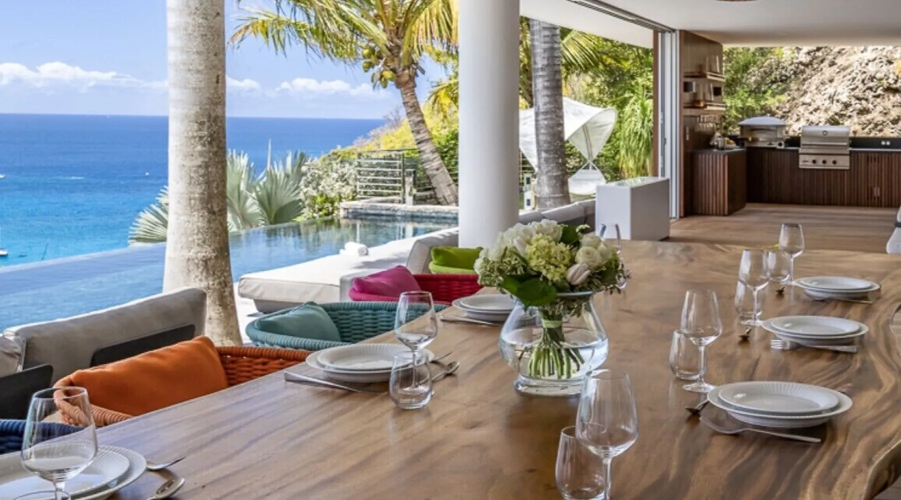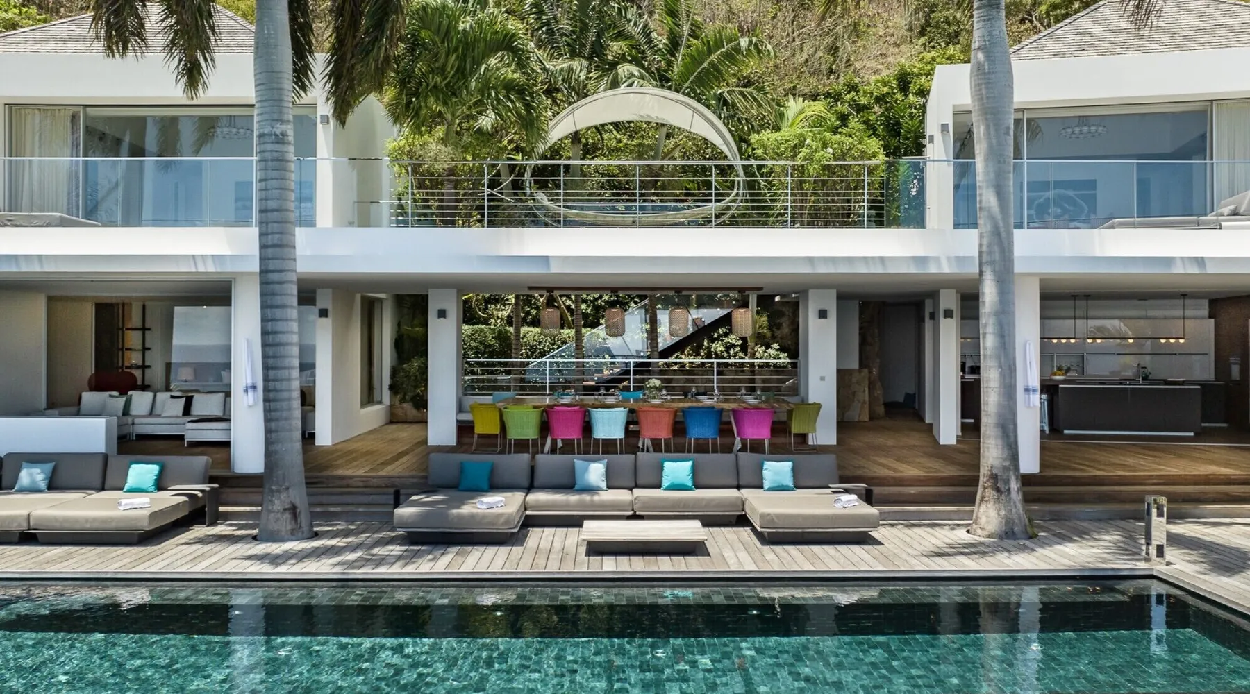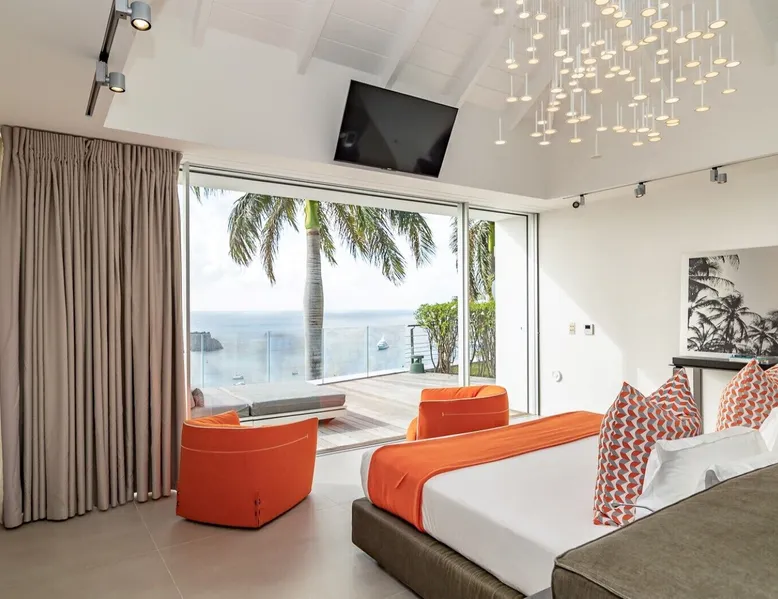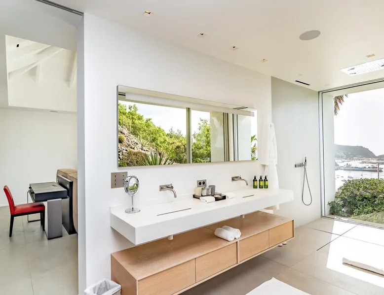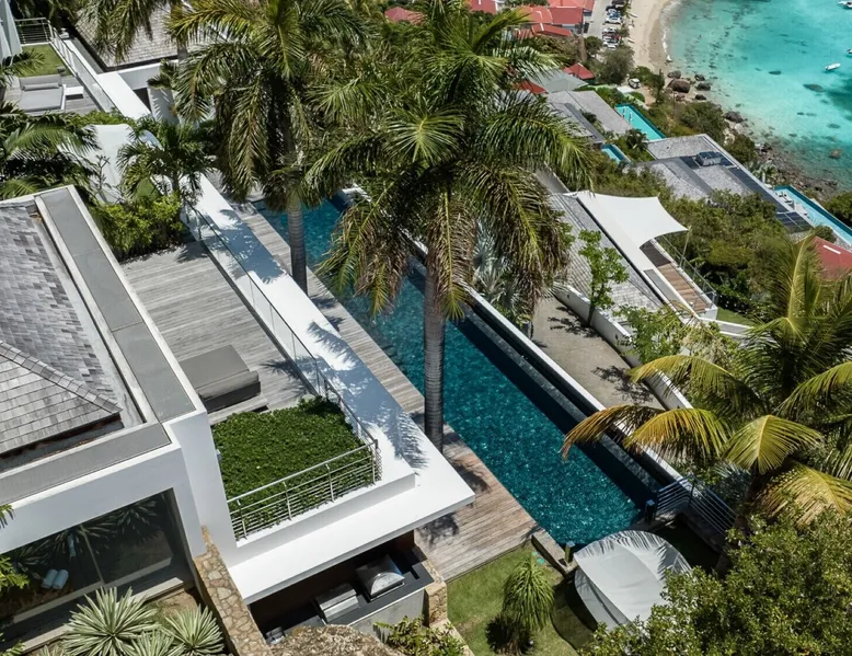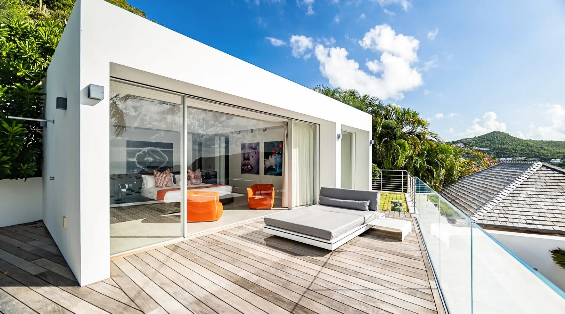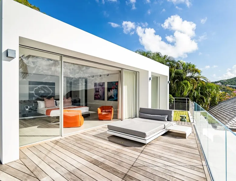 The villa UTOPIC is available for rent in 4 or 5 bedrooms. Perched high above Corossol, Villa UTOPIC is a stunning architectural masterpiece offering one of the most breathtaking panoramic views in St. Barts. Overlooking the turquoise Caribbean Sea and the bustling harbor of Gustavia, this luxury retreat is designed to blend seamlessly with its natural surroundings, providing an unparalleled indoor-outdoor living experience in a setting of absolute tranquility and sophistication. Nestled within lush tropical vegetation, the villa’s expansive terraces capture the essence of island living, where guests can witness the elegant dance of yachts and fishing boats, framed by the vibrant hues of the Caribbean sunset. With its sleek contemporary design, open spaces, and sun-drenched decks, Villa UTOPIC embodies the perfect harmony between modern comfort and natural beauty. At the heart of the villa, the 15-meter infinity pool seems to melt into the horizon, creating an illusion of floating above the sea. Surrounding the pool, a spacious teak deck features plush sunbeds and oversized cushions, inviting guests to lounge in total relaxation. An elegant outdoor dining area, complete with a massive granite table, sets the perfect scene for al fresco dining under the stars, while a shaded pergola offers a cool retreat during the day. Inside, the sophisticated living space exudes effortless luxury, with neutral tones and carefully curated pops of color enhancing the serene ambiance. Floor-to-ceiling glass doors frame the breathtaking ocean views, creating a seamless connection between interior elegance and natural splendor. A private office space allows guests to stay connected when needed, while the state-of-the-art gourmet kitchen is fully equipped for preparing exquisite meals, whether cooked personally or by a private chef for a fine dining experience. The villa’s three elegantly designed bedrooms, located upstairs and accessible via a sleek steel staircase or a private elevator, are sanctuaries of tranquility. Each suite features a king-size bed, an en-suite bathroom, a spacious dressing area, and a private terrace overlooking the infinite blue of the ocean. The rooms are individually decorated, with distinct color themes that add a personal and sophisticated touch. The third bedroom, located on the ground floor, offers a secluded space for guests seeking additional privacy. Designed with families in mind, Villa UTOPIC ensures a safe and luxurious environment for children, making it an ideal retreat for families, couples, or groups of friends. Every element of the villa has been thoughtfully curated to deliver a one-of-a-kind experience, where refined elegance meets the untouched beauty of St. Barts. Just minutes from Gustavia’s vibrant town center, Villa UTOPIC offers the perfect blend of seclusion and accessibility, allowing guests to enjoy world-class dining, designer shopping, and pristine beaches without compromising privacy. Whether seeking a romantic getaway, a family vacation, or an unforgettable escape with friends, Villa UTOPIC promises a truly immersive luxury experience, set against the backdrop of one of the most beautiful panoramic views in St. Barts. Book Villa UTOPIC with Bucket List Villa today and experience the height of luxury, elegance, and breathtaking beauty in St. Barts.