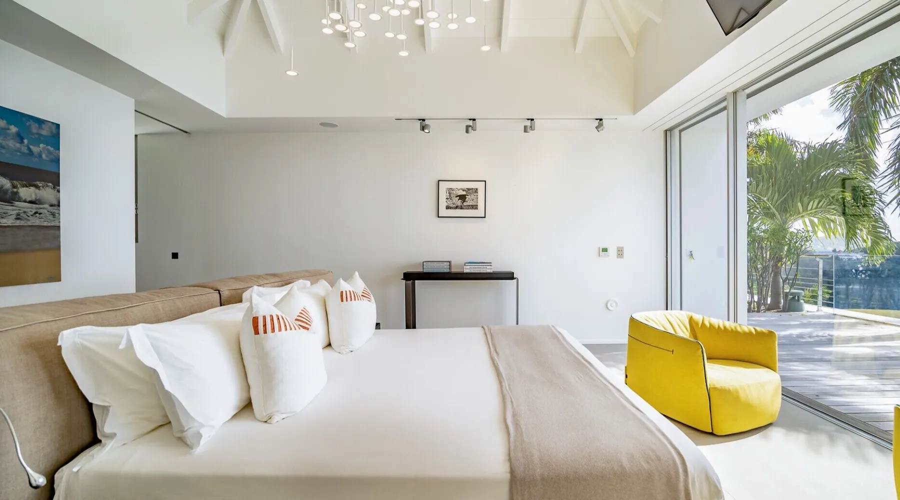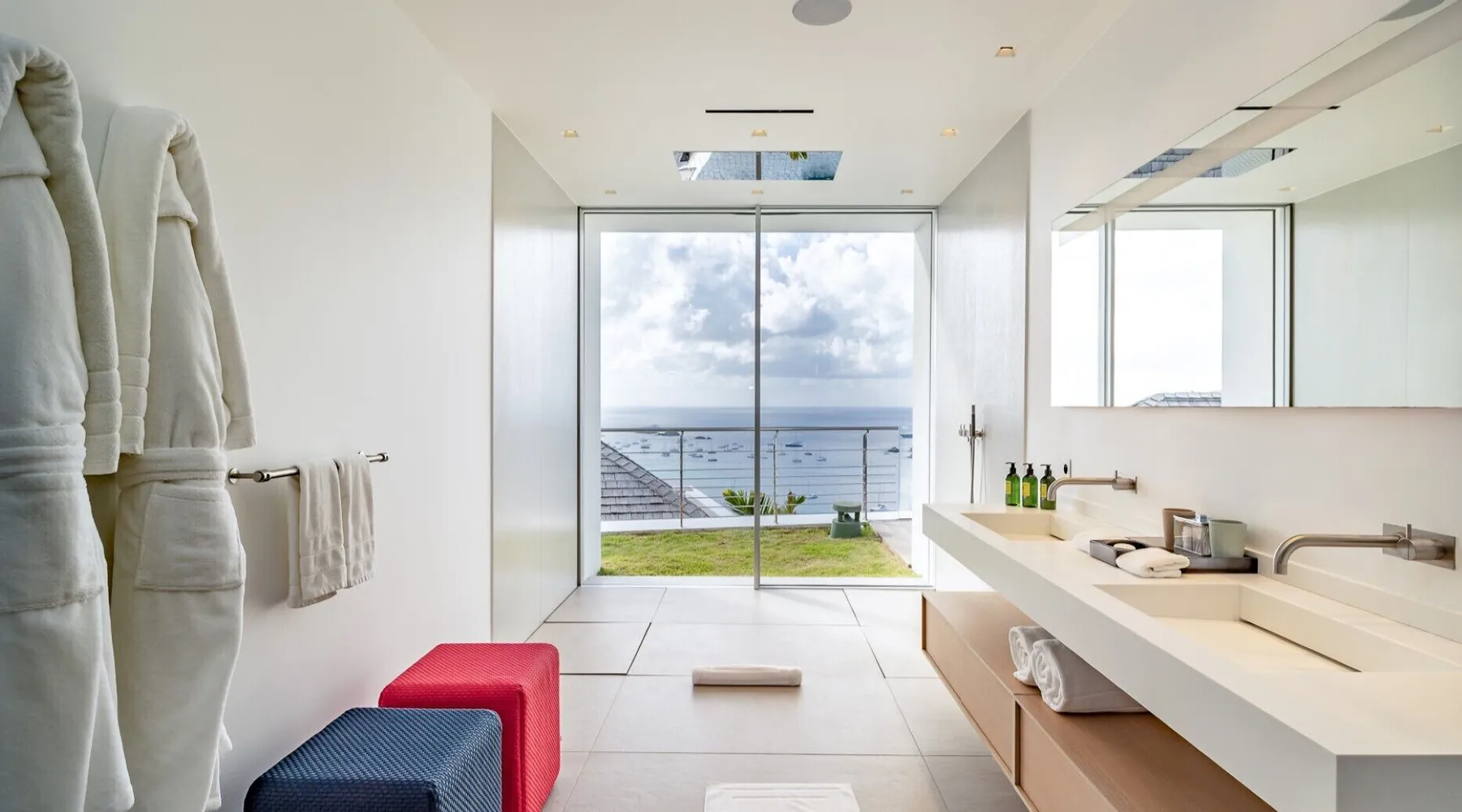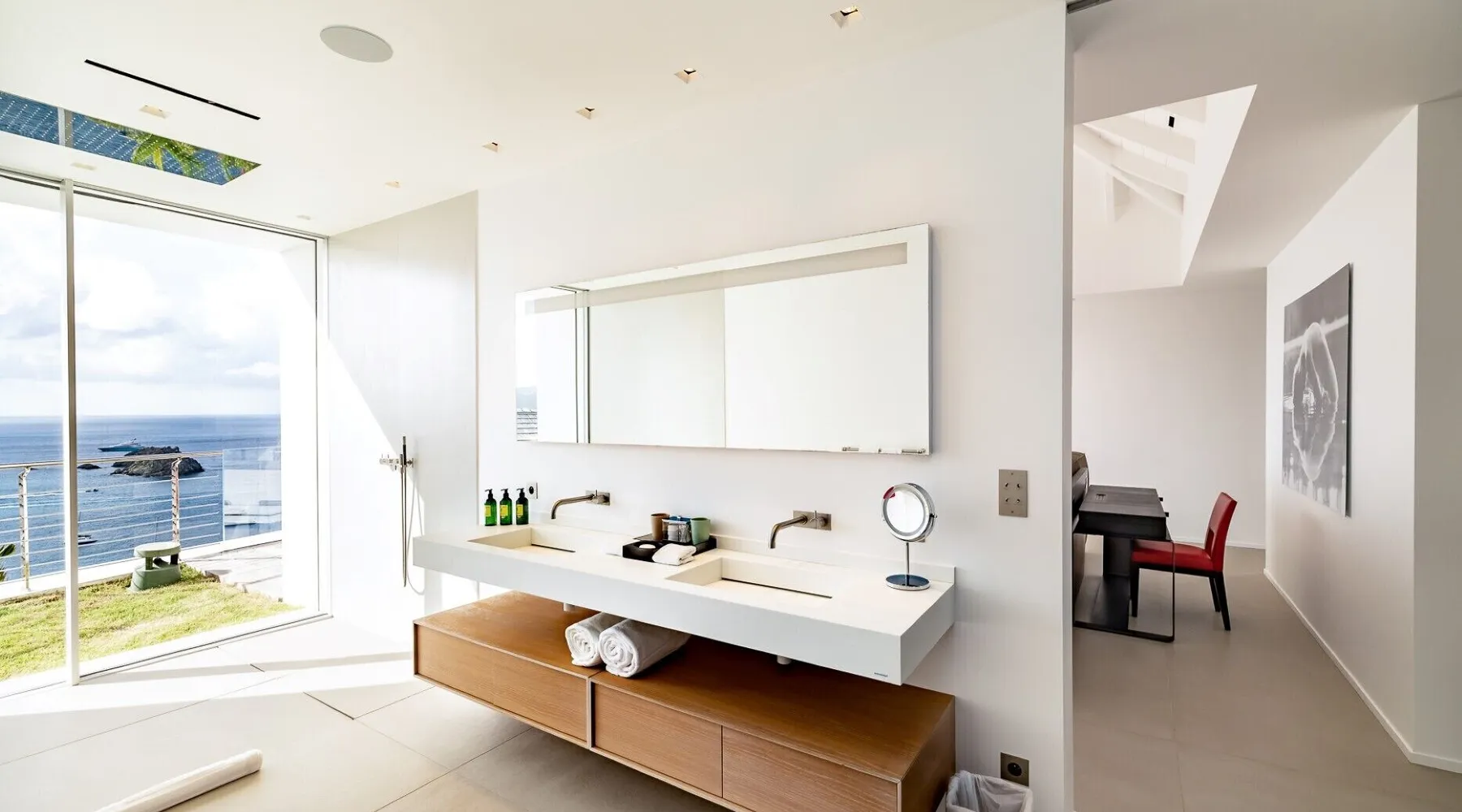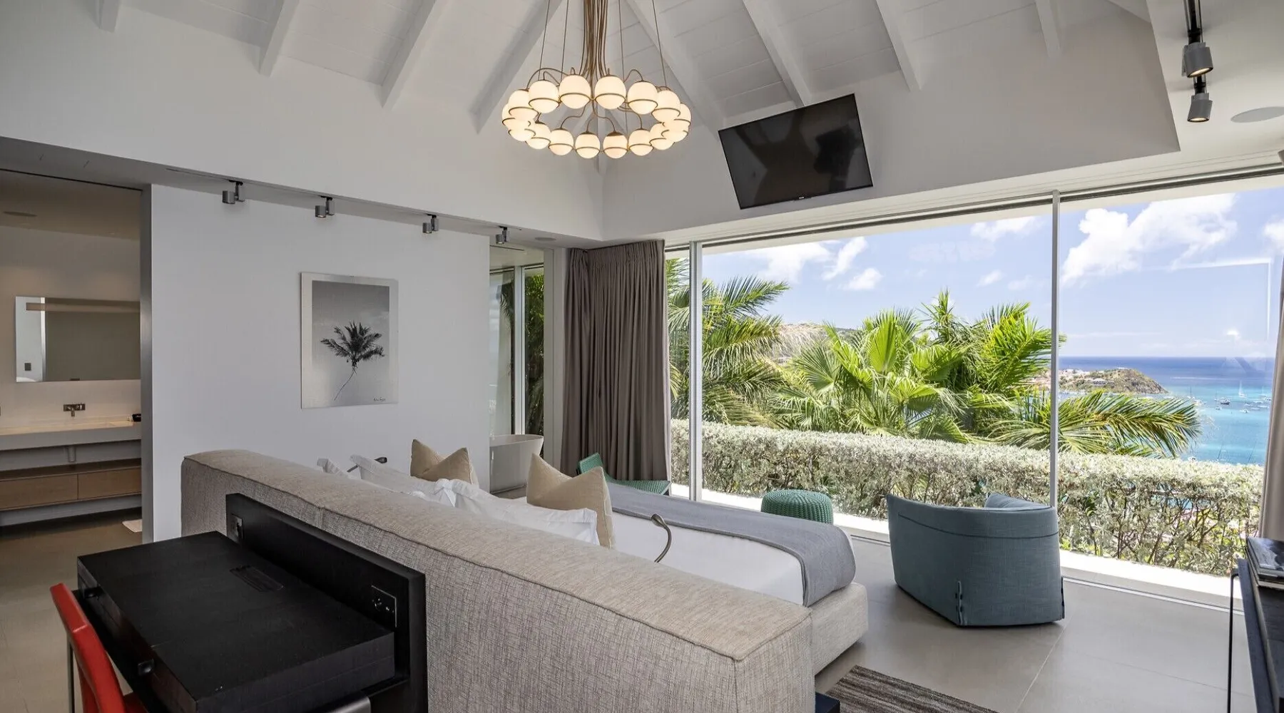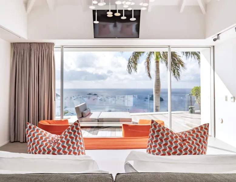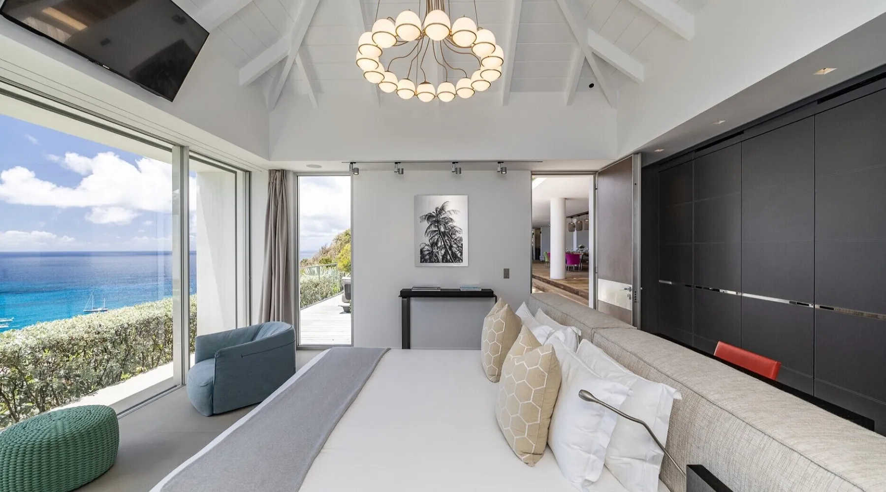The villa UTOPIC is available for rent in 4 or 5 bedrooms. Perched high above Corossol, Villa UTOPIC is a stunning architectural masterpiece offering one of the most breathtaking panoramic views in St. Barts. Overlooking the turquoise Caribbean Sea and the bustling harbor of Gustavia, this luxury retreat is designed to blend seamlessly with its natural surroundings, providing an unparalleled indoor-outdoor living experience in a setting of absolute tranquility and sophistication. Nestled within lush tropical vegetation, the villa’s expansive terraces capture the essence of island living, where guests can witness the elegant dance of yachts and fishing boats, framed by the vibrant hues of the Caribbean sunset. With its sleek contemporary design, open spaces, and sun-drenched decks, Villa UTOPIC embodies the perfect harmony between modern comfort and natural beauty. At the heart of the villa, the 15-meter infinity pool seems to melt into the horizon, creating an illusion of floating above the sea. Surrounding the pool, a spacious teak deck features plush sunbeds and oversized cushions, inviting guests to lounge in total relaxation. An elegant outdoor dining area, complete with a massive granite table, sets the perfect scene for al fresco dining under the stars, while a shaded pergola offers a cool retreat during the day. Inside, the sophisticated living space exudes effortless luxury, with neutral tones and carefully curated pops of color enhancing the serene ambiance. Floor-to-ceiling glass doors frame the breathtaking ocean views, creating a seamless connection between interior elegance and natural splendor. A private office space allows guests to stay connected when needed, while the state-of-the-art gourmet kitchen is fully equipped for preparing exquisite meals, whether cooked personally or by a private chef for a fine dining experience. The villa’s three elegantly designed bedrooms, located upstairs and accessible via a sleek steel staircase or a private elevator, are sanctuaries of tranquility. Each suite features a king-size bed, an en-suite bathroom, a spacious dressing area, and a private terrace overlooking the infinite blue of the ocean. The rooms are individually decorated, with distinct color themes that add a personal and sophisticated touch. The third bedroom, located on the ground floor, offers a secluded space for guests seeking additional privacy. Designed with families in mind, Villa UTOPIC ensures a safe and luxurious environment for children, making it an ideal retreat for families, couples, or groups of friends. Every element of the villa has been thoughtfully curated to deliver a one-of-a-kind experience, where refined elegance meets the untouched beauty of St. Barts. Just minutes from Gustavia’s vibrant town center, Villa UTOPIC offers the perfect blend of seclusion and accessibility, allowing guests to enjoy world-class dining, designer shopping, and pristine beaches without compromising privacy. Whether seeking a romantic getaway, a family vacation, or an unforgettable escape with friends, Villa UTOPIC promises a truly immersive luxury experience, set against the backdrop of one of the most beautiful panoramic views in St. Barts. Book Villa UTOPIC with Bucket List Villa today and experience the height of luxury, elegance, and breathtaking beauty in St. Barts.