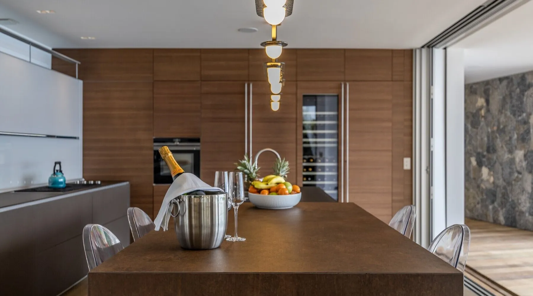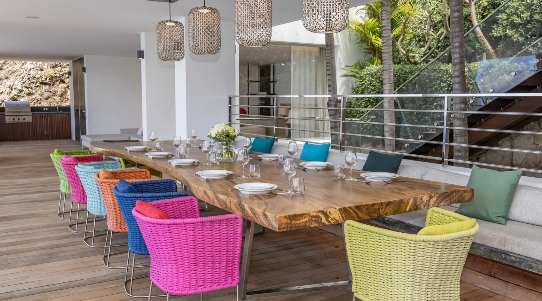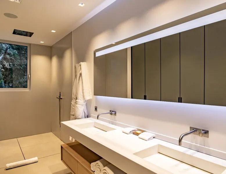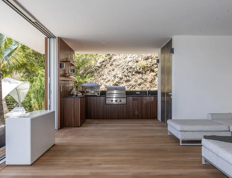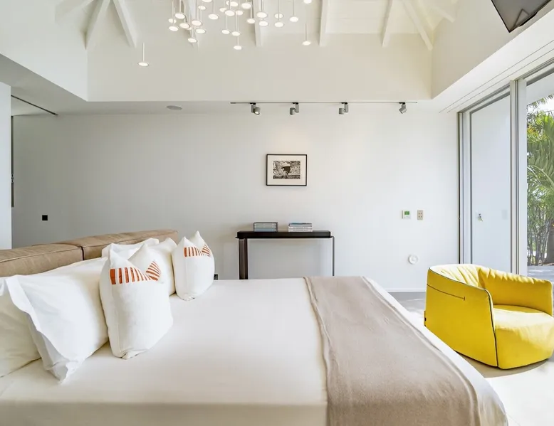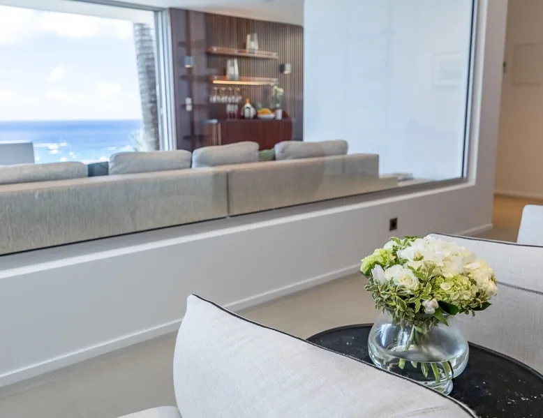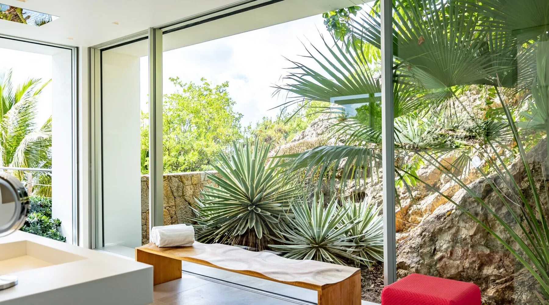 The villa UTOPIC is available for rent in 4 or 5 bedrooms. Perched high above Corossol, Villa UTOPIC is a stunning architectural masterpiece offering one of the most breathtaking panoramic views in St. Barts. Overlooking the turquoise Caribbean Sea and the bustling harbor of Gustavia, this luxury retreat is designed to blend seamlessly with its natural surroundings, providing an unparalleled indoor-outdoor living experience in a setting of absolute tranquility and sophistication. Nestled within lush tropical vegetation, the villa’s expansive terraces capture the essence of island living, where guests can witness the elegant dance of yachts and fishing boats, framed by the vibrant hues of the Caribbean sunset. With its sleek contemporary design, open spaces, and sun-drenched decks, Villa UTOPIC embodies the perfect harmony between modern comfort and natural beauty. At the heart of the villa, the 15-meter infinity pool seems to melt into the horizon, creating an illusion of floating above the sea. Surrounding the pool, a spacious teak deck features plush sunbeds and oversized cushions, inviting guests to lounge in total relaxation. An elegant outdoor dining area, complete with a massive granite table, sets the perfect scene for al fresco dining under the stars, while a shaded pergola offers a cool retreat during the day. Inside, the sophisticated living space exudes effortless luxury, with neutral tones and carefully curated pops of color enhancing the serene ambiance. Floor-to-ceiling glass doors frame the breathtaking ocean views, creating a seamless connection between interior elegance and natural splendor. A private office space allows guests to stay connected when needed, while the state-of-the-art gourmet kitchen is fully equipped for preparing exquisite meals, whether cooked personally or by a private chef for a fine dining experience. The villa’s three elegantly designed bedrooms, located upstairs and accessible via a sleek steel staircase or a private elevator, are sanctuaries of tranquility. Each suite features a king-size bed, an en-suite bathroom, a spacious dressing area, and a private terrace overlooking the infinite blue of the ocean. The rooms are individually decorated, with distinct color themes that add a personal and sophisticated touch. The third bedroom, located on the ground floor, offers a secluded space for guests seeking additional privacy. Designed with families in mind, Villa UTOPIC ensures a safe and luxurious environment for children, making it an ideal retreat for families, couples, or groups of friends. Every element of the villa has been thoughtfully curated to deliver a one-of-a-kind experience, where refined elegance meets the untouched beauty of St. Barts. Just minutes from Gustavia’s vibrant town center, Villa UTOPIC offers the perfect blend of seclusion and accessibility, allowing guests to enjoy world-class dining, designer shopping, and pristine beaches without compromising privacy. Whether seeking a romantic getaway, a family vacation, or an unforgettable escape with friends, Villa UTOPIC promises a truly immersive luxury experience, set against the backdrop of one of the most beautiful panoramic views in St. Barts. Book Villa UTOPIC with Bucket List Villa today and experience the height of luxury, elegance, and breathtaking beauty in St. Barts.