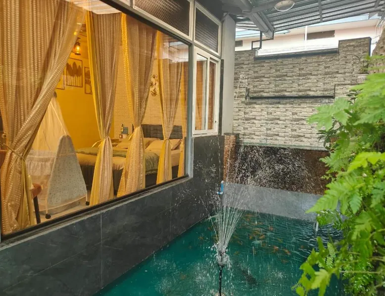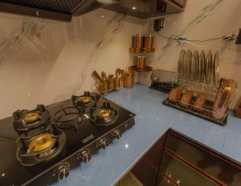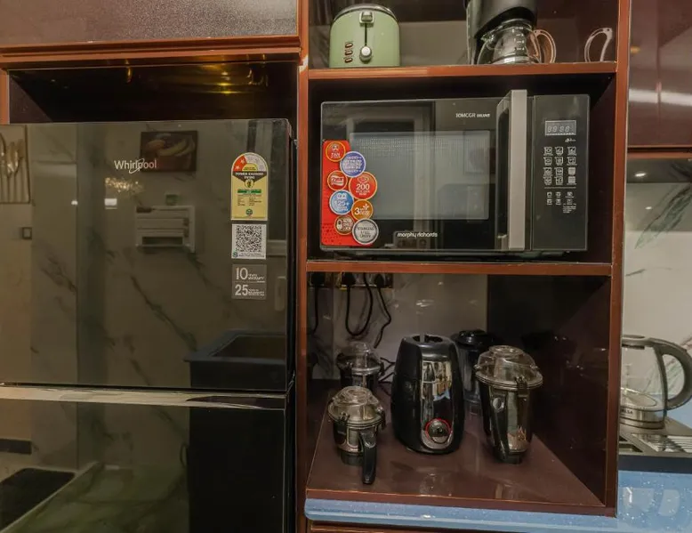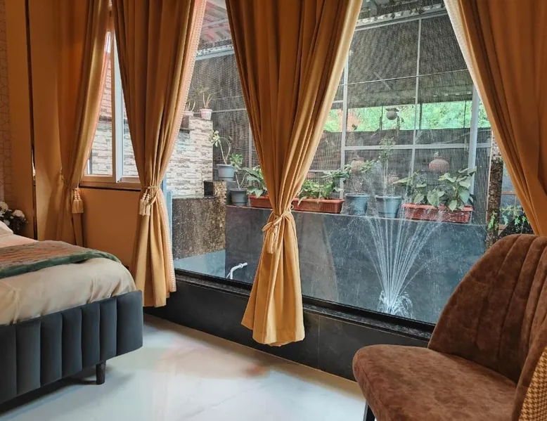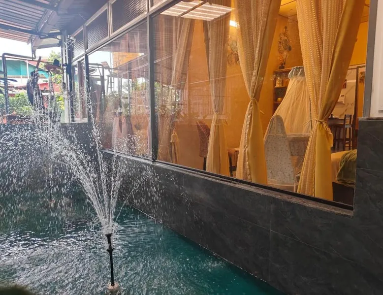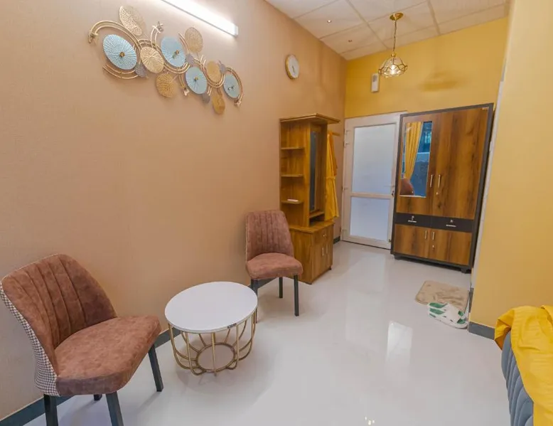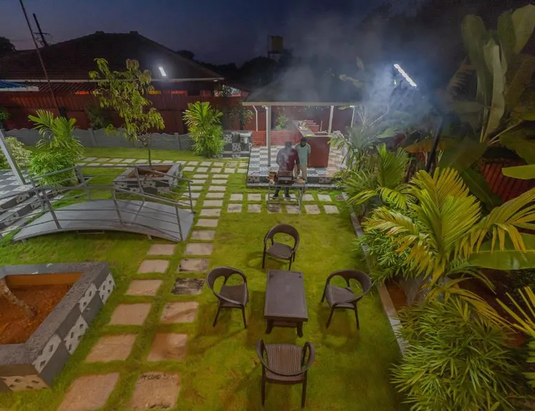 Elegant Holiday Home in Udupi: Udupi Homestay Chalet La Bonne Vie offers a recently renovated holiday home in Udupi. Guests enjoy a beautiful garden, a year-round outdoor swimming pool, and free WiFi throughout the property. Comfortable Accommodations: The property features two bedrooms and three bathrooms, including a living room. Each room is equipped with air-conditioning, a kitchenette, and modern amenities such as a washing machine and TV. Convenient Facilities: Guests can relax in the outdoor seating area, play in the children's playground, or enjoy the outdoor dining area. Additional services include private check-in and check-out, a minimarket, daily housekeeping, and free off-site parking. Accessible Location: Mangalore International Airport is 32 mi away, providing convenient travel options. Guests will have a special experience as this holiday home provides a pool with a view. Featuring a private entrance, this air-conditioned holiday home is consisted of of 1 living room, 2 separate bedrooms and 3 bathrooms with a bath and a shower. Guests will find a stovetop, a refrigerator, kitchenware and an oven in the well-equipped kitchen. The holiday home also has a barbecue. The holiday home offers a flat-screen TV, a washing machine, soundproof walls, a tea and coffee maker as well as garden views. The unit offers 3 beds.