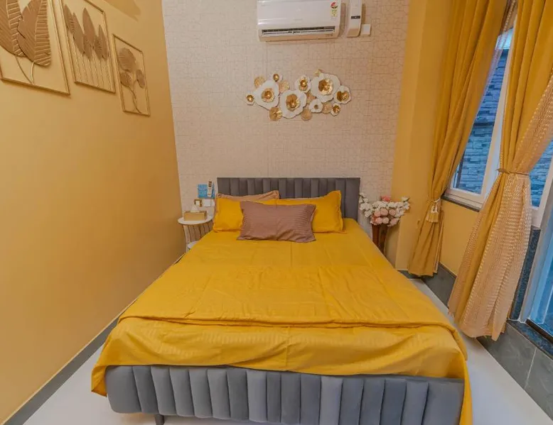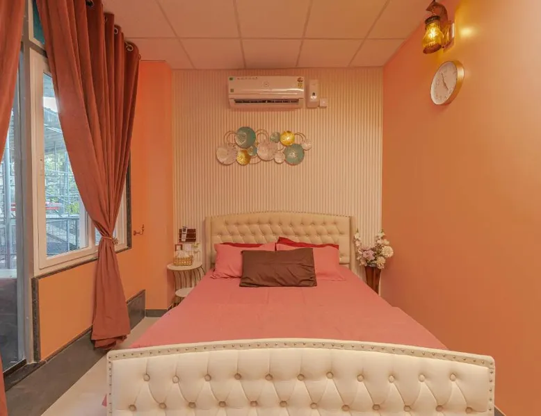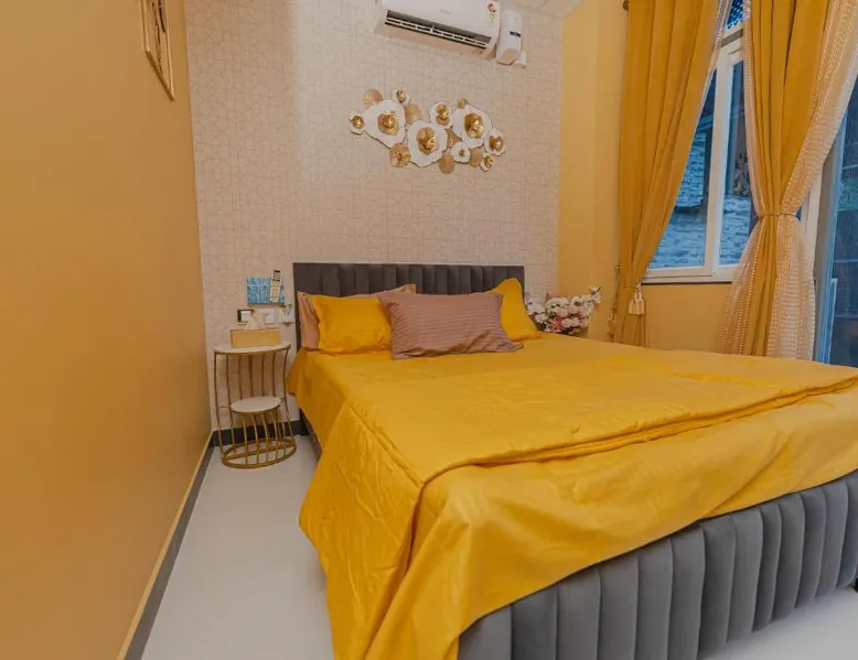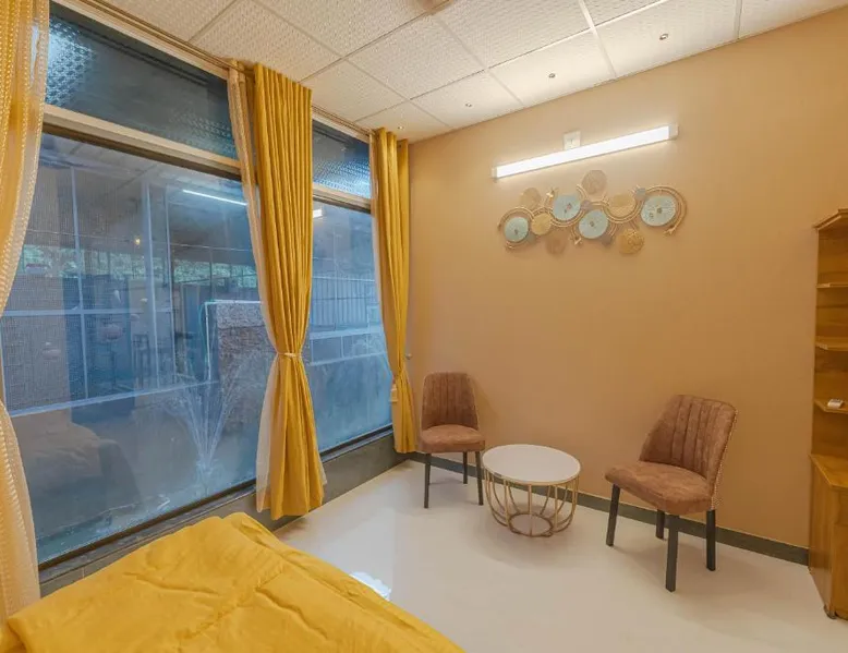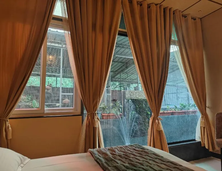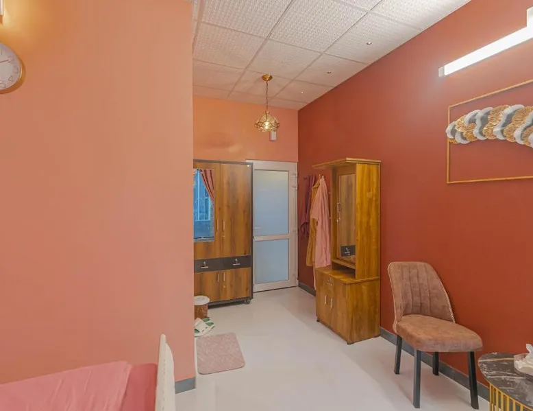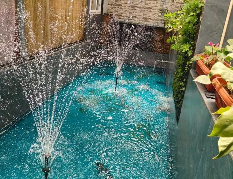 Elegant Holiday Home in Udupi: Udupi Homestay Chalet La Bonne Vie offers a recently renovated holiday home in Udupi. Guests enjoy a beautiful garden, a year-round outdoor swimming pool, and free WiFi throughout the property. Comfortable Accommodations: The property features two bedrooms and three bathrooms, including a living room. Each room is equipped with air-conditioning, a kitchenette, and modern amenities such as a washing machine and TV. Convenient Facilities: Guests can relax in the outdoor seating area, play in the children's playground, or enjoy the outdoor dining area. Additional services include private check-in and check-out, a minimarket, daily housekeeping, and free off-site parking. Accessible Location: Mangalore International Airport is 32 mi away, providing convenient travel options. Guests will have a special experience as this holiday home provides a pool with a view. Featuring a private entrance, this air-conditioned holiday home is consisted of of 1 living room, 2 separate bedrooms and 3 bathrooms with a bath and a shower. Guests will find a stovetop, a refrigerator, kitchenware and an oven in the well-equipped kitchen. The holiday home also has a barbecue. The holiday home offers a flat-screen TV, a washing machine, soundproof walls, a tea and coffee maker as well as garden views. The unit offers 3 beds.
