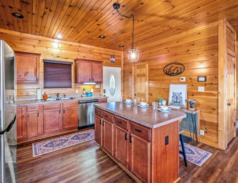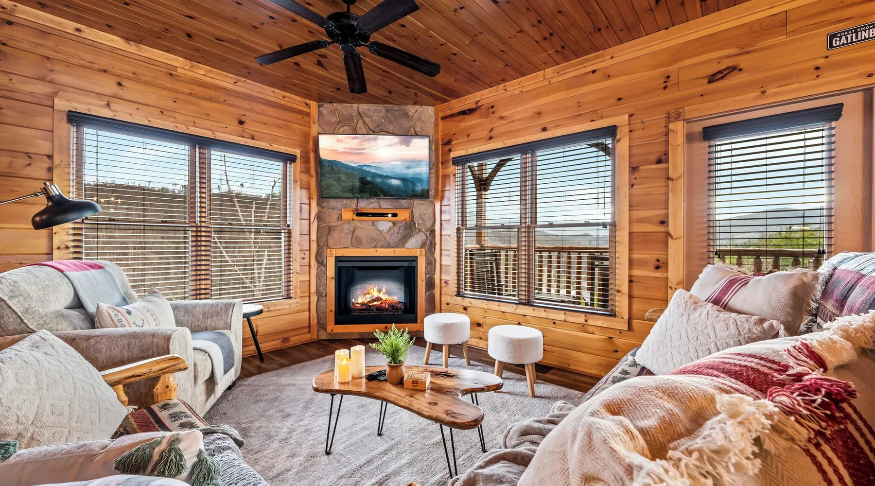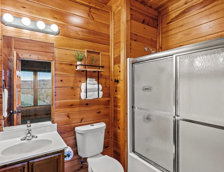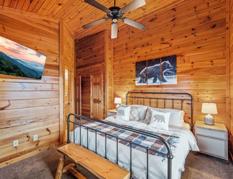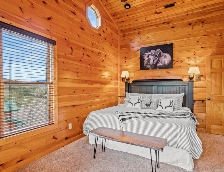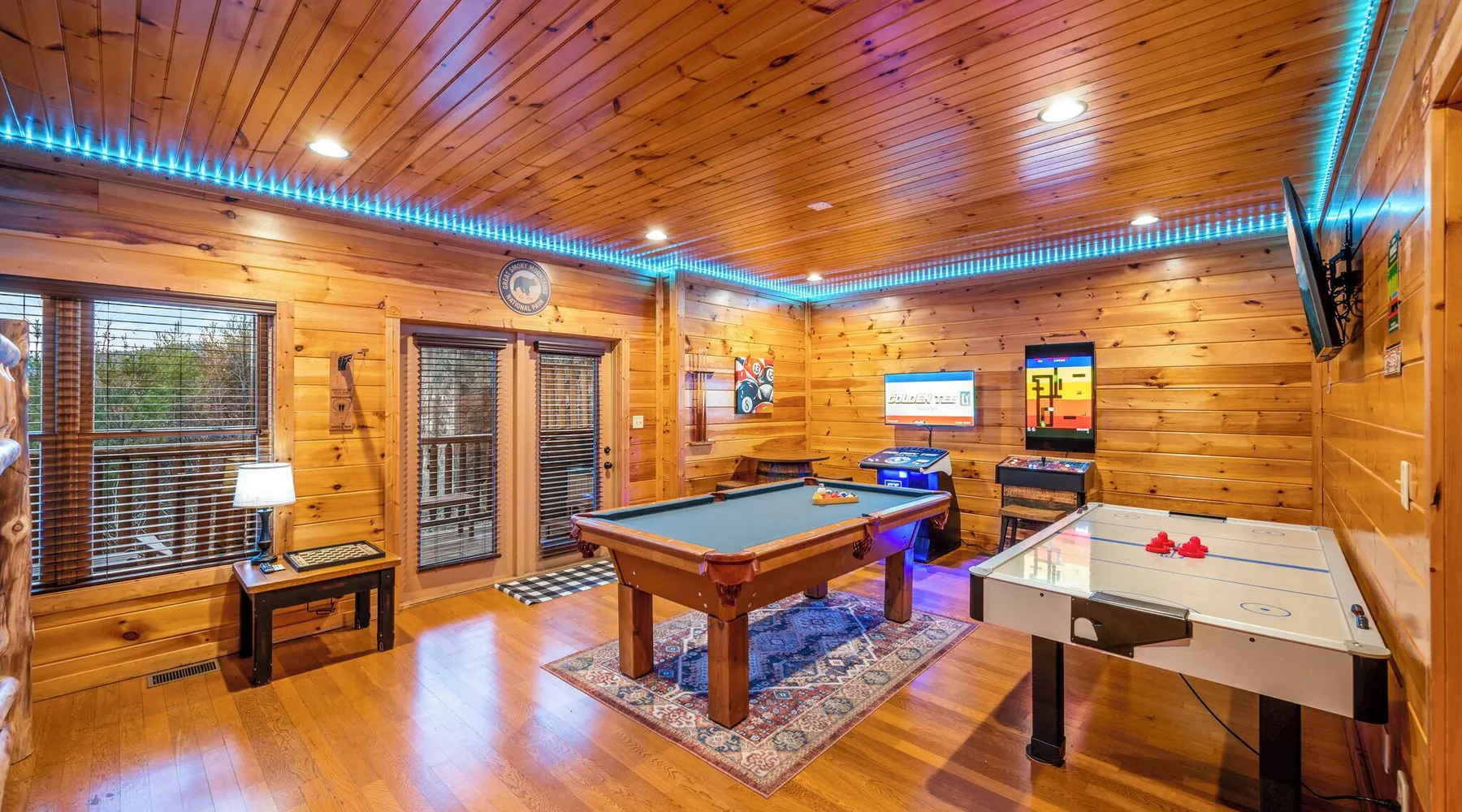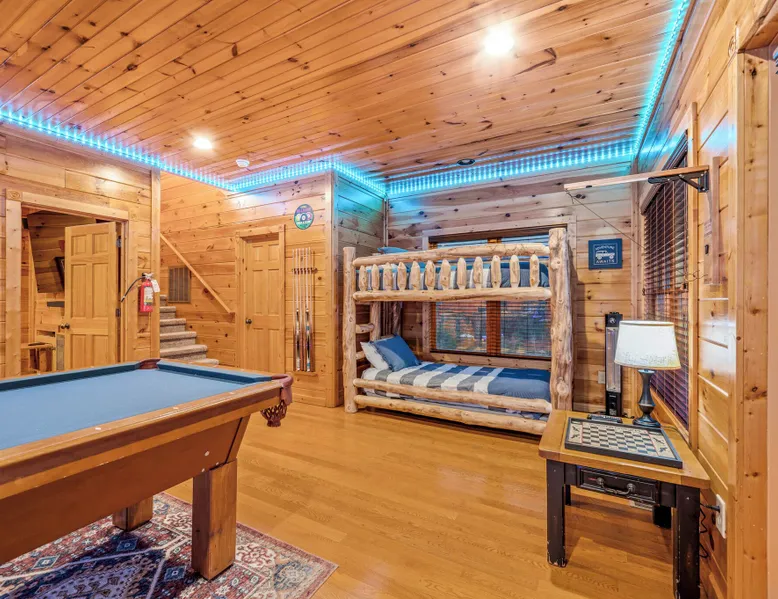 ★Mountain VIEWS! ★ 2mi to Downtown Gatlinburg ★Theater Room ★ 3mi to Smoky Mountain National Park ★Game Room ★ 5.7mi to Ober Gatlinburg ★Pool Table ★ 7.4mi to Pigeon Forge ★Private Hot Tub ★9.5mi to Dollywood ★Seasonal Community Pool (Memorial Day- Labor Day) 4 Bedroom cabin (sleeps 10). Loaded with amenities for the whole party to enjoy! The space Centrally Located in the heart of Gatlinburg, while still enjoying the serene mountain vibes of The Great Smoky's. Our floor plan is ideal for families and small groups alike and is perfect for any getaway - so pack your bags because the mountains are calling! ✔ Expansive Decks with VIEWS! ✔ Private Hot TUB! ✔ Home Theater Room ✔ Game Room w/ Pool Table, Air Hockey and Arcades ✔ Access to Seasonal Community Pool (Memorial Day - Labor Day) ✔ Free Wi-Fi and Free Parking ✔ Close to Great Smoky Mountains National Park, hiking, mountain biking, fishing, horseback riding, shopping, restaurants, museums, downtown Gatlinburg, Ober Gatlinburg, Ripley's Aquarium of the Smokies, Hollywood Star Cars Museum, Ole Smoky Moonshine, Pigeon Forge, The Island, the Comedy Barn, Dollywood, and more ★ INDOOR LIVING★ As you step inside, the rustic charm of the cabin seamlessly merges with modern amenities to create a haven of comfort and style. Plush sofas invite you to unwind, while the electric fireplace adds a touch of ambiance (please note this is an electric fireplace, and not intended to warm the room). ★ SLEEPING ARRANGEMENTS ★ ✔ Bedroom #1 (Upper Level): Spacious bedroom with King-sized bed and Flat-screen TV; Attached Full Bathroom with Shower/Tub Combo ✔ Bedroom #2 (Upper Level): Comfy bedroom with King-sized bed and Flat-screen TV; Attached Full Bathroom with Shower/Tub Combo ✔ Bedroom #3 (Upper Level): Cozy bedroom with King-sized bed and Flat-screen TV; Attached Full Bathroom with Shower/Tub Combo ✔ Bedroom #4 (Lower Level in game room): Relaxing bedroom with Twin-over-twin bunk bed and Flat-screen TV; Access to the Downstairs Half Bathroom ✔ Futon in the main Living Area for additional Sleeping Space ✔ Additional Half Bathroom in the Main Level Hallway ★KITCHEN The fully equipped kitchen with stainless steel appliances, is a culinary haven. Well-appointed with a ✔Full-sized refrigerator ✔Dishwasher ✔Electric Stove/Range ✔Microwave and other kitchen appliances perfect for making breakfast, lunch, or dinner throughout your stay! *All pots, pans, glasses, plates, silverware, etc. are also there for you! We also offer a large crockpot, an electric griddle, and an outdoor charcoal grill for catering to large crowds. ★ENTERTAINMENT The entertainment magic unfolds in the game room with a: ✔Pool Table ✔Air Hockey Table ✔Multi-Arcade ✔Golf Arcade ★THEATER ROOM For those seeking a cinematic escape, the cabin features a dedicated Theater Room. Immerse yourself in the latest blockbuster or binge-watch your favorite shows on a large screen, creating a movie-going experience without leaving the comfort of your cabin. ★HOT TUB Step onto the deck, where a private hot tub invites relaxation beneath the stars, and a panoramic mountain backdrop sets the scene. Whether you're unwinding in the bubbling hot tub or gently swaying in a rocking chair enjoying a cup of coffee or a glass of wine, the deck ensures you witness unforgettable sunsets, painting the skies in hues of warmth and tranquility. ★Seasonal Swimming Pool As a bonus, the property provides access to a seasonal community swimming pool, offering yet another refreshing option for recreation. The pool is open between Memorial Day and Labor Day. The Fitness center is open year round. ★ GENERAL Complimentary starter toiletries, linens/towels, free WiFi, air conditioning & central heat, full-sized washer and dryer ★PARKING Free parking for 3-4 vehicles on premises ★COOL THINGS TO DO IN THE AREA Pigeon Forge, Gatlinburg, and Sevierville are the three main cities that comprise the area. Everything is spread out a bit and there are amazing things to keep you busy... - World-class hiking trails of all types and skill levels - Dollywood theme park (of course!) - Putt putt, go-karts, and pancake restaurants on every corner - Amazing dinner shows to entertain kids of all ages - Museums of all types: classic cars, Alcatraz, Titanic, and several children's museums - Restaurants of all types... Always come hungry because serving sizes are HUGE! ★Guest access With remote keypad entry, guests will have access to the entire cabin.