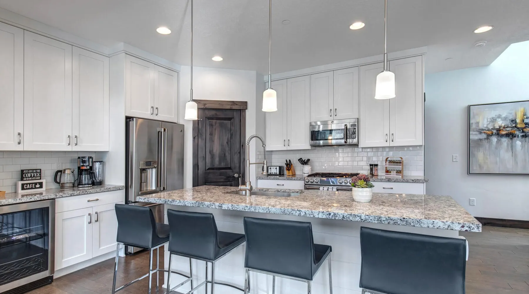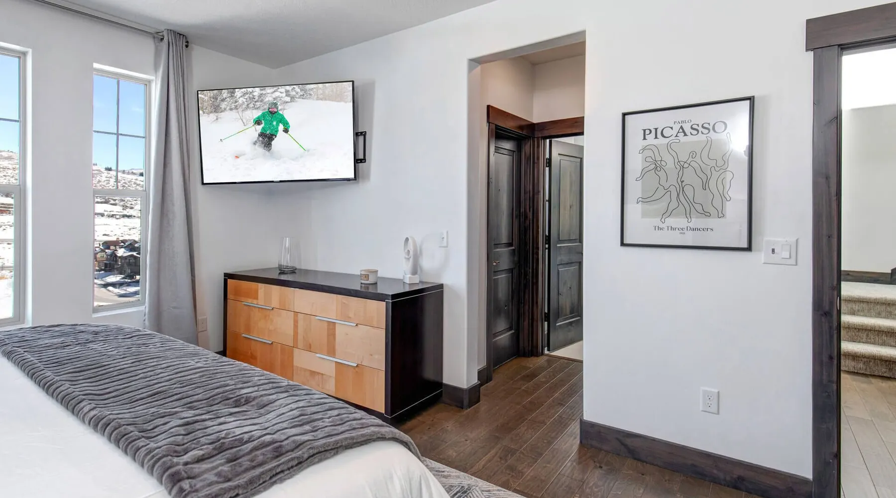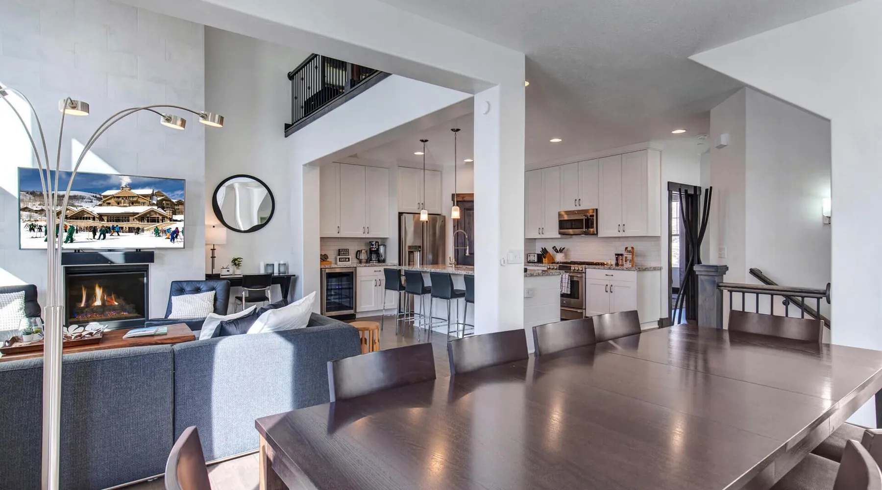 A PERFECT GETAWAY for Families and Friends BEDROOM 1: First floor with three queen beds, a 50" Smart TV, a ceiling fan, and an ensuite bathroom. BEDROOM 2: Second/main floor, the King primary suite includes a Visio 75" Smart TV and an ensuite bathroom. BEDROOM 3: Third/top floor, this room has a Queen bed, a 75" Smart TV, and shares a bathroom. BEDROOM 4: Third/top floor, this room offers a queen bed and shares a bathroom. TOP AMENITIES Fast, Reliable Wifi Community Hot Tub Community Pool (seasonal) Cozy Fireplace BBQ Grill Central Air Conditioning Gourmet Kitchen 85" Smart TV Private Garage Central Heating and Humidifying System Welcome to your dream escape, a luxurious 2734-square-foot townhouse that offers the perfect blend of elegance, comfort, and convenience. Designed to accommodate up to 12 guests, this stunning four-bedroom, four-bathroom haven is ideal for family gatherings, group vacations, or a peaceful retreat amidst nature's beauty. Nestled just minutes away from the bustling attractions of Park City and Deer Valley Ski Resorts, this home serves as your gateway to both relaxation and adventure. ELEGANT LIVING SPACES As you step inside, you are immediately enveloped in an atmosphere of warmth and sophistication. The expansive living room, with its inviting seating arrangement, is centered around a grand gas fireplace, creating the perfect setting for cozy evenings. An 85" LG Smart TV, equipped with an Amazon Firestick and ZVOX Sound Bar, ensures that entertainment is just a click away. Adjacent to the living area is a spacious dining room, where a table seating 10 and bar seating for four invite you to enjoy meals and conversations in style. The fully equipped gourmet kitchen is a culinary masterpiece, featuring everything from an air fryer to a wine fridge, ensuring that every meal is a gourmet experience. LUXURIOUS BEDROOMS Each bedroom in this townhouse is a sanctuary designed for ultimate comfort and relaxation. On the first floor, Bedroom 1 is a retreat in itself, featuring three luxurious queen beds, a 50" Smart TV, and an ensuite bathroom complete with a tub/shower combo, hair dryer, and lighted mirror. This space is perfect for families or groups seeking both comfort and convenience. Ascending to the second floor, you’ll find the King primary suite, an oasis of luxury with a Visio 75" Smart TV and an opulent ensuite bathroom with dual shower heads and a center rain feature. This bathroom is a spa-like retreat, featuring a shower, dual sink vanity, and a bidet, offering a perfect start or end to your day. The third-floor houses two beautifully appointed bedrooms, each a private haven. Bedroom 3 includes a King bed and a 75" Smart TV, sharing a bathroom with Bedroom 4, which features a queen bed. These rooms provide a serene escape, perfect for unwinding after a day filled with adventure and exploration. COMFORT AND LEISURE Every aspect of this townhouse is meticulously designed to enhance your stay. Central air conditioning and a whole-home humidifying system ensure your comfort throughout the year, while thoughtful touches like a selection of cards and board games promise leisurely evenings full of fun and laughter. In the winter months, enjoy the community hot tub at the clubhouse. During the summer months, take advantage of the community's large outdoor pool, perfect for swimming and water activities. CONVENIENT PARKING Parking is made easy with space for two small to mid-size vehicles in the private garage and two additional vehicles in the driveway. To maintain the neighborhood's serene environment, please note that RV, boat, or trailer parking is not permitted, and there is no street parking available. EXPLORE WITH EASE Exploring the local area is both convenient and exciting, thanks to the newly added free bus routes just three minutes away. These routes offer easy access to Park City and Deer Valley Ski Resorts as well as Old Town, operating daily from 5:30 am to 11:05 pm. With the "MyStop" app and High Valley Transit's free ride options, your adventures are just a ride away. COMMUNITY AMENITIES Enhancing your stay is the Retreat at Jordanelle Clubhouse, a community hub that offers a fitness center with a shower-equipped locker room, a private conference room, and an entertaining area with vaulted ceilings. During the summer, the large outdoor pool and year-round hot tub provide relaxation and recreation. The adjacent wetlands and walking trails lead to a covered pavilion, a 15-acre community park, and a large grass-sports area, offering plenty of opportunities for outdoor enjoyment. SEAMLESS EXPERIENCE Moose Management is dedicated to ensuring a seamless and enjoyable experience from start to finish. Our team provides timely communications, and with a key-less entry system, your check-in is hassle-free. Upon arrival, your townhouse will be professionally cleaned and stocked with essential items like shampoo, soaps, paper products, towels, and linens, allowing you to focus on making memories. Access our Guest Portal for local suggestions, specific home details, and Wi-Fi access, all designed to enhance your stay. YOUR ULTIMATE HOME AWAY FROM HOME Embrace the perfect blend of luxury, comfort, and convenience in this remarkable townhouse—your ultimate home away from home. Whether you're here for the skiing, the breathtaking scenery, or simply to unwind, this property promises an unforgettable experience that will leave you longing to return.