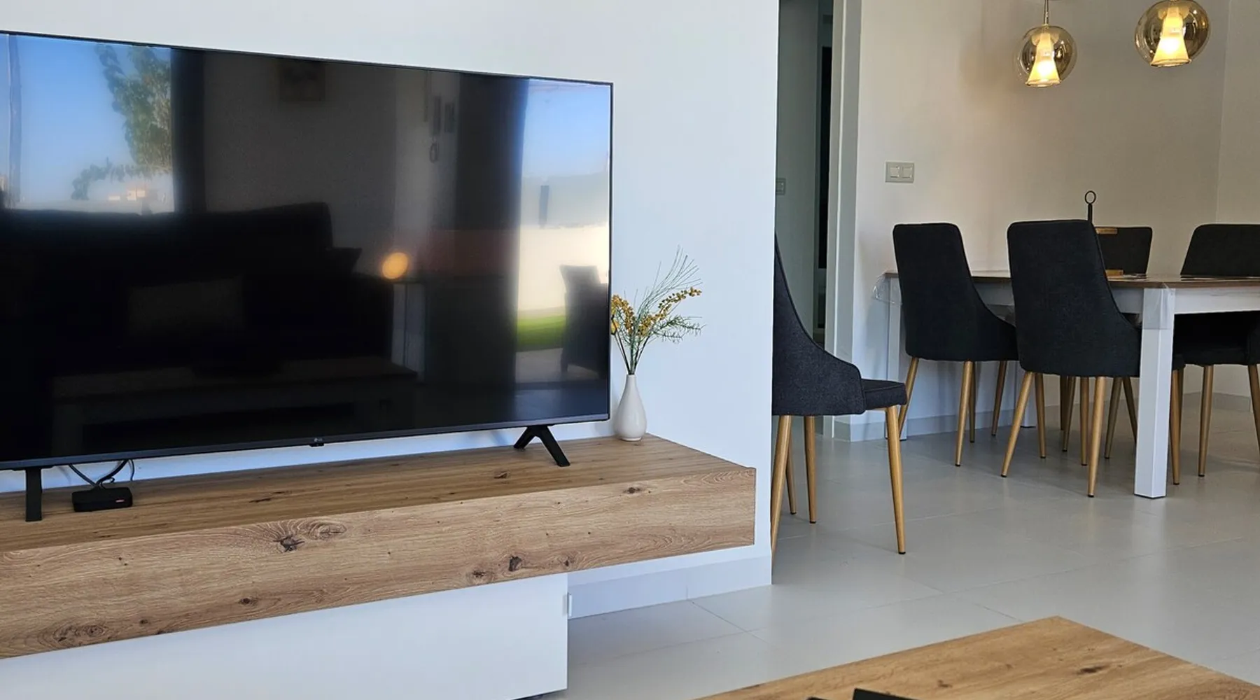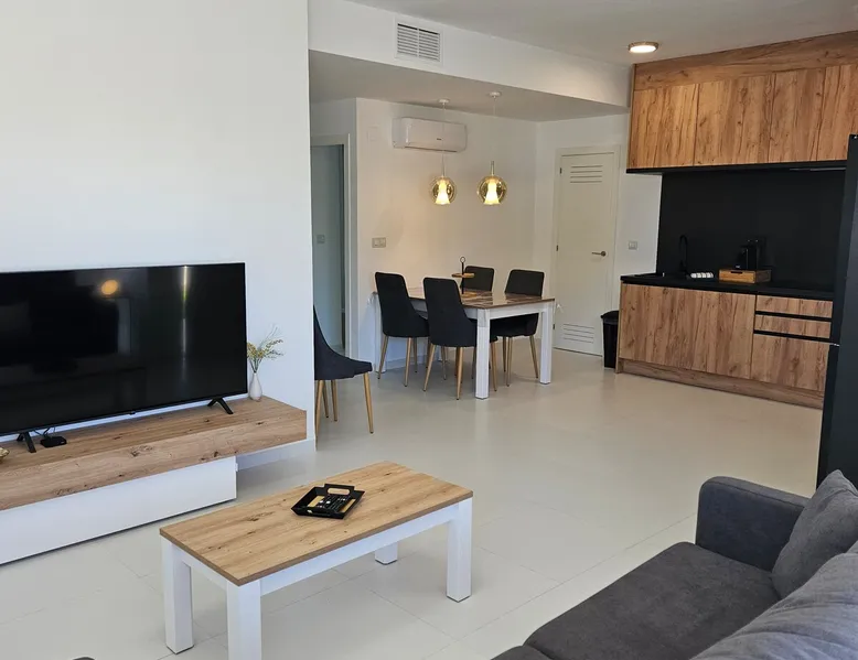 Enjoy with your family this fabulous place that offers good times in perspective. Located porch with all amenities such as bars, restaurants, supermarkets,... and only 15 minutes from the beaches. Consisting of 2 bedrooms and 2 shower rooms, you can enjoy its beautiful common area with a swimming pool for adults and children, a playground for the little ones and sports equipment. Work is underway on the lot opposite Guest access Guests have access to the entire accommodation. Registration Details Spain - National registration number ESFCTU00000305100058122500000000000000000000000000002