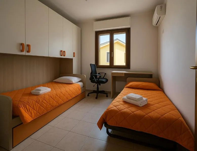 Spacious Accommodations: Casa Amelia Oristano in Oristano offers a spacious apartment with two bedrooms and a bathroom. The property features tiled floors, a balcony, and a terrace, ensuring comfort and relaxation. Modern Amenities: Guests enjoy free WiFi, air-conditioning, and a fully equipped kitchenette. Additional amenities include a washing machine, dishwasher, and streaming services, catering to all needs. Private Beach Area: The apartment provides a private beach area, offering direct access to the sea. The terrace and balcony provide scenic views, perfect for relaxation. Convenient Location: Located 62 mi from Cagliari Elmas Airport, the property is 12 mi from Tharros Archaeological Site and 17 mi from Capo Mannu Beach. Cycling enthusiasts can explore the surrounding area. Featuring a private entrance, this spacious apartment also consists of 2 bedrooms, a seating area and 1 bathroom with a shower and a bidet. In the kitchen, guests will find a stovetop, a refrigerator, a dishwasher and an oven. The air-conditioned apartment provides a flat-screen TV with streaming services, a washing machine, a tea and coffee maker, a dining area as well as an inner courtyard view. The unit offers 3 beds.