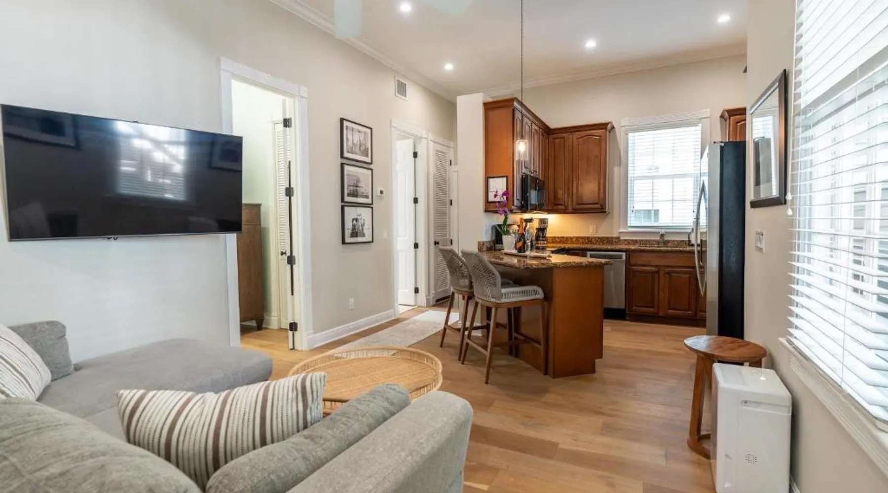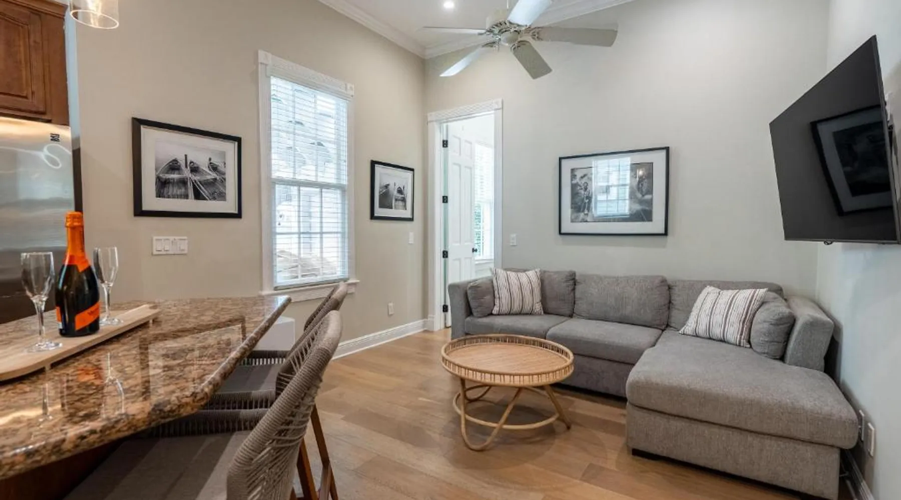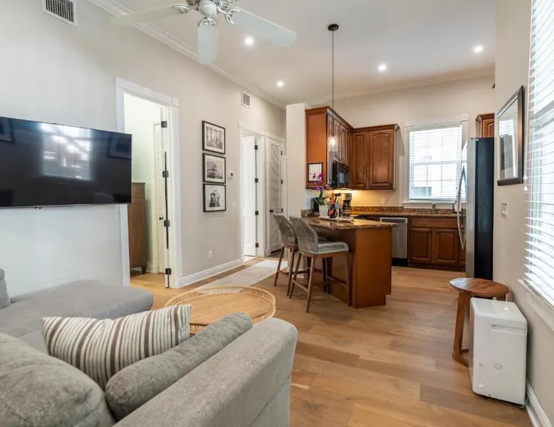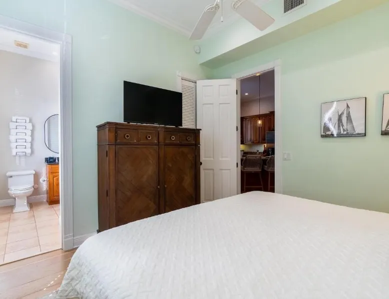 Comfortable Accommodations: American Shoal Light Suite in Key West offers a holiday home with two bedrooms and a living room. The property features a garden and free WiFi, ensuring a pleasant stay. Modern Amenities: The home includes air-conditioning, a washing machine, and a fully equipped kitchen with a refrigerator, microwave, dishwasher, and oven. Additional amenities include a dining area, sofa bed, and TV. Prime Location: Located 2.5 mi from Key West International Airport, the property is close to attractions such as South Beach (7-minute walk), Ernest Hemingway Home and Museum (656 feet), and Duval Street (5-minute walk). Water sports are available in the surroundings. Featuring a private entrance, this air-conditioned apartment consists of 1 living room, 2 separate bedrooms and 1 bathroom with a bath or a shower and a hairdryer. The well-fitted kitchen features a stovetop, a refrigerator, a dishwasher and kitchenware. The apartment provides a TV, a washing machine, a tea and coffee maker, a dining area as well as sea views. The unit offers 3 beds.