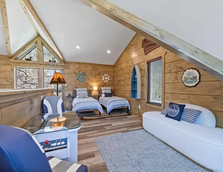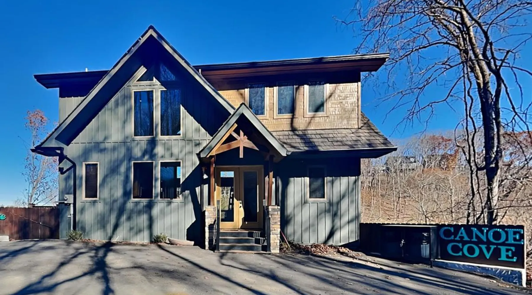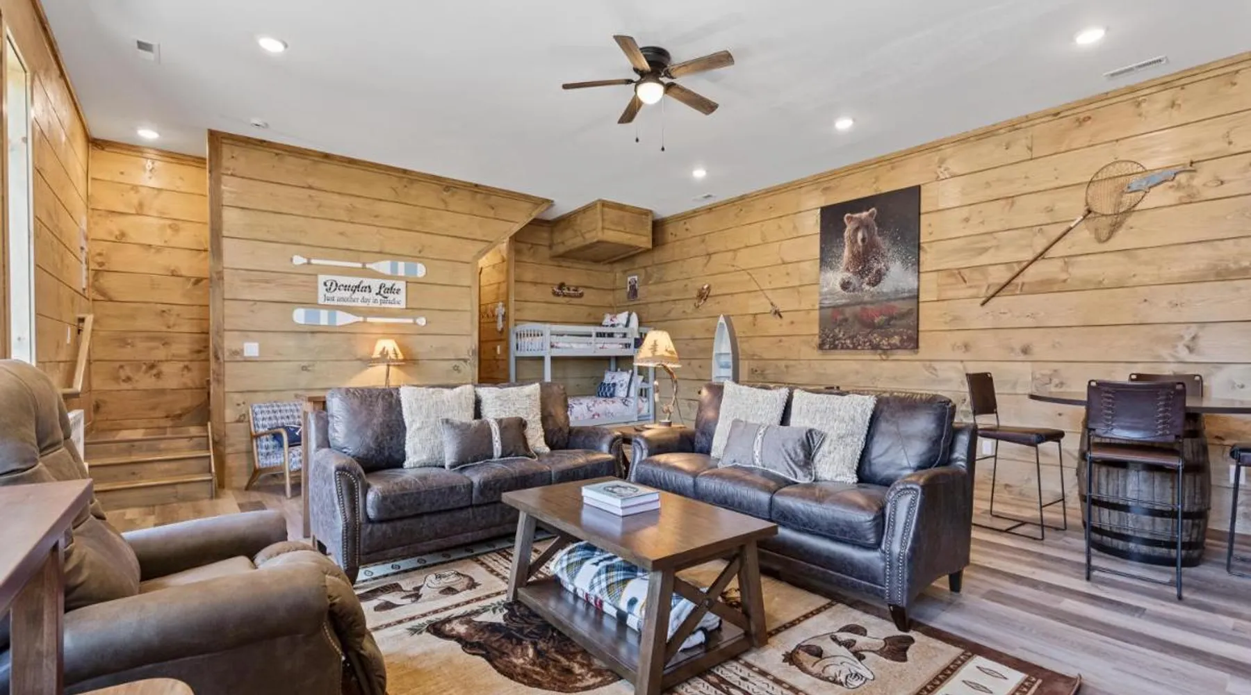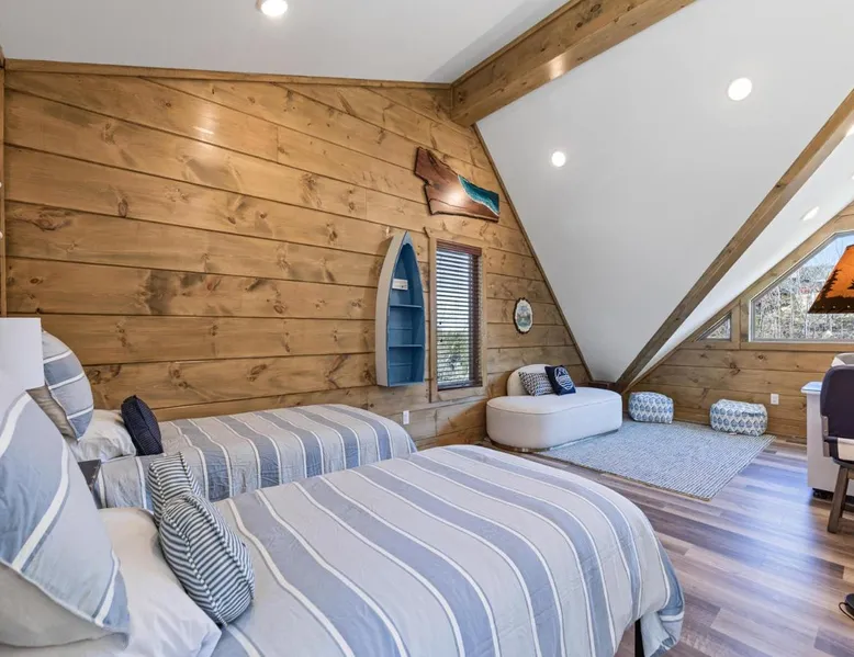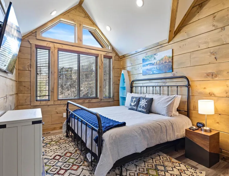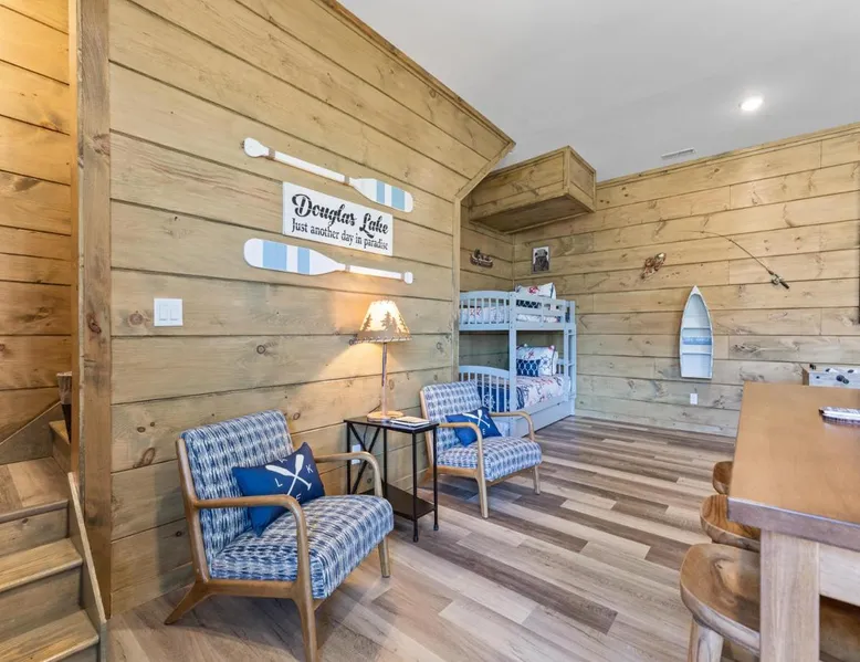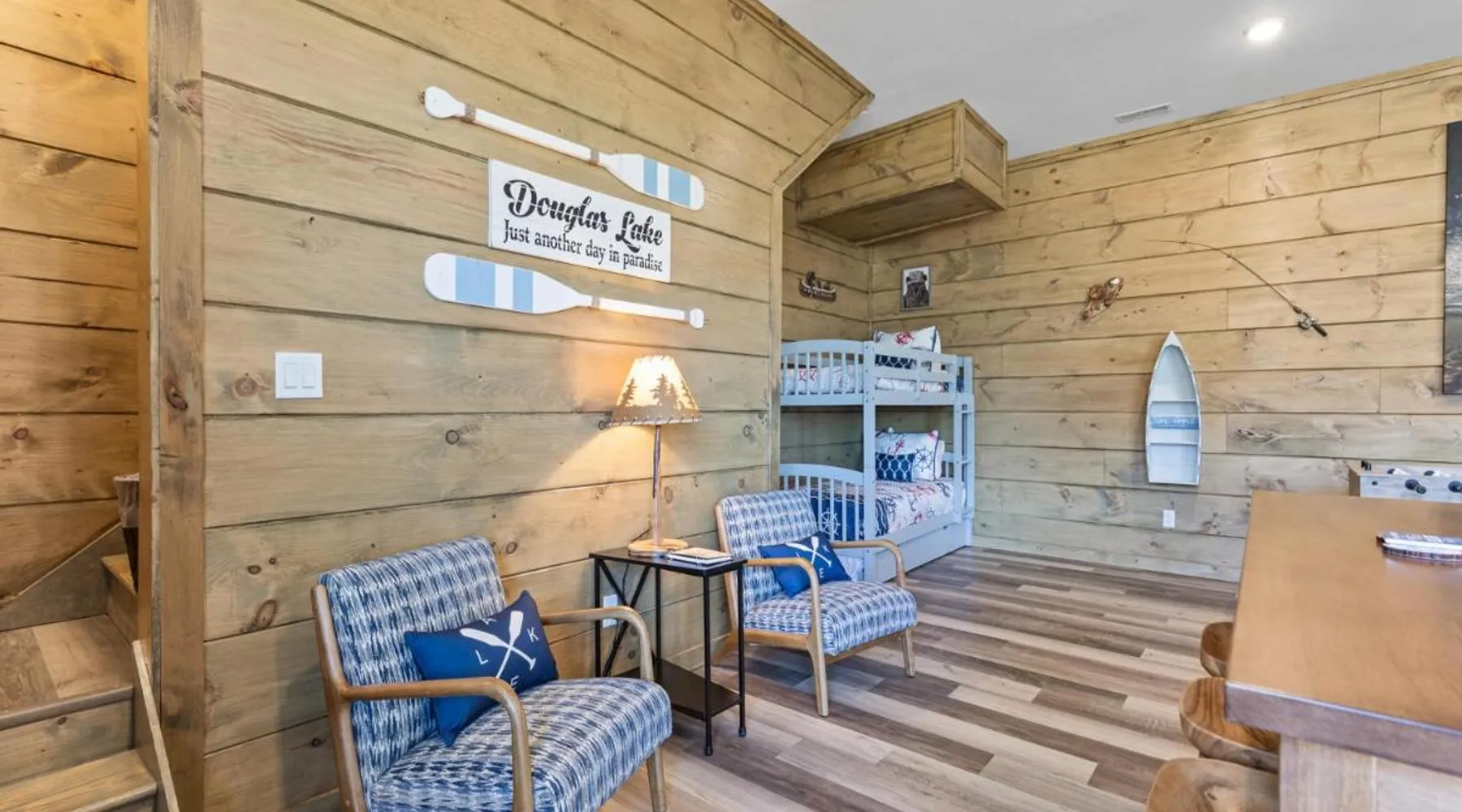 Located in the Douglas Lake area, Canoe Cove has spectacular lake views with direct lake access. This beautiful property has 3 bedrooms, 4 baths and sleeps 11. Luxury awaits loaded with a ton of amenities from a wine cooler and hot tub to a well-equipped kitchen to a great loft area for kids, you don’t want to paddle past Canoe Cove. During the warmer months guests can also enjoy the community boat dock and firepit access. Other things to note Located in the Douglas Lake area, Canoe Cove has spectacular lake views with direct lake access. When you arrive, the kitchen and dining area welcome you into the cabin, with two en-suite bedrooms flanking either side of the first floor. This beautiful property has another king-bedroom and four additional twin beds (one with a trundle) to easily sleep 11. Offering nothing but luxury in every space, Canoe Cove invites guests to settle in to play cards, foosball, or watch TV downstairs in the living room. On the main floor, the fully equipped kitchen is waiting for the chef of the group to make meals that can be enjoyed in the dining room or out on the deck. The kids can take over the loft area where two twin beds, additional seating, and an arcade game will give them their own space to hang out. Around the corner from the open loft is another bathroom and third king-bedroom. After a full day of fun, grab a bottle of wine from the cabin’s wine cooler, and relax in the hot tub – a perfect way to end the day. During the warmer months, guests can enjoy community dock access to Douglas Lake as well as a community firepit. High energy guests will enjoy all that Douglas Lake has to offer from boating to skiing and more. Canoe Cove is waiting for you! Book today.