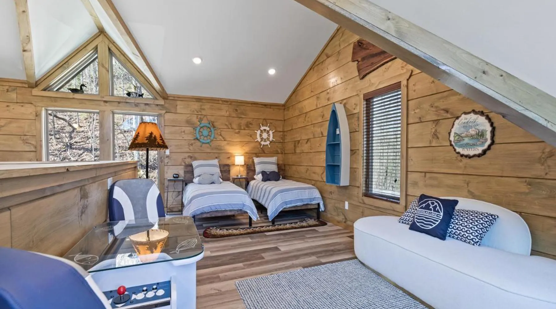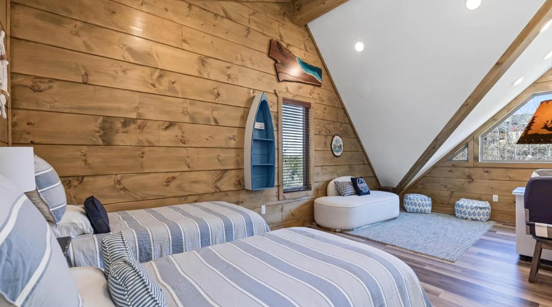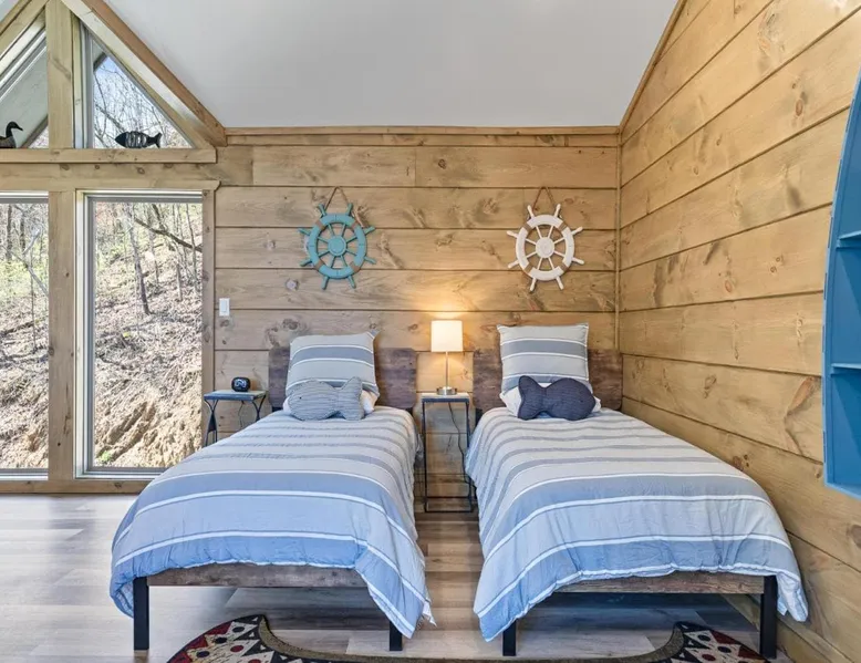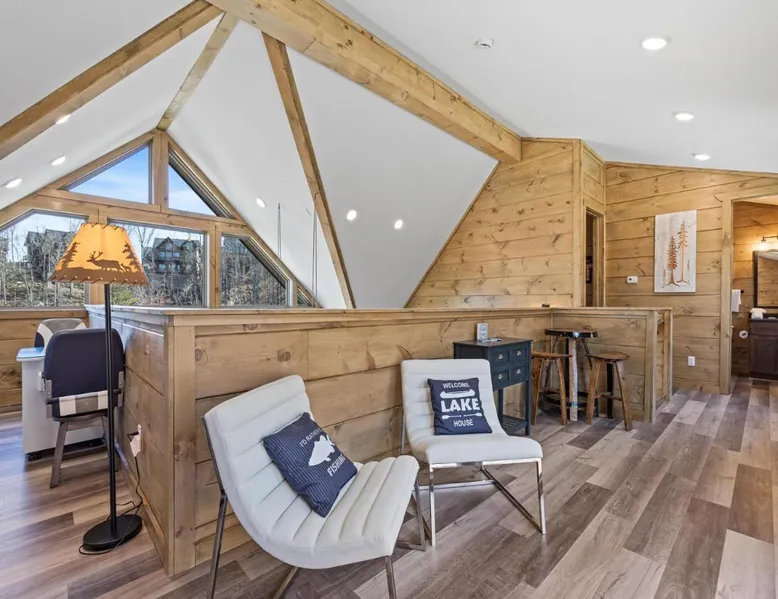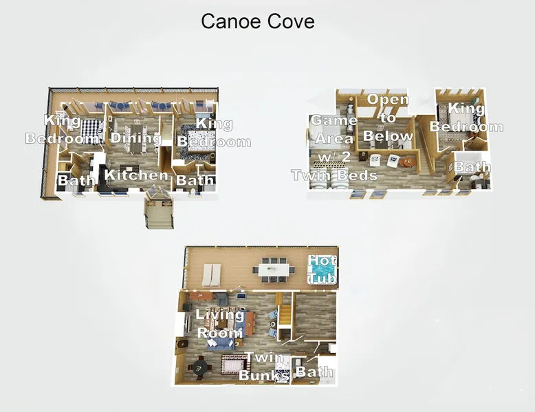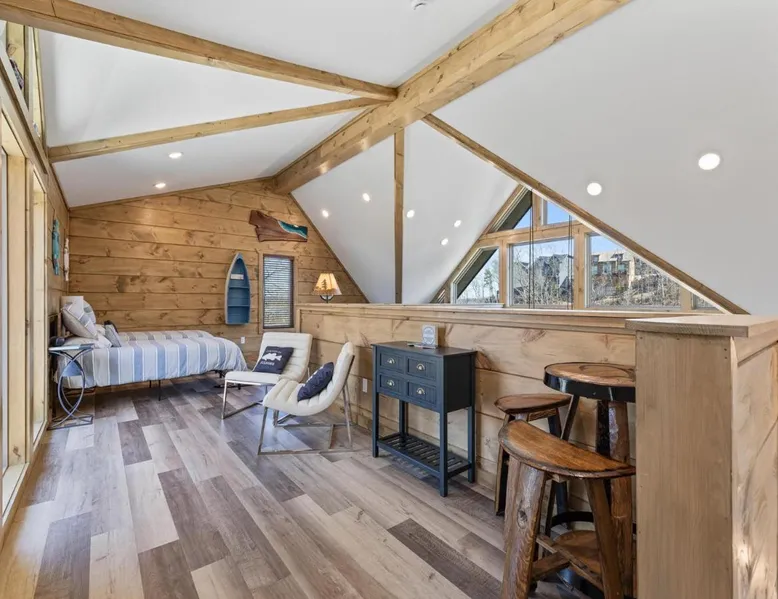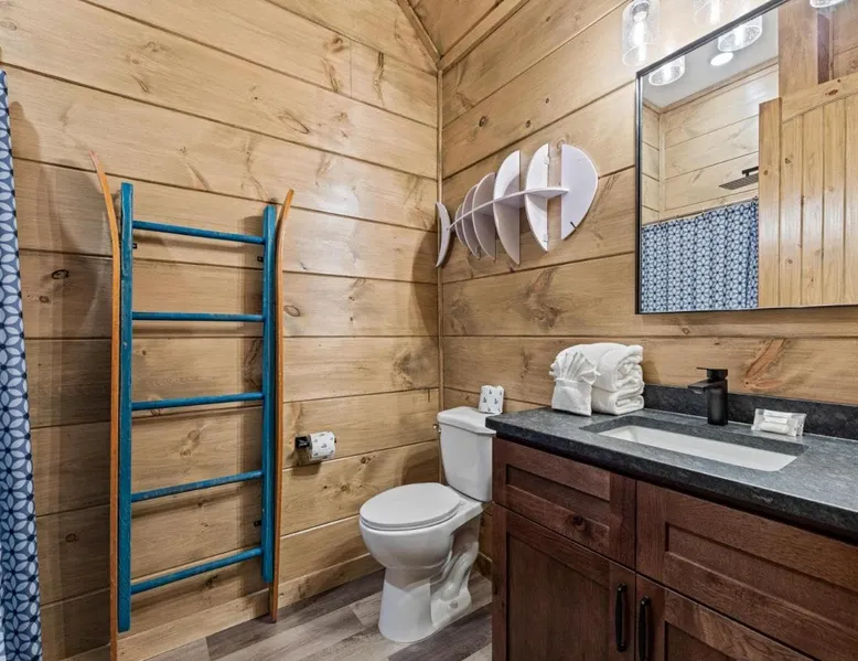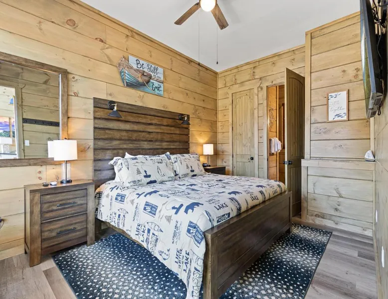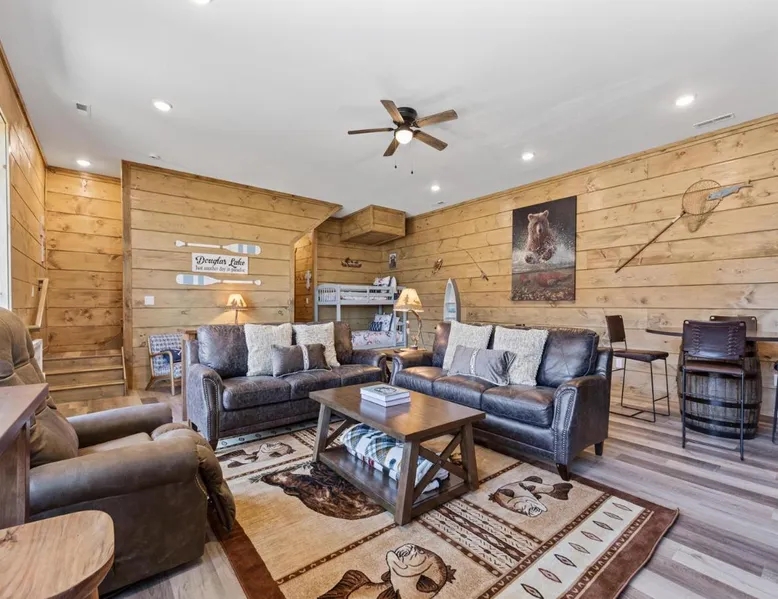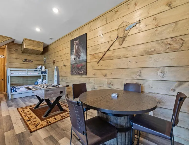 Located in the Douglas Lake area, Canoe Cove has spectacular lake views with direct lake access. This beautiful property has 3 bedrooms, 4 baths and sleeps 11. Luxury awaits loaded with a ton of amenities from a wine cooler and hot tub to a well-equipped kitchen to a great loft area for kids, you don’t want to paddle past Canoe Cove. During the warmer months guests can also enjoy the community boat dock and firepit access. Other things to note Located in the Douglas Lake area, Canoe Cove has spectacular lake views with direct lake access. When you arrive, the kitchen and dining area welcome you into the cabin, with two en-suite bedrooms flanking either side of the first floor. This beautiful property has another king-bedroom and four additional twin beds (one with a trundle) to easily sleep 11. Offering nothing but luxury in every space, Canoe Cove invites guests to settle in to play cards, foosball, or watch TV downstairs in the living room. On the main floor, the fully equipped kitchen is waiting for the chef of the group to make meals that can be enjoyed in the dining room or out on the deck. The kids can take over the loft area where two twin beds, additional seating, and an arcade game will give them their own space to hang out. Around the corner from the open loft is another bathroom and third king-bedroom. After a full day of fun, grab a bottle of wine from the cabin’s wine cooler, and relax in the hot tub – a perfect way to end the day. During the warmer months, guests can enjoy community dock access to Douglas Lake as well as a community firepit. High energy guests will enjoy all that Douglas Lake has to offer from boating to skiing and more. Canoe Cove is waiting for you! Book today.