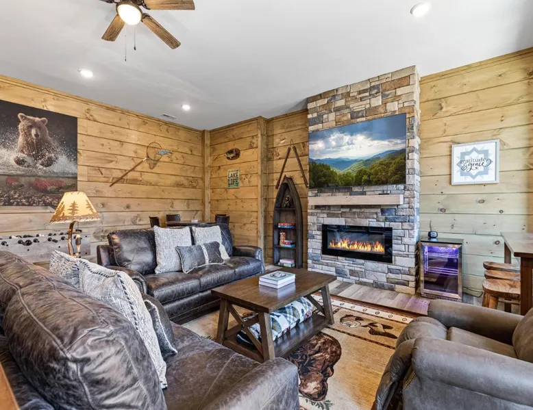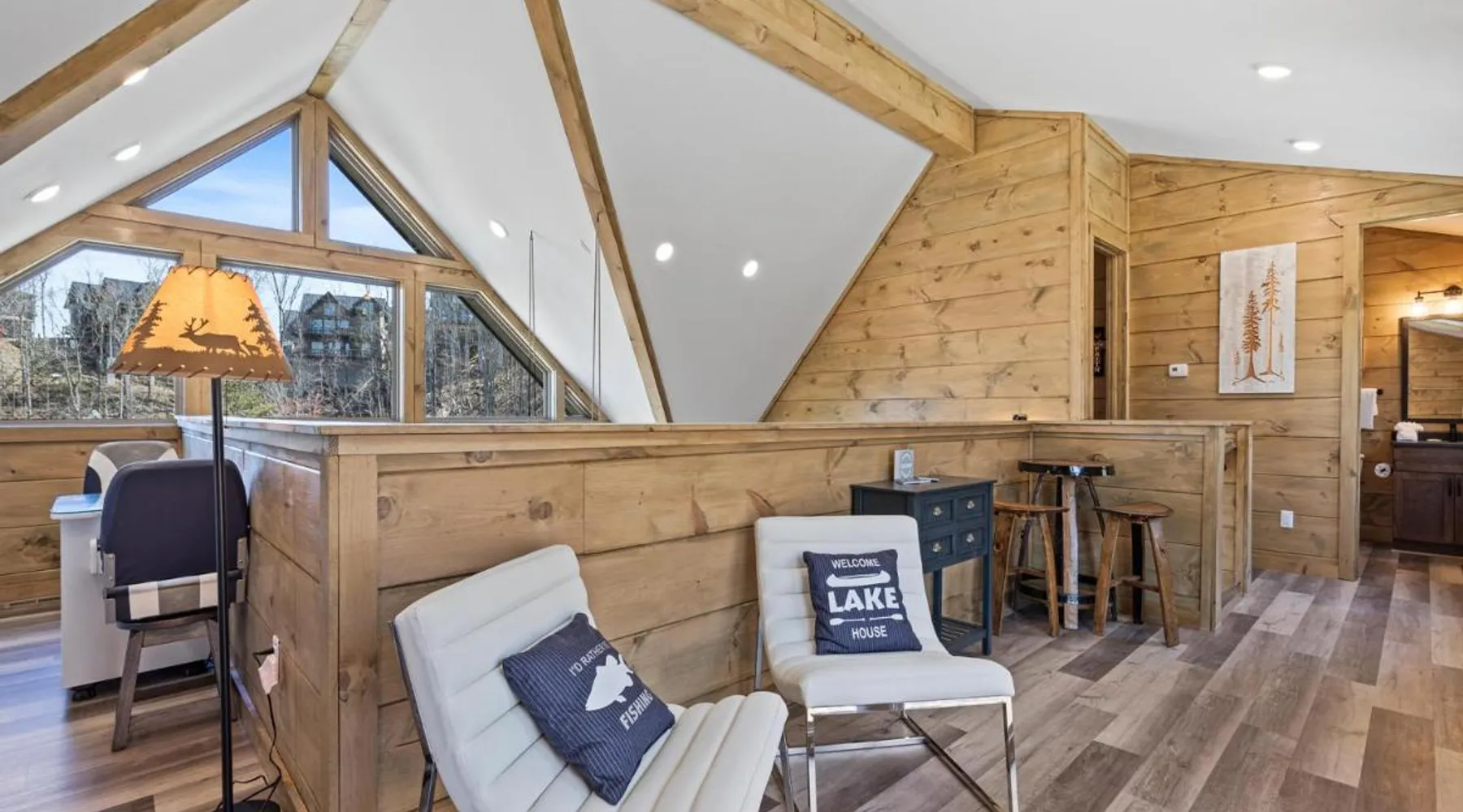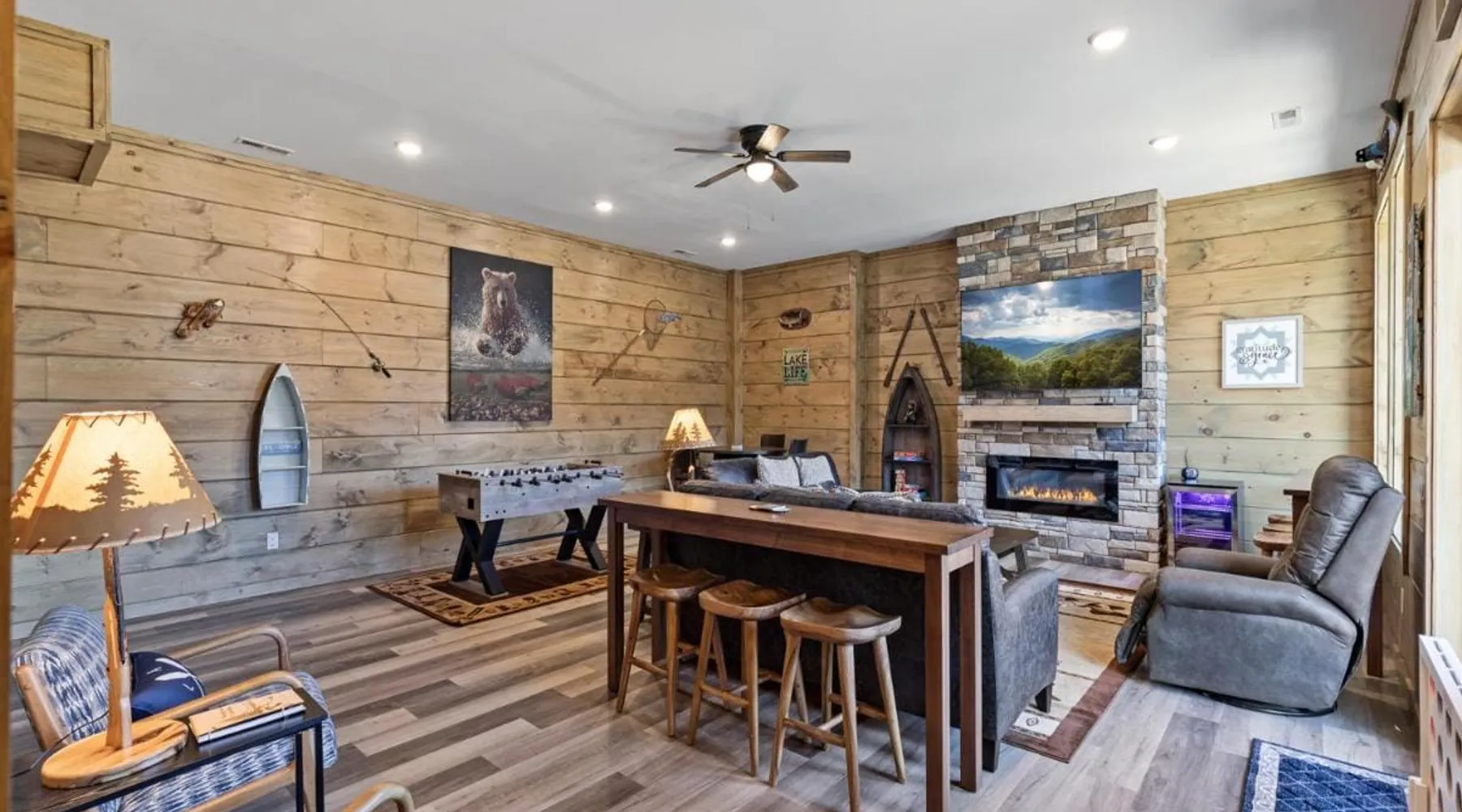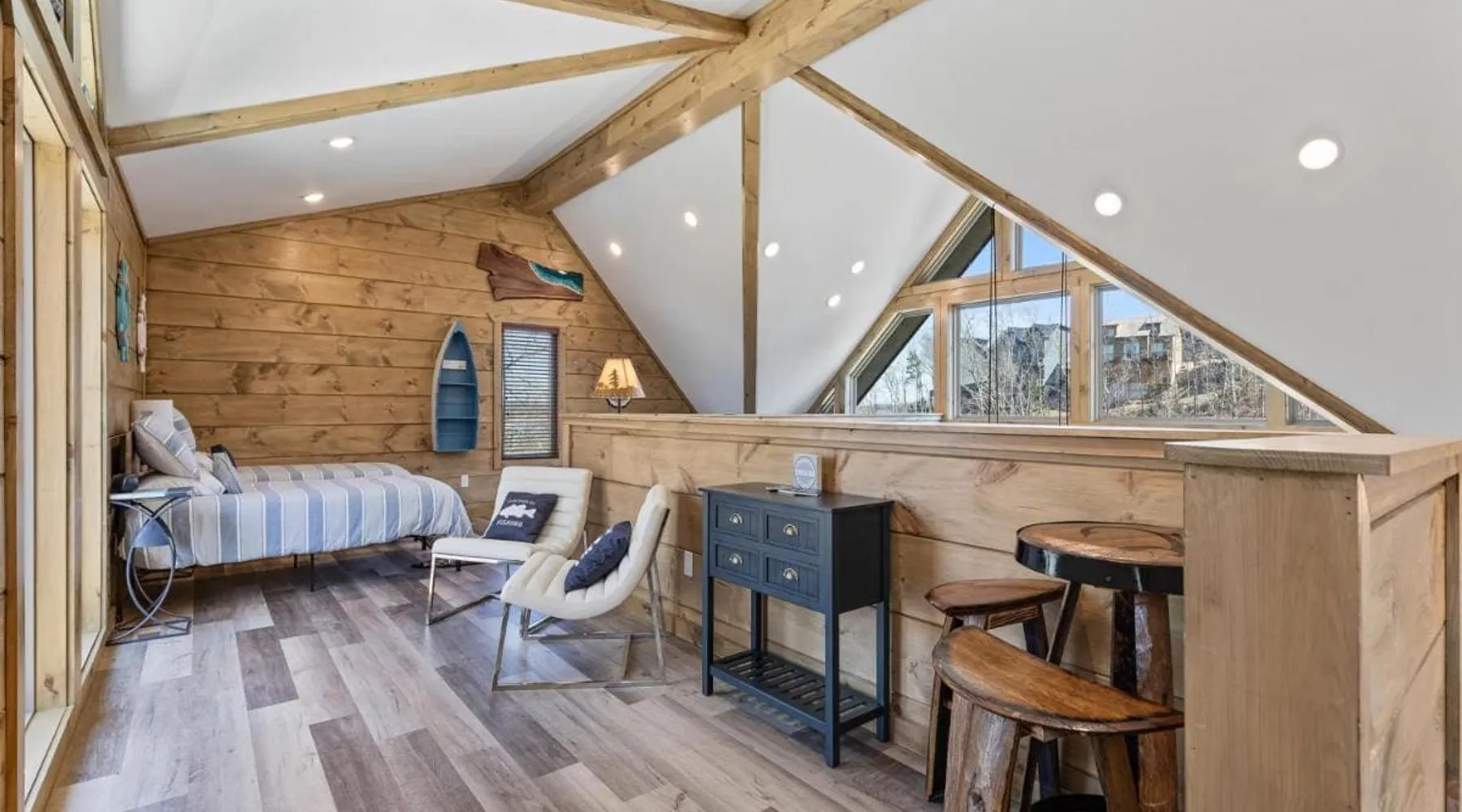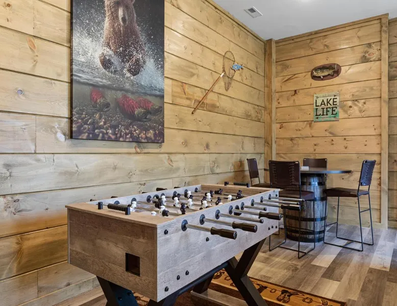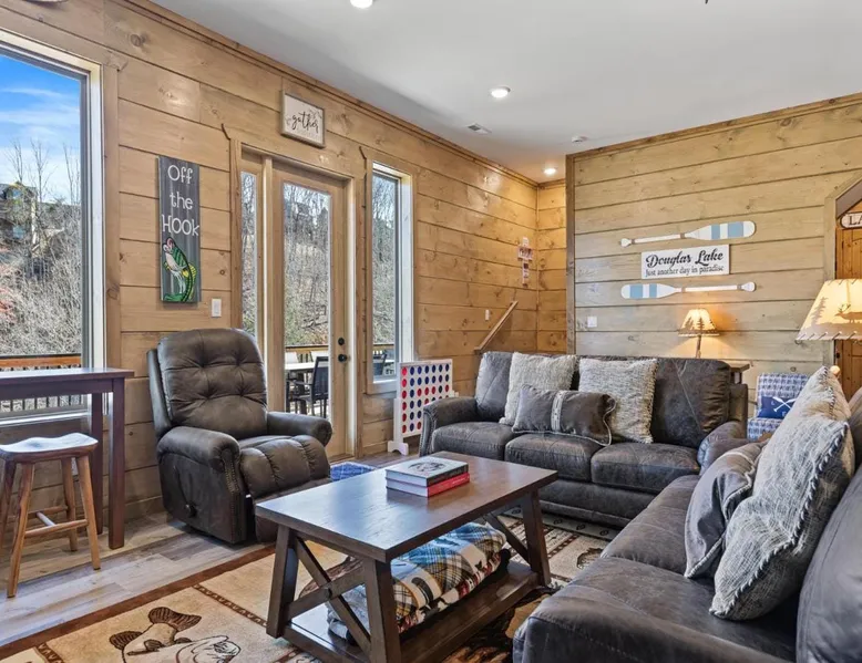 Located in the Douglas Lake area, Canoe Cove has spectacular lake views with direct lake access. This beautiful property has 3 bedrooms, 4 baths and sleeps 11. Luxury awaits loaded with a ton of amenities from a wine cooler and hot tub to a well-equipped kitchen to a great loft area for kids, you don’t want to paddle past Canoe Cove. During the warmer months guests can also enjoy the community boat dock and firepit access. Other things to note Located in the Douglas Lake area, Canoe Cove has spectacular lake views with direct lake access. When you arrive, the kitchen and dining area welcome you into the cabin, with two en-suite bedrooms flanking either side of the first floor. This beautiful property has another king-bedroom and four additional twin beds (one with a trundle) to easily sleep 11. Offering nothing but luxury in every space, Canoe Cove invites guests to settle in to play cards, foosball, or watch TV downstairs in the living room. On the main floor, the fully equipped kitchen is waiting for the chef of the group to make meals that can be enjoyed in the dining room or out on the deck. The kids can take over the loft area where two twin beds, additional seating, and an arcade game will give them their own space to hang out. Around the corner from the open loft is another bathroom and third king-bedroom. After a full day of fun, grab a bottle of wine from the cabin’s wine cooler, and relax in the hot tub – a perfect way to end the day. During the warmer months, guests can enjoy community dock access to Douglas Lake as well as a community firepit. High energy guests will enjoy all that Douglas Lake has to offer from boating to skiing and more. Canoe Cove is waiting for you! Book today.
