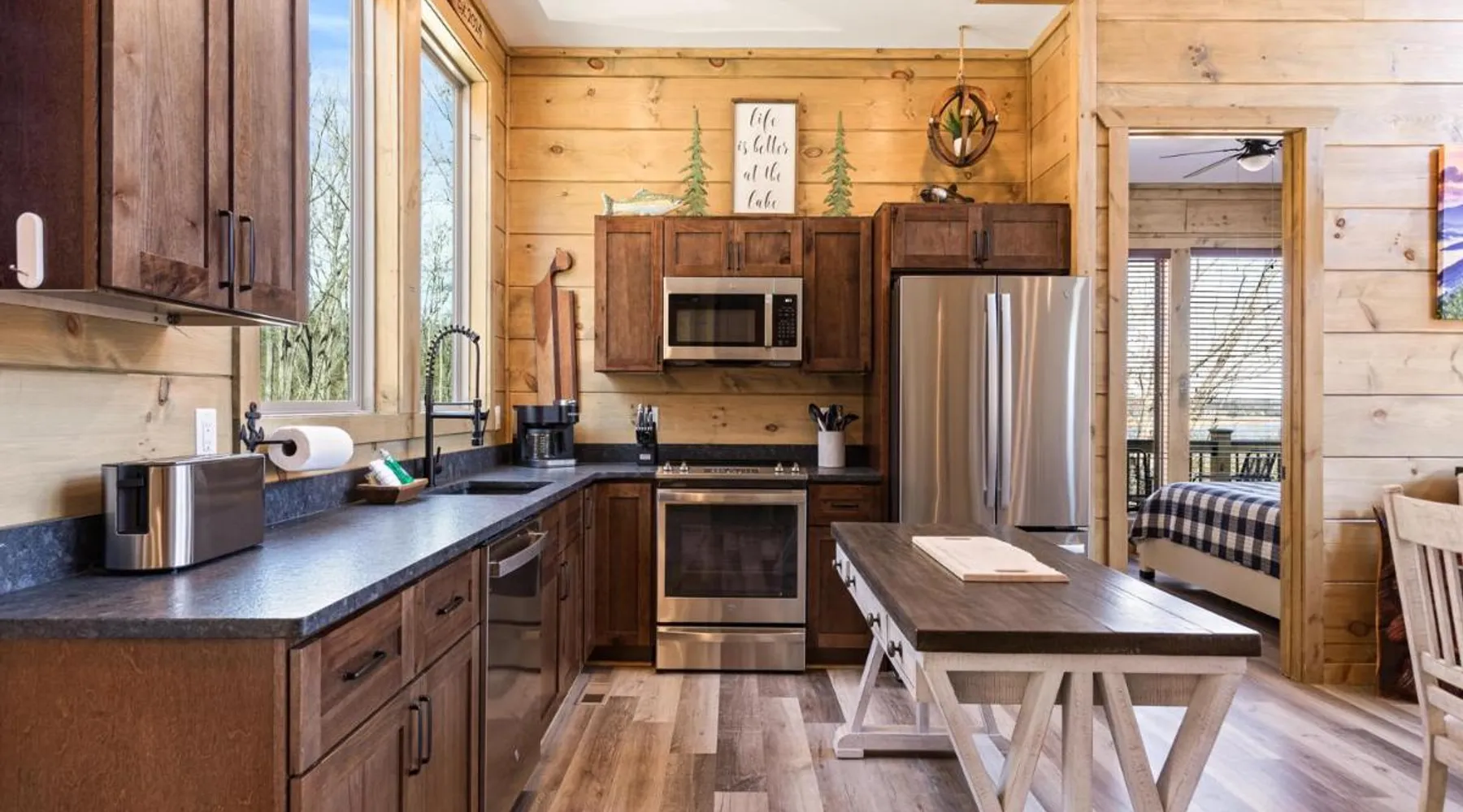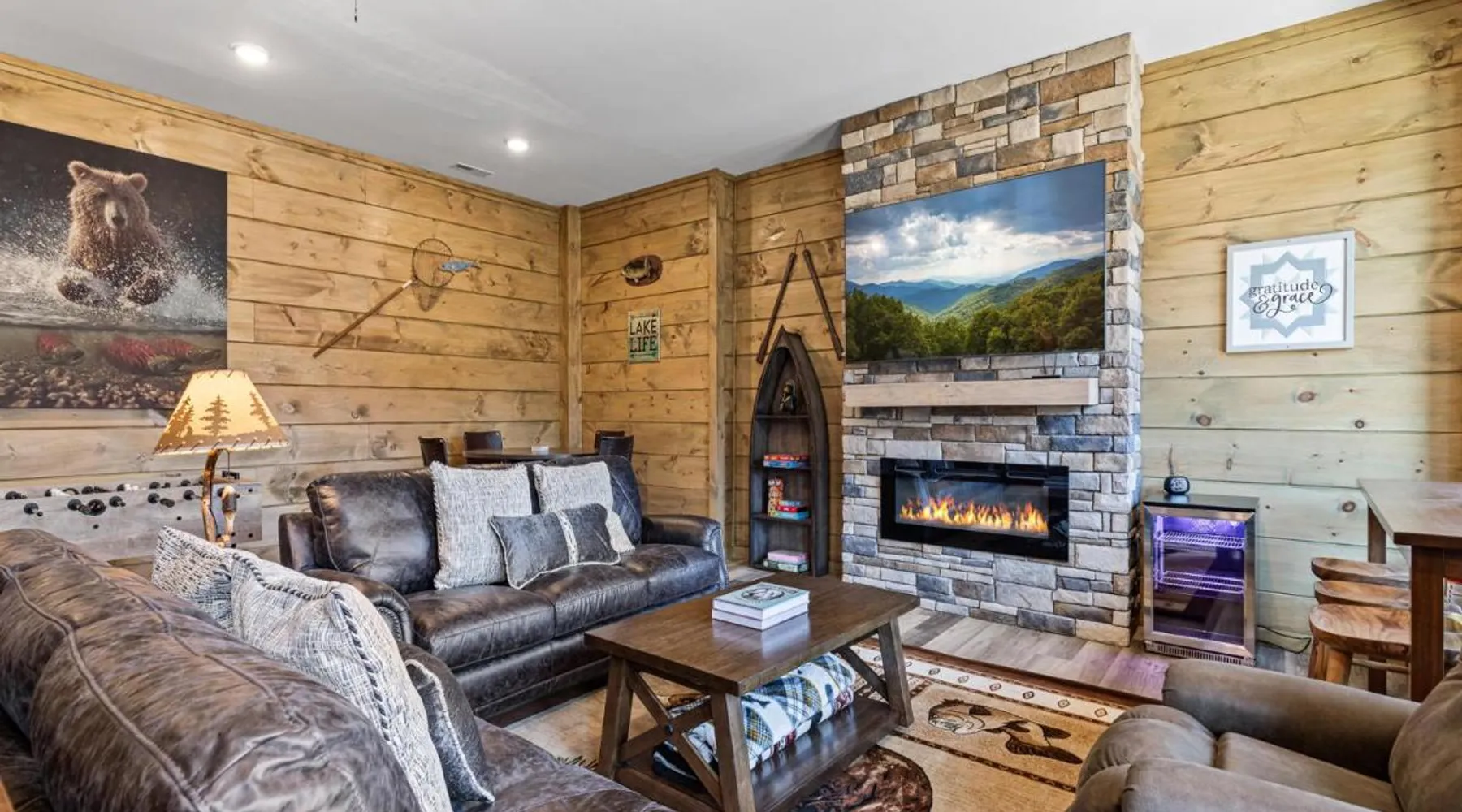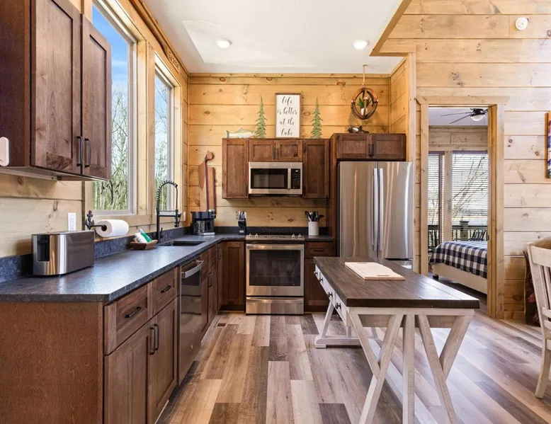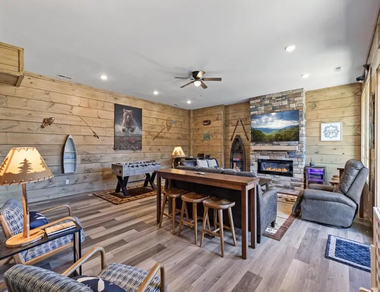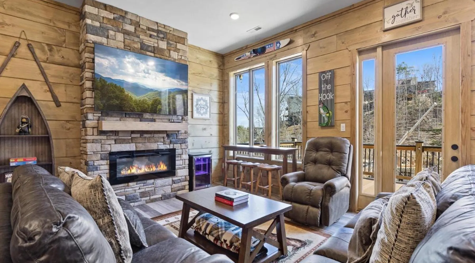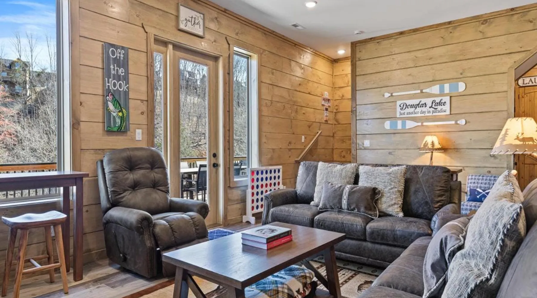Located in the Douglas Lake area, Canoe Cove has spectacular lake views with direct lake access. This beautiful property has 3 bedrooms, 4 baths and sleeps 11. Luxury awaits loaded with a ton of amenities from a wine cooler and hot tub to a well-equipped kitchen to a great loft area for kids, you don’t want to paddle past Canoe Cove. During the warmer months guests can also enjoy the community boat dock and firepit access. Other things to note Located in the Douglas Lake area, Canoe Cove has spectacular lake views with direct lake access. When you arrive, the kitchen and dining area welcome you into the cabin, with two en-suite bedrooms flanking either side of the first floor. This beautiful property has another king-bedroom and four additional twin beds (one with a trundle) to easily sleep 11. Offering nothing but luxury in every space, Canoe Cove invites guests to settle in to play cards, foosball, or watch TV downstairs in the living room. On the main floor, the fully equipped kitchen is waiting for the chef of the group to make meals that can be enjoyed in the dining room or out on the deck. The kids can take over the loft area where two twin beds, additional seating, and an arcade game will give them their own space to hang out. Around the corner from the open loft is another bathroom and third king-bedroom. After a full day of fun, grab a bottle of wine from the cabin’s wine cooler, and relax in the hot tub – a perfect way to end the day. During the warmer months, guests can enjoy community dock access to Douglas Lake as well as a community firepit. High energy guests will enjoy all that Douglas Lake has to offer from boating to skiing and more. Canoe Cove is waiting for you! Book today.