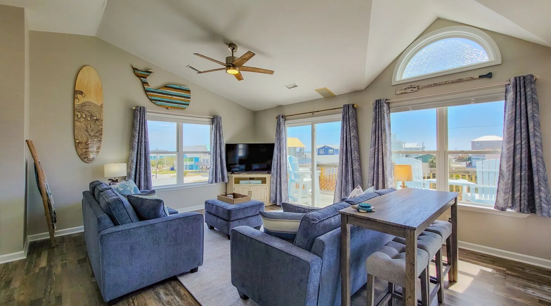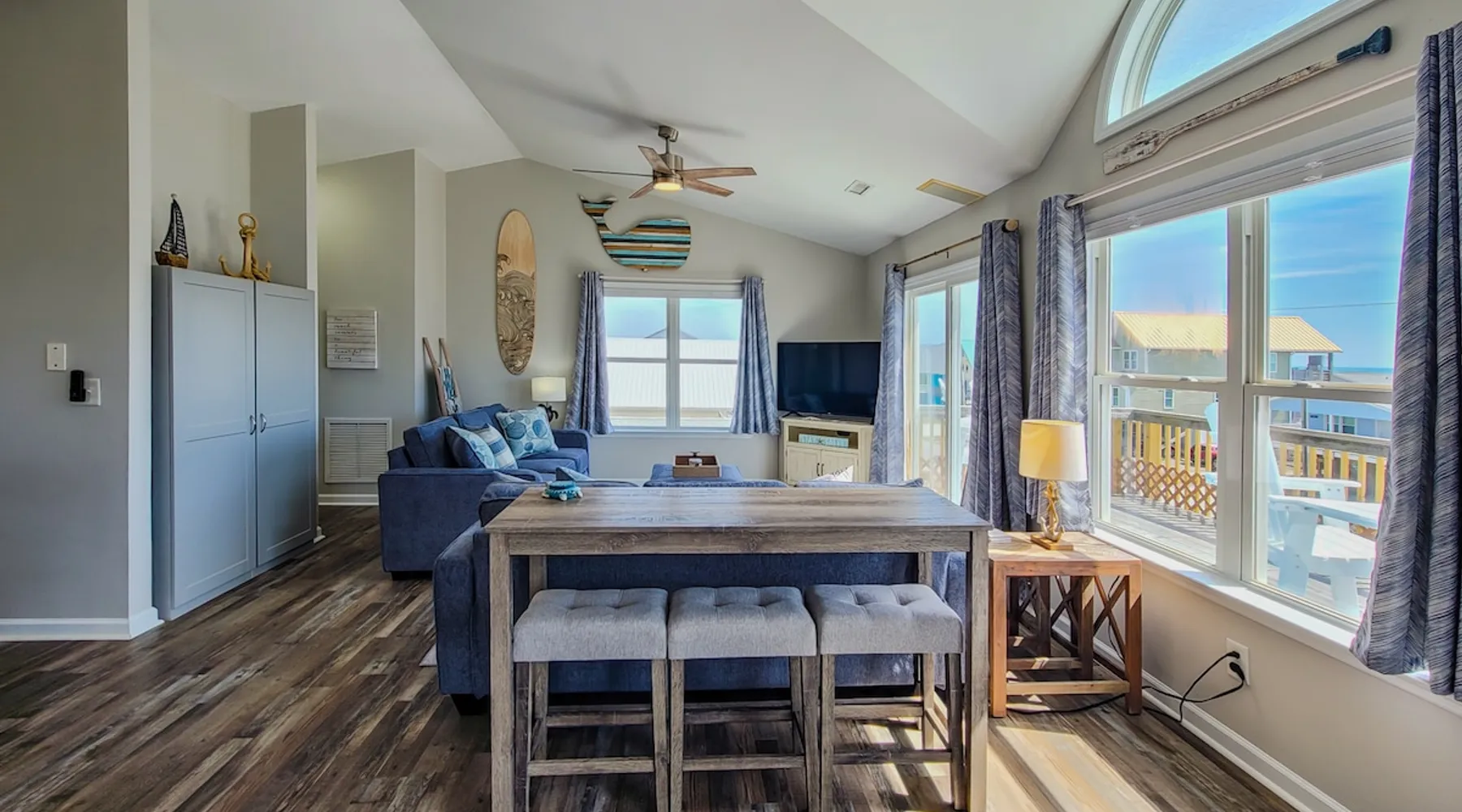 Ahoy, future beachcombers—four-legged friends included! Set sail for a worry-free escape at "Knot A Worry," a freshly renovated island retreat tucked in the heart of Surf City on Topsail Island. This charming 3-bedroom, 3-bathroom coastal haven now welcomes dogs, making it the perfect getaway for families, friends, and furry companions alike. The space Step inside and be swept away by the modern nautical decor, designed for comfort and style. The reverse floor plan offers peek-a-boo ocean views from the upper-level living area, so you can soak in the sights while swapping stories of the day’s adventures. With plush seating and open-concept design, this space is ideal for gathering your crew. The chef-ready kitchen comes fully stocked with stainless steel appliances and all the tools you need to cook up your favorite coastal meals. Share laughs and plans around the spacious dining table, where memories are made and meals are savored. Each bedroom is designed for ultimate relaxation. The primary suite features a king-size bed and private en-suite bath, while the other rooms offer cozy accommodations and breezy beach vibes to ensure everyone sleeps soundly. Outside, enjoy ample parking, an outdoor shower to rinse off sandy toes and paws, and a deck perfect for kicking back in the ocean breeze. Best of all, beach access is just a short stroll away, so you're never far from the surf, sun, and salty air. At Knot A Worry, the only thing you’ll need to fetch is your flip-flops. So grab your pack—including the pup—and get ready to drop anchor in paradise. This is one knot you'll be happy to be tied up in! 3 Bedrooms / 2.5 Bathrooms | Beds: 1 King, 1 Queen, Twin over Full Bunk, and a Queen Sleeper Sofa| NO SMOKING permitted inside the property or on its decks. | This property is Pet Friendly! 1 pet is included with the reservation price, additional pets can be added after booking for an additional fee.| Kitchen provides all major appliances, dinnerware, and cookware. | House has 2 parking spaces. | House has private WiFi access. | Washer/dryer is inside the property. | Property has KEYLESS ACCESS, which activates at the scheduled check-in time. Other things to note -This property is pet-friendly! A non-refundable fee will apply per pet. Limit of 2 pets per reservation. (100lb limit) -No Smoking is allowed inside the property or on its decks. -Linens (Sheets and Towels) ARE Included with Lewis Realty reservations! A Full house linen package will include Sheets for all advertised beds, 1 towel set per occupancy, bathmats for each full bath, and a set of Kitchen Towels with a sponge. -No pesky Security Deposits! All reservations will be required to have an Accidental Damage Protection Waiver. The cost of this waiver is included in the listed required reservation fees. -This property offers PointCentral Keyless Access for a speedy check-in. Check-in instructions will be emailed to the reservation holder.