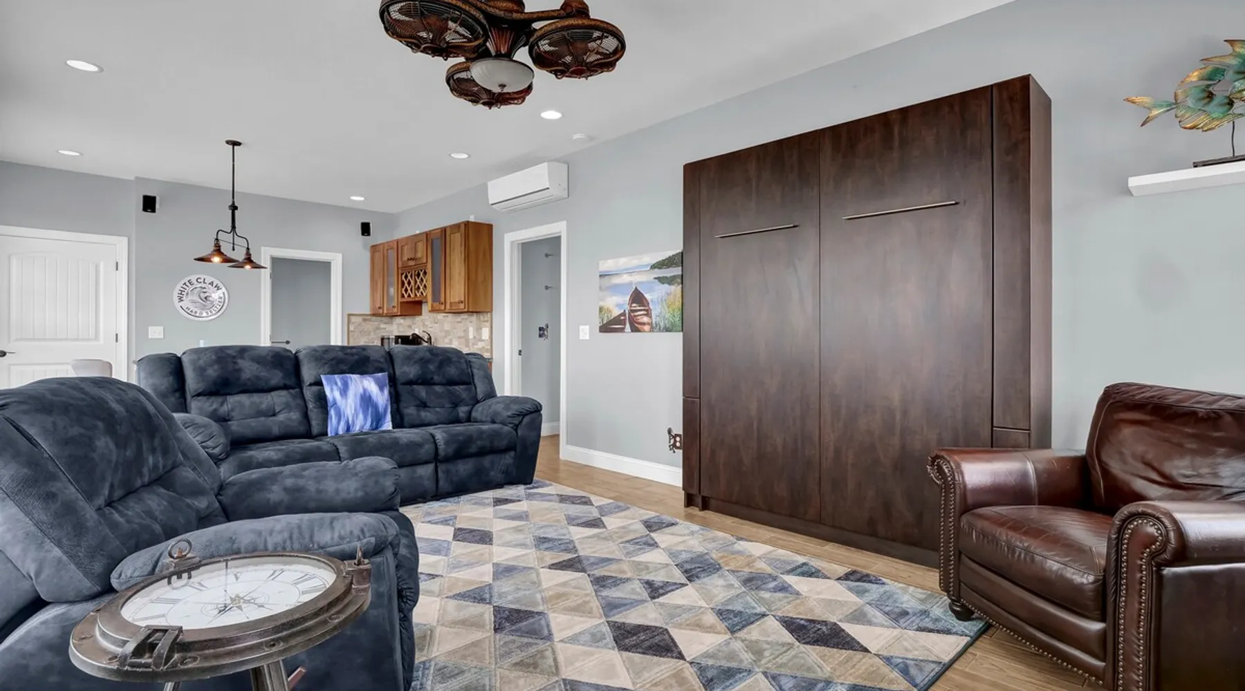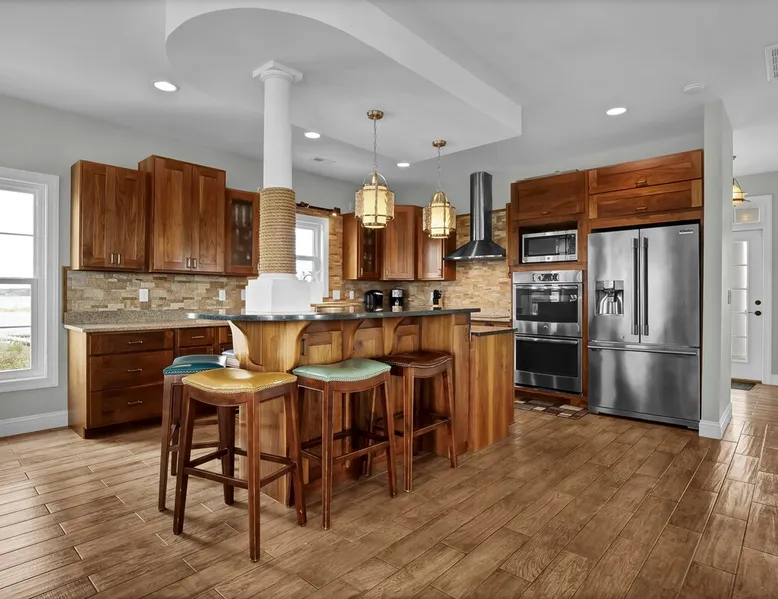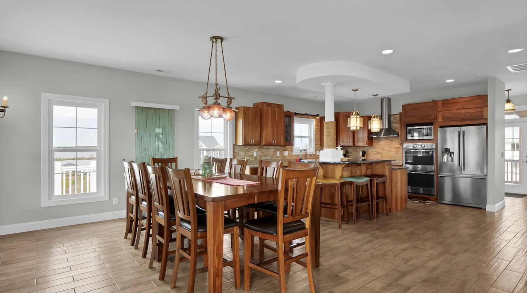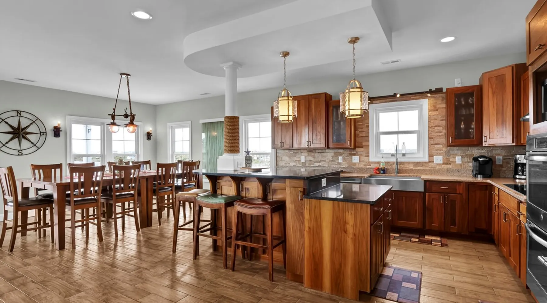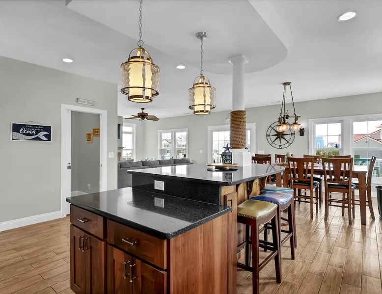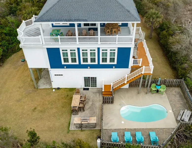 Hakuna Matata 🌊 | North Topsail Beach Luxury coastal retreat with private heated pool, expansive decks boasting ocean & sound views, and a private dock for fishing, kayaking & sunsets. Just steps to the beach! Dog-friendly, stocked with beach gear, gourmet kitchen, and chic coastal décor. No worries—just pure coastal bliss! Other things to note Welcome to Hakuna Matata – A Luxurious Coastal Escape in North Topsail Beach, NC Nestled between the shimmering waters of the sound and the pristine shores of the Atlantic, Hakuna Matata is more than just a vacation home—it’s an elevated coastal experience. Designed for luxury, relaxation, and adventure, this breathtaking retreat invites you to wake up to the soothing sound of waves, unwind on sprawling decks with panoramic views, and indulge in resort-style amenities that make every moment unforgettable. Just steps from the public beach access, your days can begin with a peaceful sunrise stroll along the shore or a refreshing dip in the ocean. On the other side of the home, the private dock extends over the tranquil waterway, offering a gateway to boating, kayaking, paddleboarding, and world-class fishing. The covered lounge area on the dock provides a shady retreat with a sink for cleaning your fresh catch, making waterfront living effortless. After a day in the sun, retreat to the private heated pool, where plush lounge chairs and an outdoor grilling station create the perfect setting for poolside cocktails and al fresco dining. The ground floor welcomes you with a spacious garage fully stocked with kayaks, beach chairs, and an extra refrigerator, ensuring every convenience is at your fingertips. Ascending to the first floor, you’ll find a beautifully designed sleeping level. The master suite is a private sanctuary, featuring a king bed, spa-inspired en-suite bathroom. Another elegantly appointed king bedroom shares a stylish full bathroom with the bunk room, a fun and functional space boasting two twin-over-full bunk beds to comfortably accommodate kids or groups. This level also features a chic common area with a kitchenette, full bathroom, inviting lounge space, and a hidden murphy bed for additional sleeping options. Step outside to the open-air patio, where a winding staircase leads gracefully to the pool deck, creating seamless indoor-outdoor flow. The second floor is the heart of the home, where natural light floods the expansive open-concept living area, coastal-chic décor, and plush furnishings. The gourmet kitchen is a chef’s dream, complete with high-end appliances, sleek countertops, and a spacious dining table perfect for elegant meals or casual gatherings. The front deck invites you to take in uninterrupted ocean views, while the rear covered deck offers a serene retreat with multiple seating areas and an outdoor dining space overlooking the glistening sound. This level also features a private king bedroom with an en-suite bath, ensuring comfort and privacy for all guests. Adding to the home’s effortless luxury, a convenient grocery lift makes carrying personal items a breeze (not for passenger use). Every detail of Hakuna Matata has been meticulously designed to provide an unparalleled blend of comfort, style, and coastal elegance. Best of all, this home is dog-friendly, so your four-legged family members can join in on the fun! With plenty of outdoor space to explore and a pet-friendly beach just steps away, your pup will love the coastal retreat as much as you do. Whether you're here for a family reunion, a getaway with friends, or a special celebration, this home offers a one-of-a-kind retreat where luxury meets relaxation, and every day feels like paradise. No worries, just pure coastal bliss! Managed by Sea Scape Properties, we ensure your vacation is stress-free and filled with comfort and luxury. From seamless booking to exceptional service, our team is dedicated to making your stay unforgettable. With handpicked properties and a focus on providing the ultimate coastal experience, Sea Scape guarantees a getaway you’ll want to repeat. Reserve your stay today and discover the Sea Scape difference! Hakuna Matata offers a grocery lift on the left side of the house for personal belongings. It does not support passengers** * Private pool can be heated for an additional $300 non-refundable fee during mid to late March - June 1 and September 1 - November 1 (weather and outdoor temperature permitting); 3-to-4-day notice is required prior to your arrival date to have the pool heat turned on. INCLUDED: WIFI, fully stocked kitchen, paper goods and ALL linens, including all bedding + bath + beach towels to save you the hassle/cost of renting them separately ($200-300+ value)! When you arrive, beds will be made with crisp, fresh linens and complete sets of fluffy towels will be available. You must be 25 years or older to rent this property. Please notify our office if you're planning to bring a pet as the following pet policy will apply: A maximum of 2 pets are permitted. ONLY DOGS ARE ALLOWED. The pet fee is $250 plus tax for each pet. A pet fee will be added after booking. No dogs are allowed without prior approval and payment of a non-refundable pet fee, per pet. Undisclosed dogs will incur a minimum $300 fine plus tax. Violation of our 2-pet maximum policy will incur a minimum of $300 plus tax charge, per pet, plus the tenant will be in material breach of the lease, and grounds for eviction will apply. The pet must be removed from the premises immediately, and your reservation may be canceled with no refund given. **Please note: All service animals and emotional support animals must be disclosed at the time of booking to allow the agent to collect records and documentation to support the request in accordance with all state and federal laws. A pet fee will NOT be charged for true Service Animals.** Sea Scape requires that all reservations have a signed rental agreement that will be sent to you via text message a
